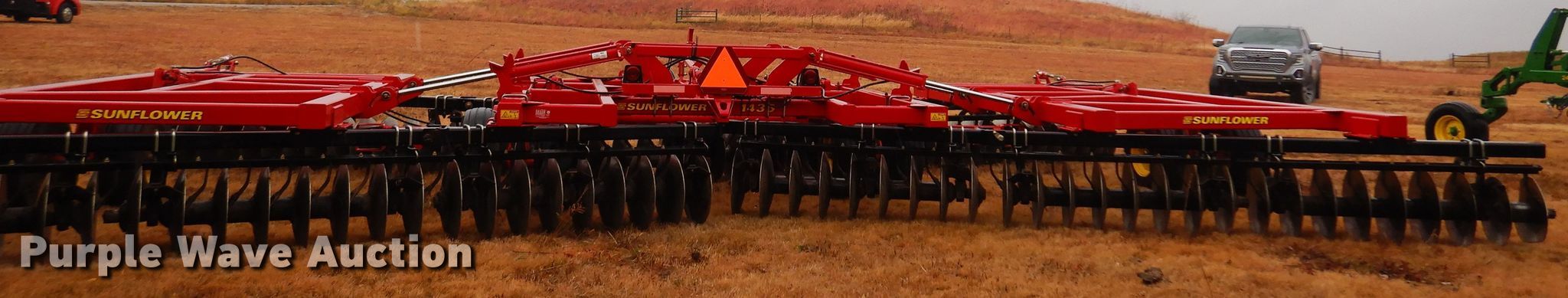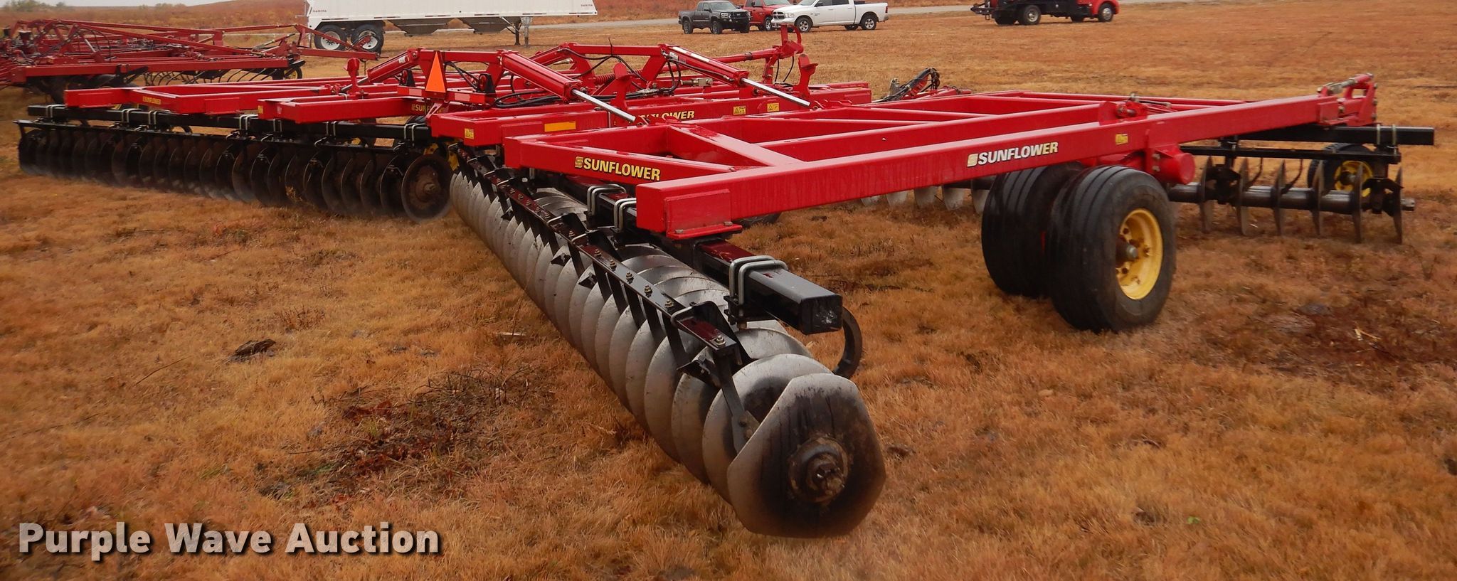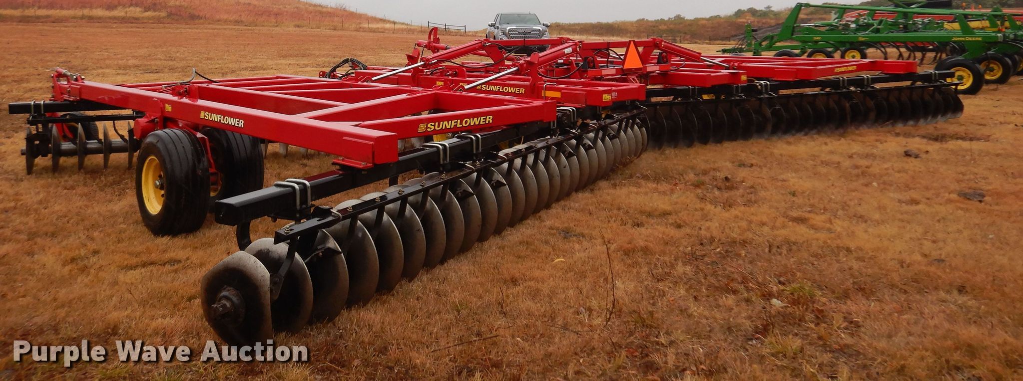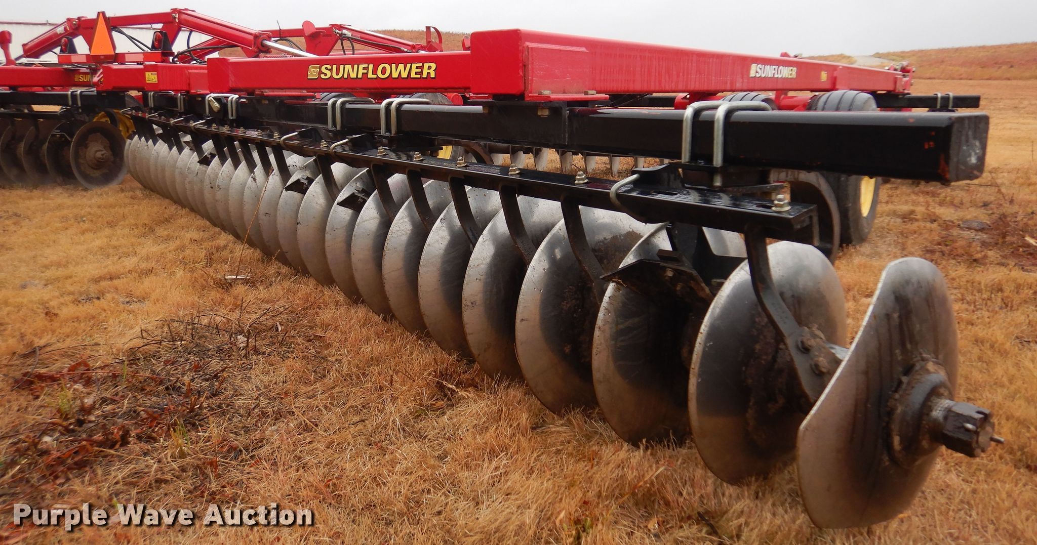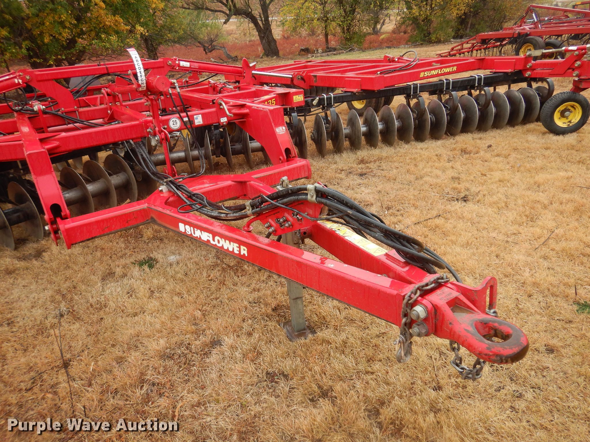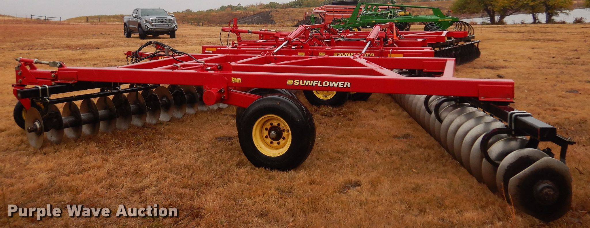 Purple Wave is selling a used Disk in Kansas. This item is a Sunflower 1435 double off-set disk with the following: Overall width: 35', Serial: 1435E09344