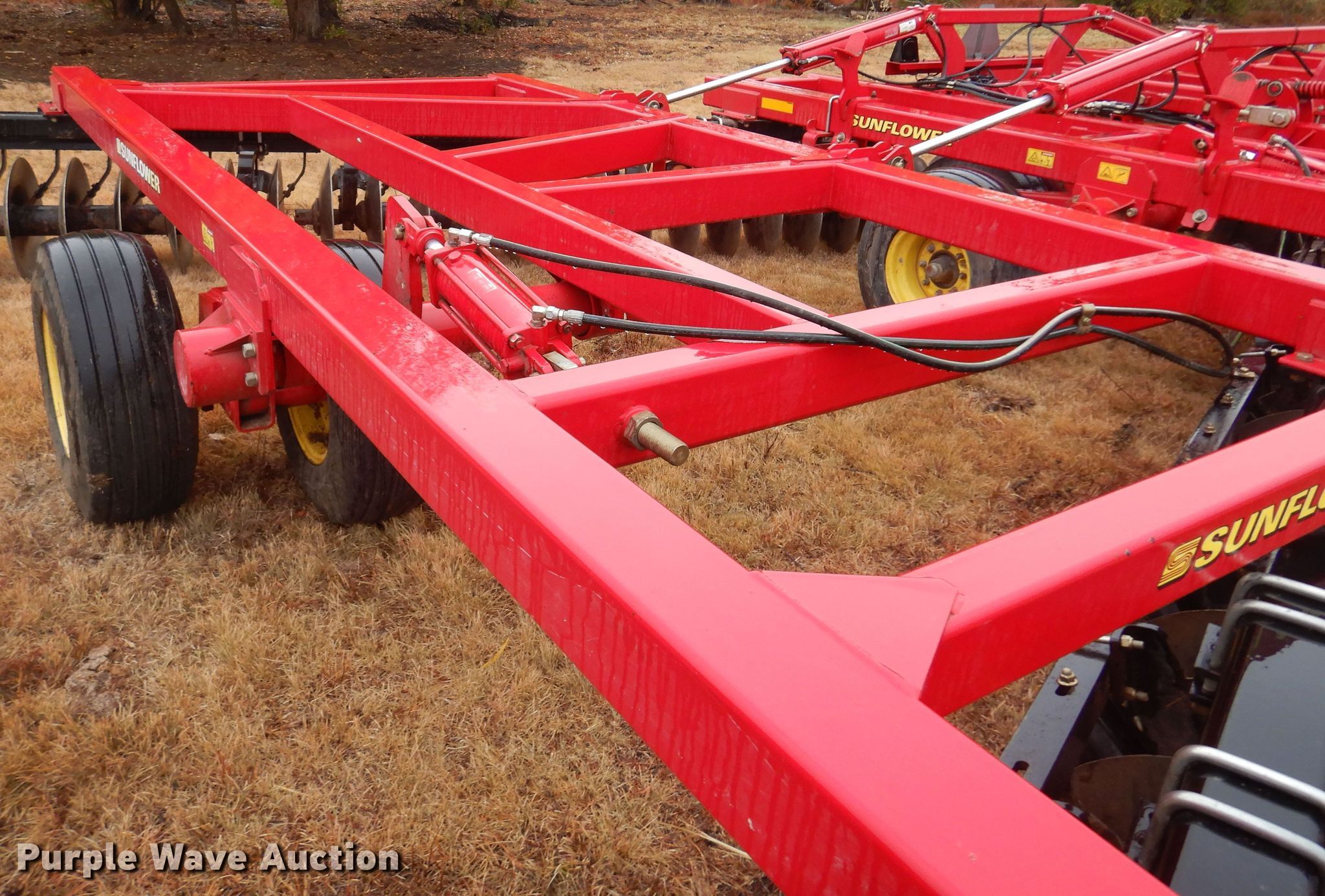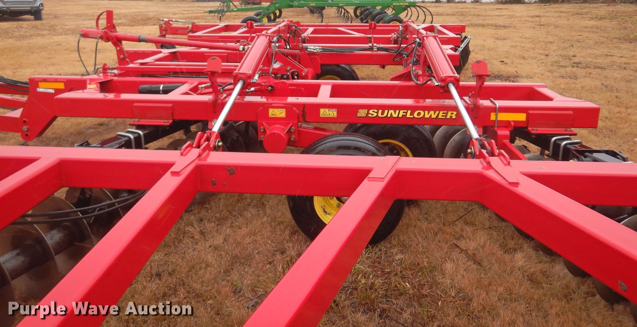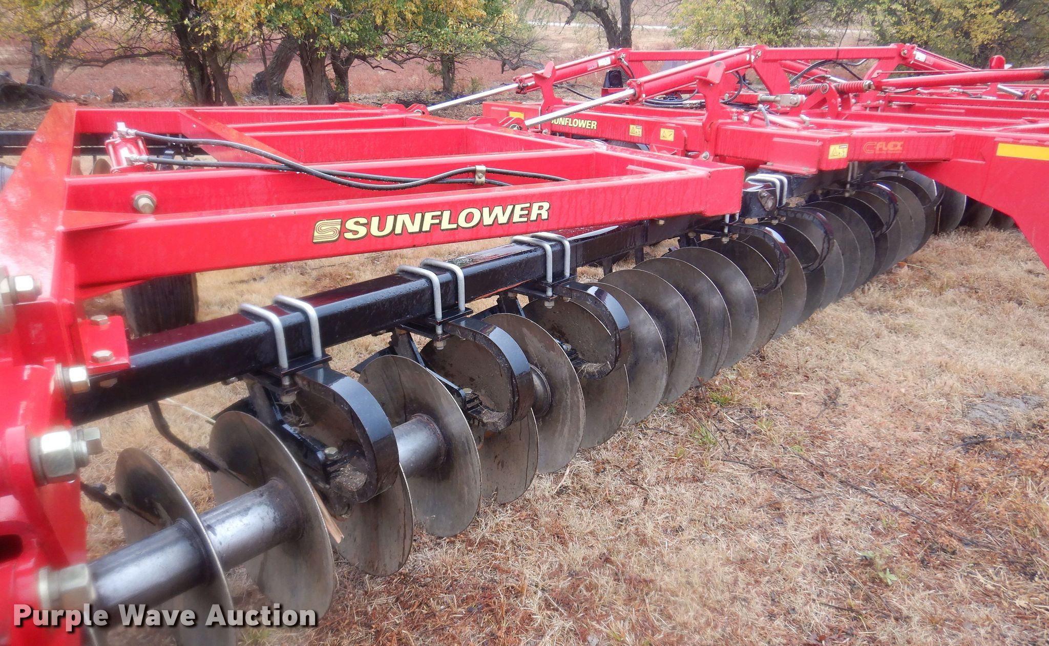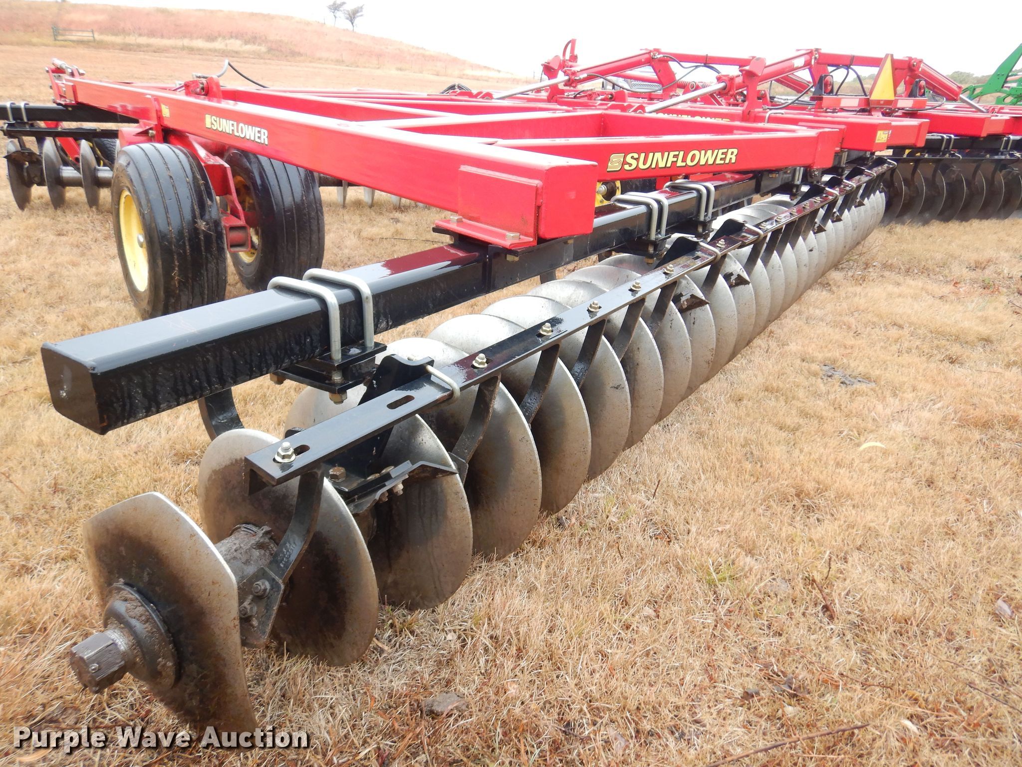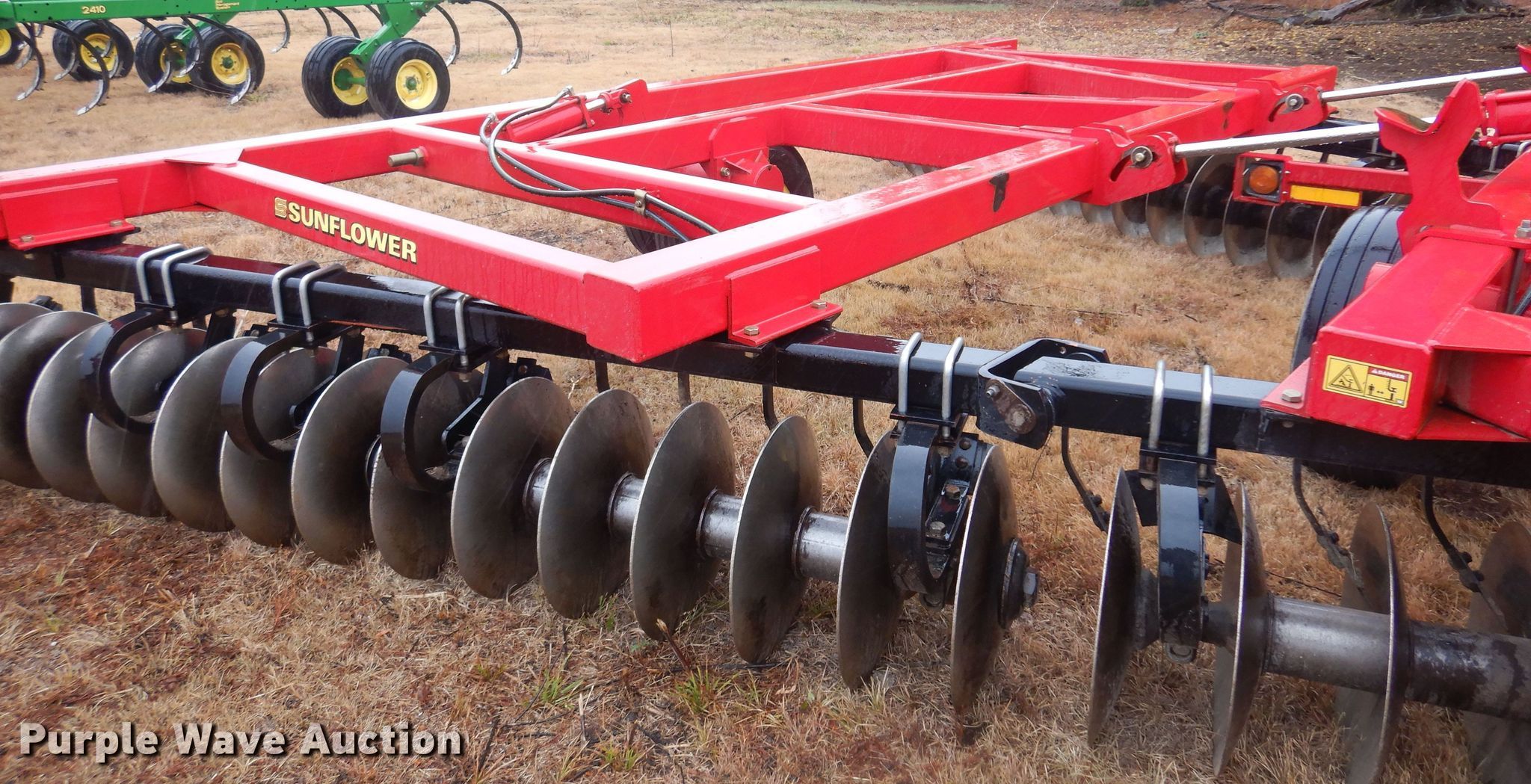 Purple Wave is selling a used Disk in Kansas. This item is a Sunflower 1435 double off-set disk with the following: Overall width: 35', Serial: 1435E09344