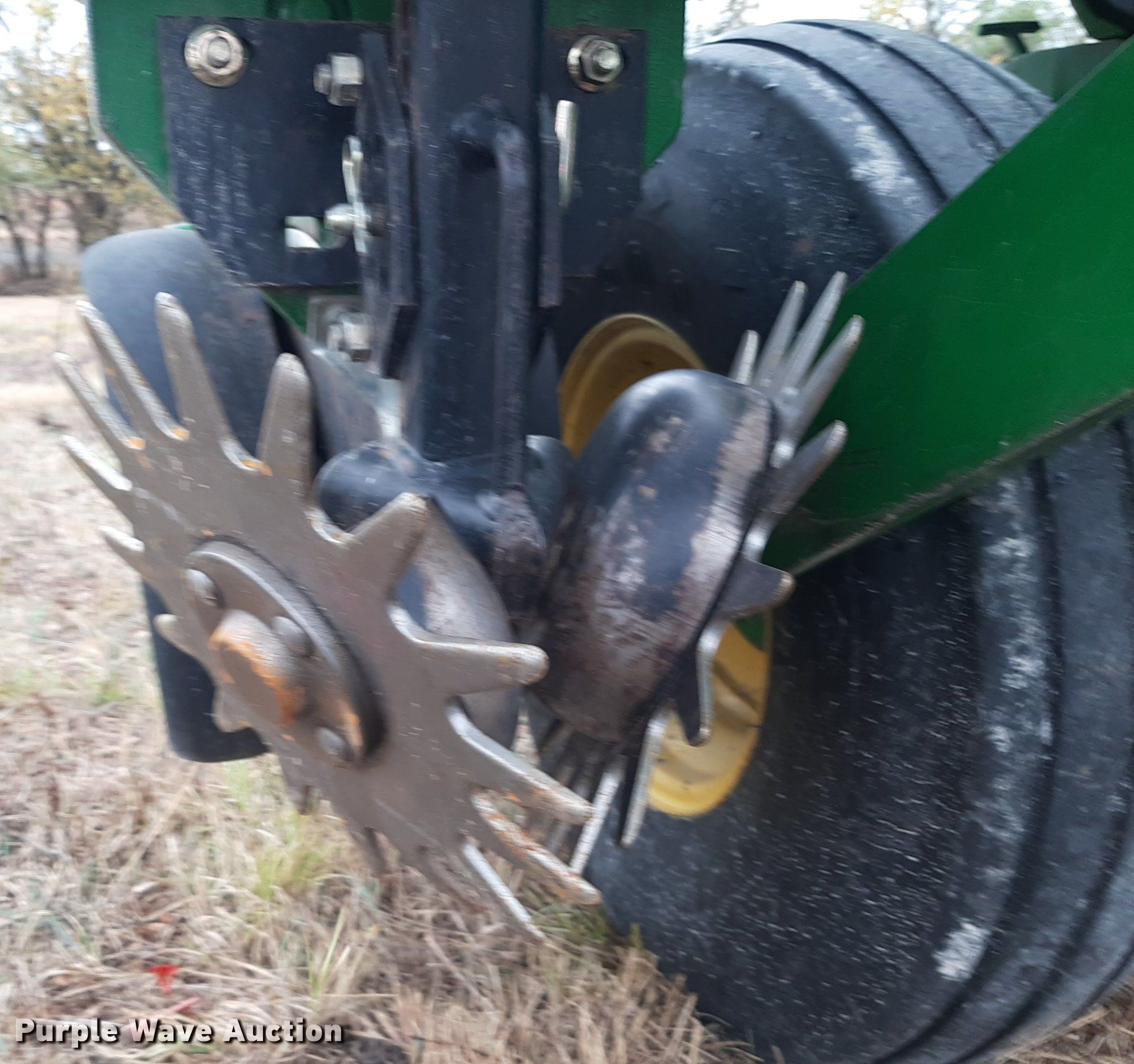John Deere 1770NT planter. Row units: 16, Row spacing: 30", Serial: A01770Y720212. Features Frame Hitch: Two point, Hydraulic fold Front fold, Seed delivery Individual seed hoppers, Row units Seed meters: Corn, Soybeans, Milo, Down pressure: Pneumatic, Row cleaners, Disk openers: Double, Gauge wheels: Double, Closing system: Double Type: Rubber, Electronics Monitor John Deere Computer Trak 350.. Tires Drive/ outside tire size: 10.00-15 Quantity: 8. Julius Land and Cattle Co. Retirement Sale. Atlanta, KS 67008