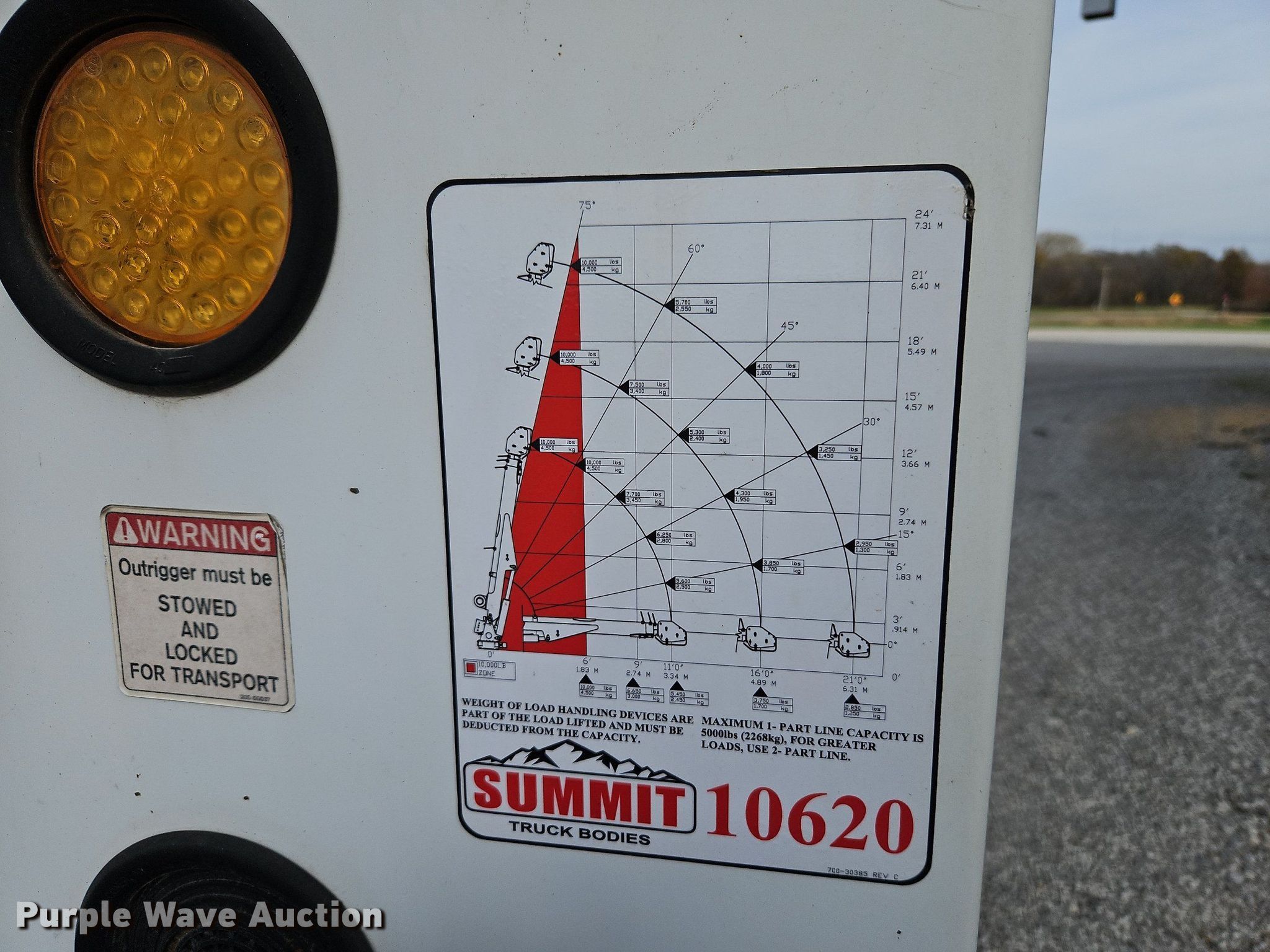 2006 Sterling Acterra utility / service truck. Miles: 359,295 on odometer, VIN: 2FZACFCS66AV73786. Engine Mercedes-Benz , Displacement: 6.4L, Cylinders: 6, Fuel type: Diesel. Transmission Manual, Speed: 6. Chassis Axles: Single, Suspension: Spring, Brakes: Air, PTO, GVWR: 26,000 lbs. Interior AC, Heat, Heated mirrors, Cruise control. Features Bed Summit, 14' L x 98" W, Crane Seyller 10620, Maximum boom length: 21' Maximum lift capacity: 10,000 lbs.. Tires Size: 11R22.5. Notes Windshield chipped or cracked, Air leak, Possible engine issues. Kansas title. Title distribution may be delayed up to 14 days from verification of funds. Mound City, KS 66056