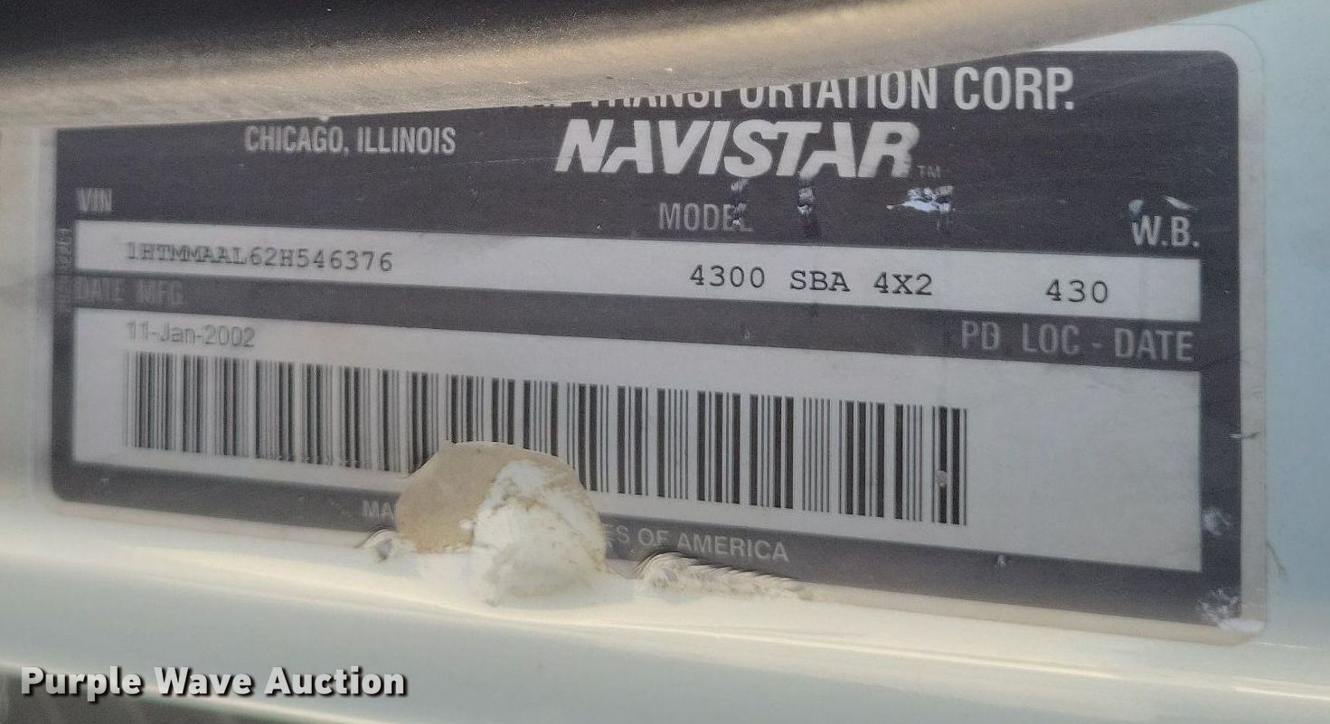 Purple Wave is selling a used Flat Bed Truck in Missouri. This item is a 2002 International 4300 flatbed truck with the following: Miles: 213,081 on odometer, Hours: 5,854 on meter, VIN: 1HTMMAAL62H546376