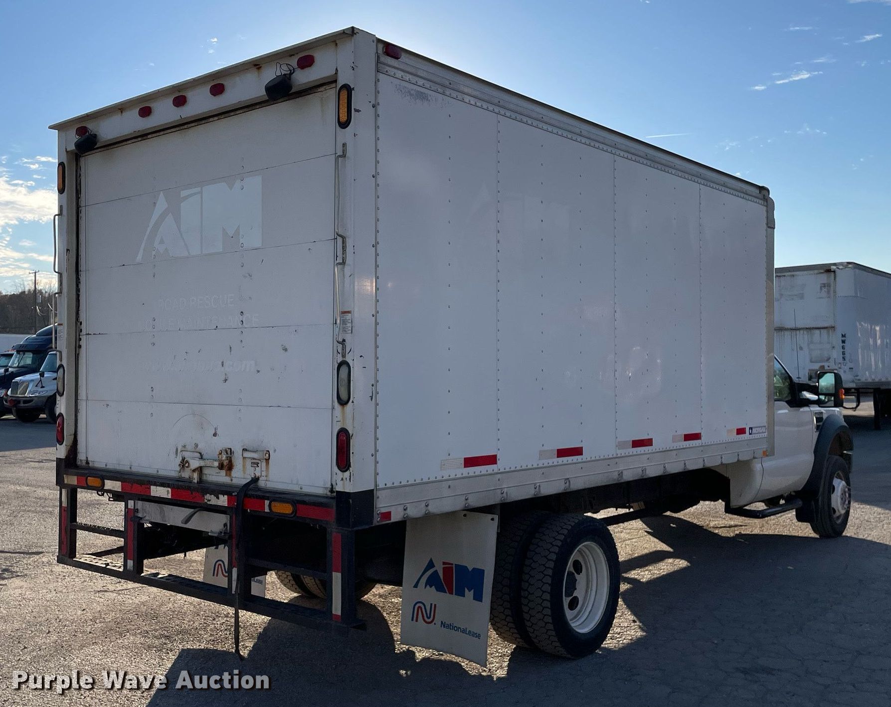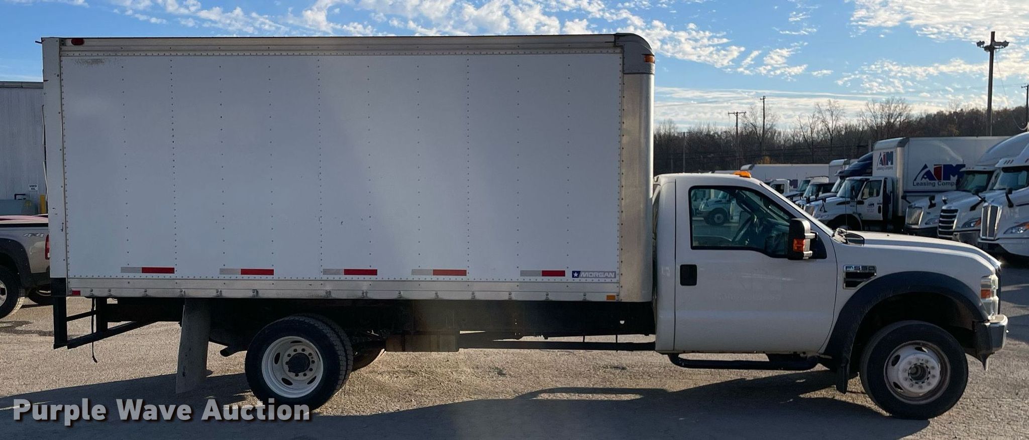 2010 Ford F550 box truck. Miles: 165,840 on odometer, Hours: 9,695 on meter, VIN: 1FDAF5GY5AEA66670, Unit #: 001913. Engine Displacement: 6.8L, Cylinders: 10, Fuel type: Gas. Transmission Automatic. Chassis Axles: Single, Suspension: Spring, Brakes: Hydraulic, GVWR: 17,950 lbs. Interior AC, Heat, Heated mirrors, Power windows, Power locks, Cruise control, Auxiliary controls, Brake controller. Features Box bed Morgan GVSDI07916096, Serial: MWI08VB41823001, 16' L x 96" W x 84" H, Floor: Wood. Tires Size: 225/70R19.5. Ohio title. Title distribution may be delayed up to 14 days from verification of funds. Aim NationaLease. 1500 Trumbull Avenue. Girard, OH 44420