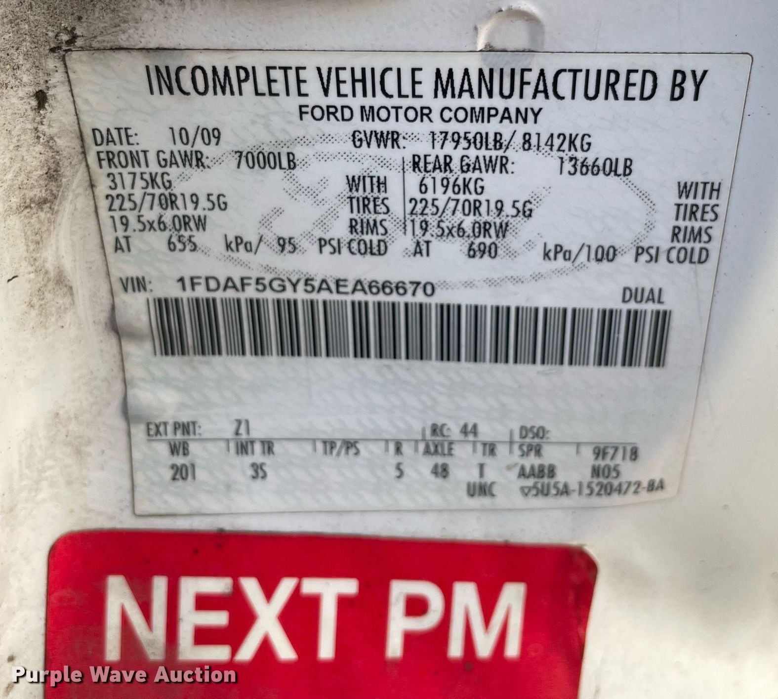 - VIN: 1FDAF5GY5AEA66670
