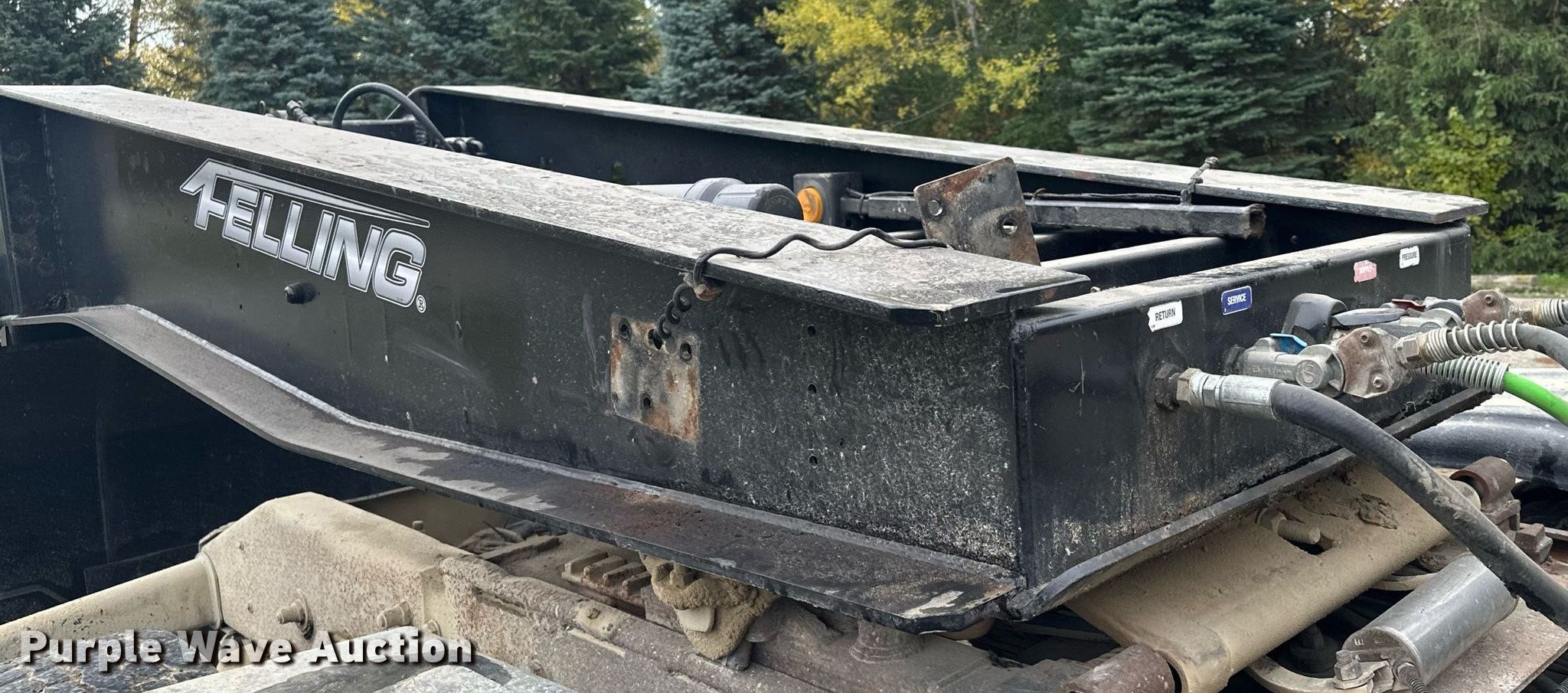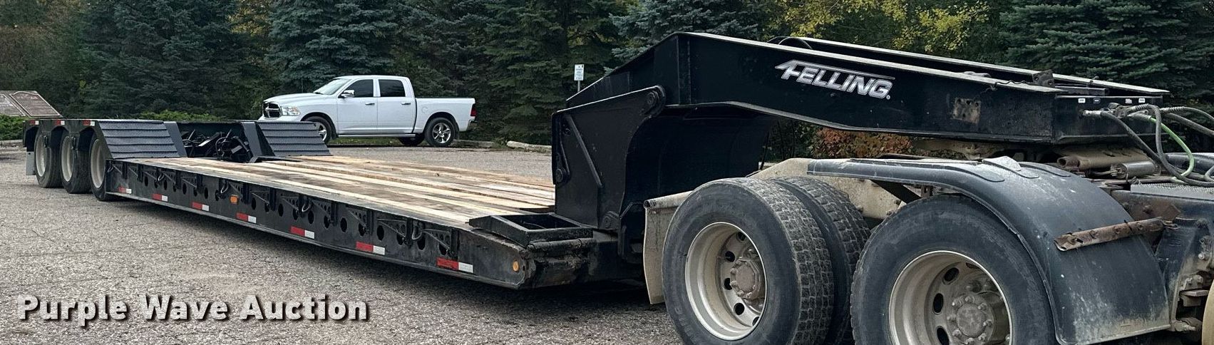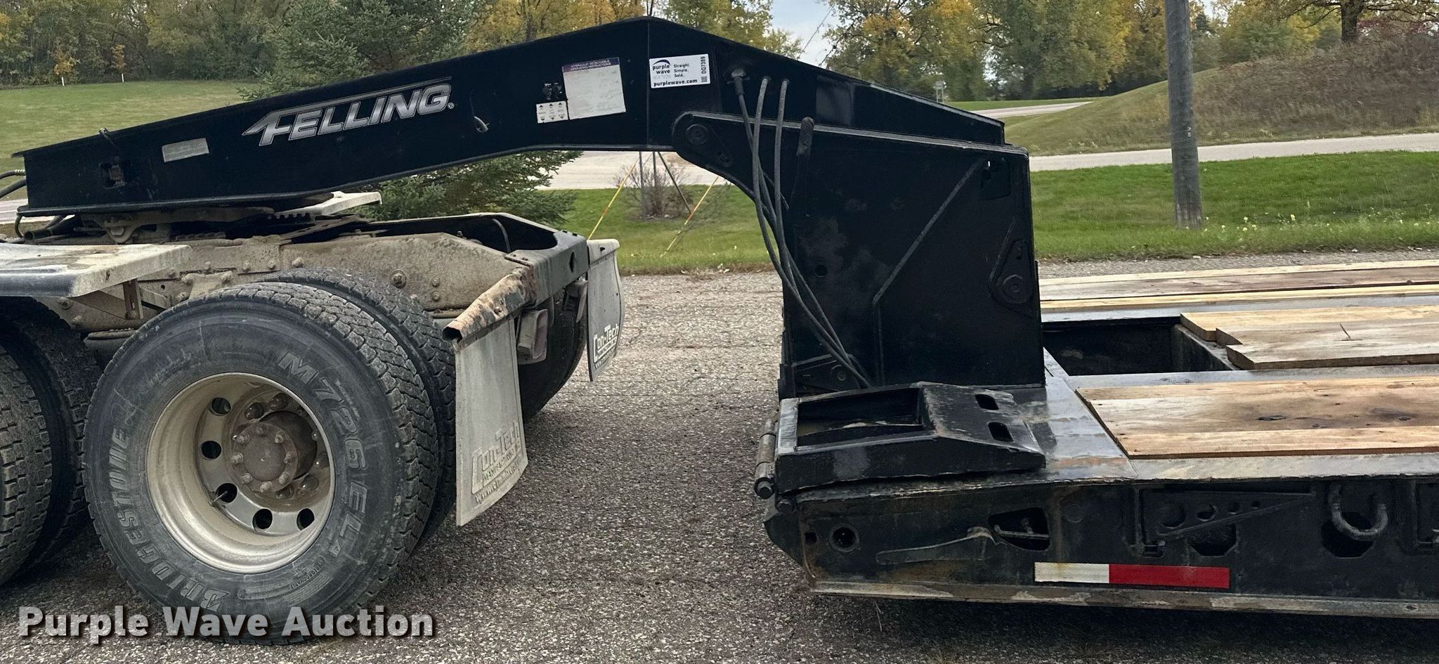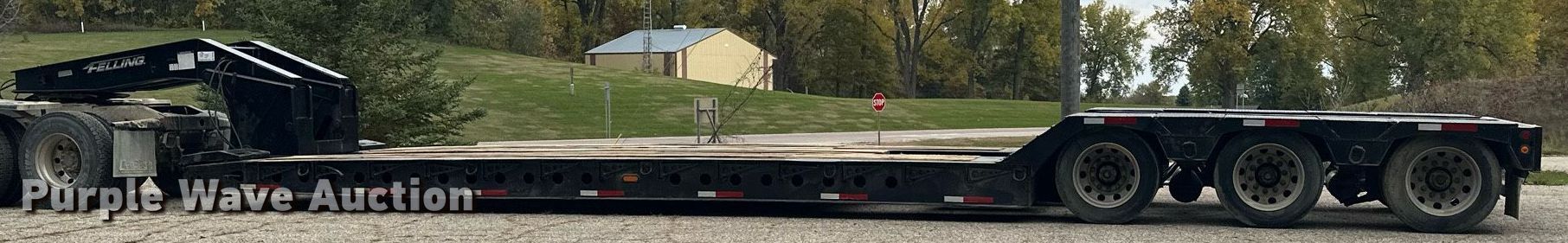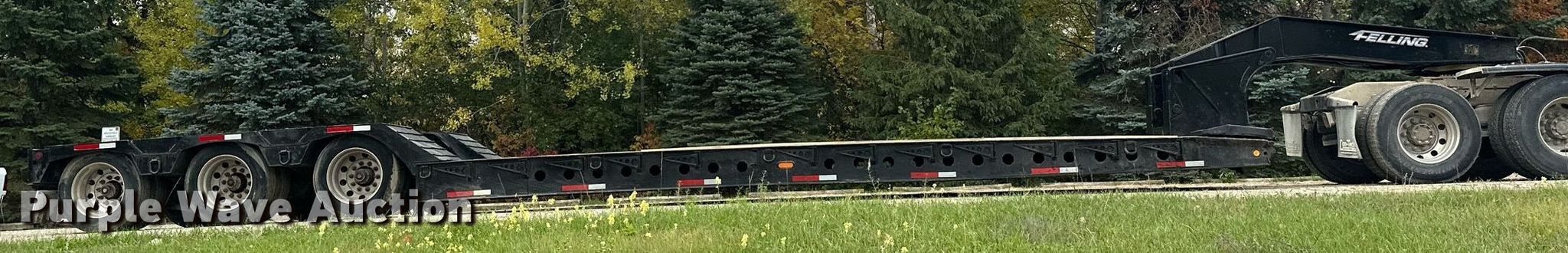 2013 Felling XF-110-3 HDG lowboy equipment trailer. VIN: 5FTLA5133D1043902. Dimensions Overall: 52' L x 108" W, Deck: 25' L x 108" W, Rear deck length: 12' 8", Deck height: 1' 10", Ramps: Manual Length: 2' 2". Features Deck type: Steel, Wood, Outriggers: Swing-out Board size: 13", Neck type: Detachable. Chassis Suspension: Air, Brakes: Air, Axles: Triple, GVWR: 131,500 lbs, GAWR: 20,280 lbs. Tires Aluminum wheels, Size: 255/70R22.5. Minnesota title. Title distribution may be delayed up to 14 days from verification of funds. Fitzgerald Excavating & Trucking. 21432 350th St. Goodhue, MN 55027