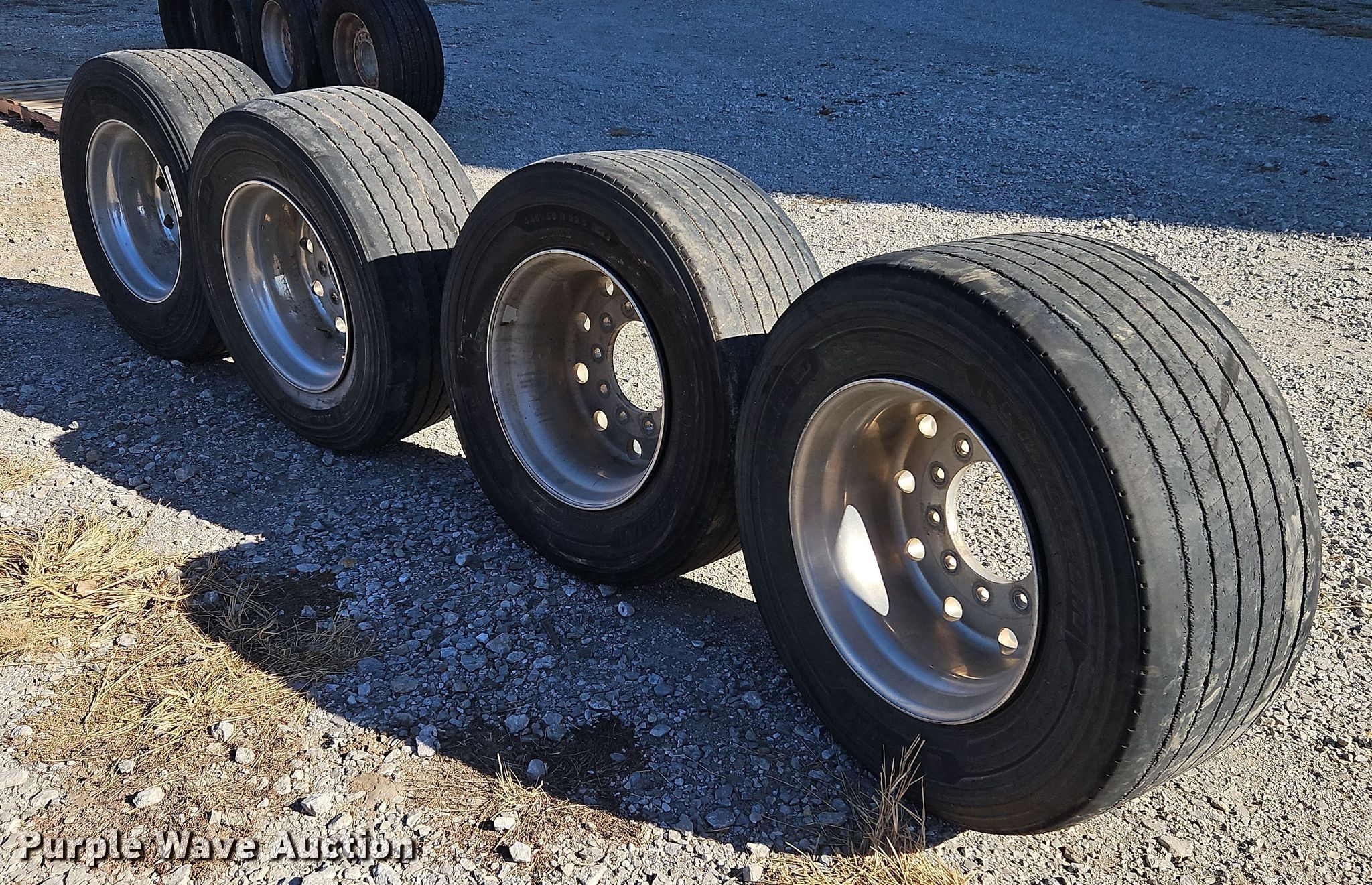(4) Michelin X One tires and wheels. Size: 445/50R22.5, Aluminum wheels. Mound City, KS 66056