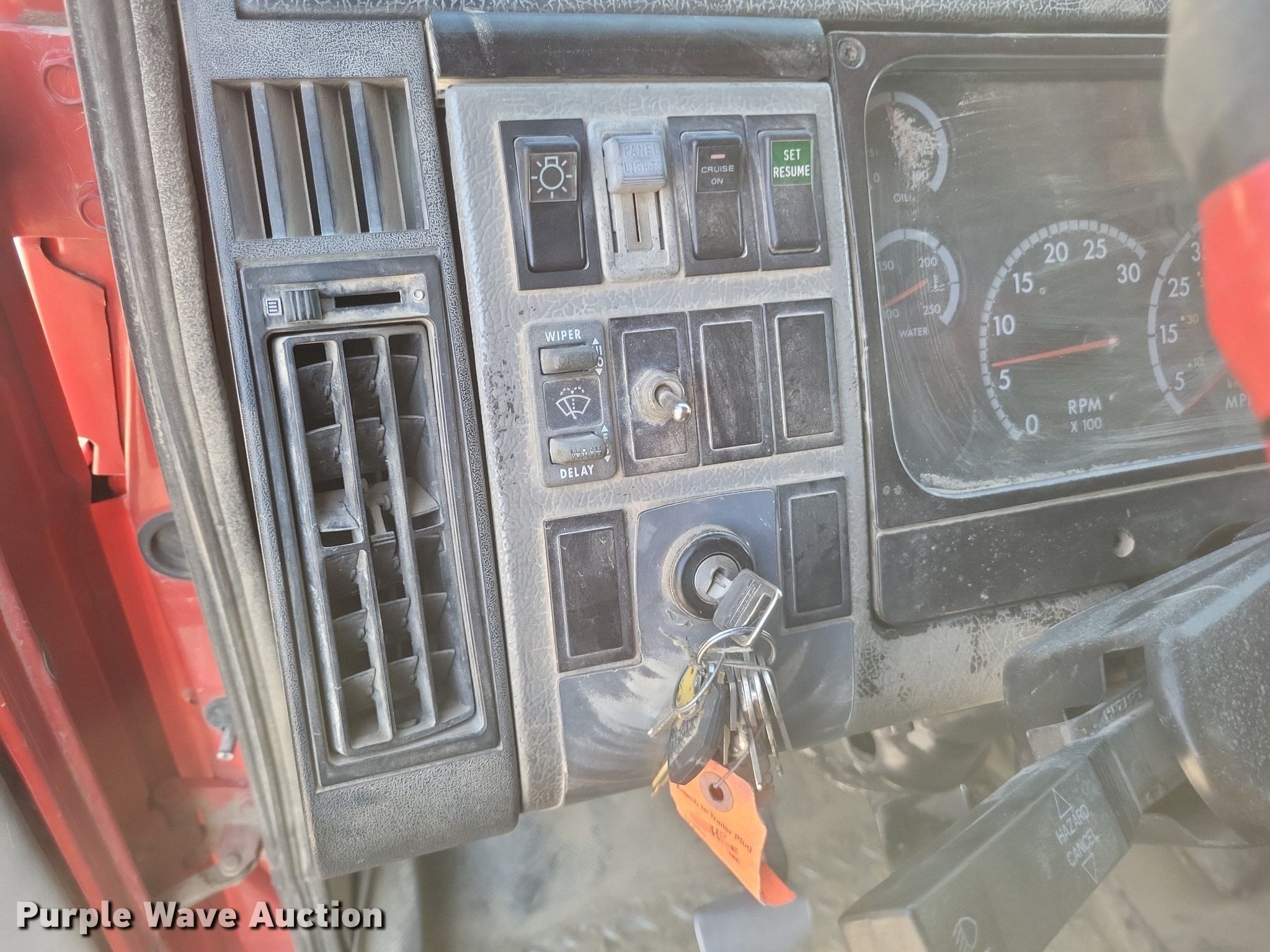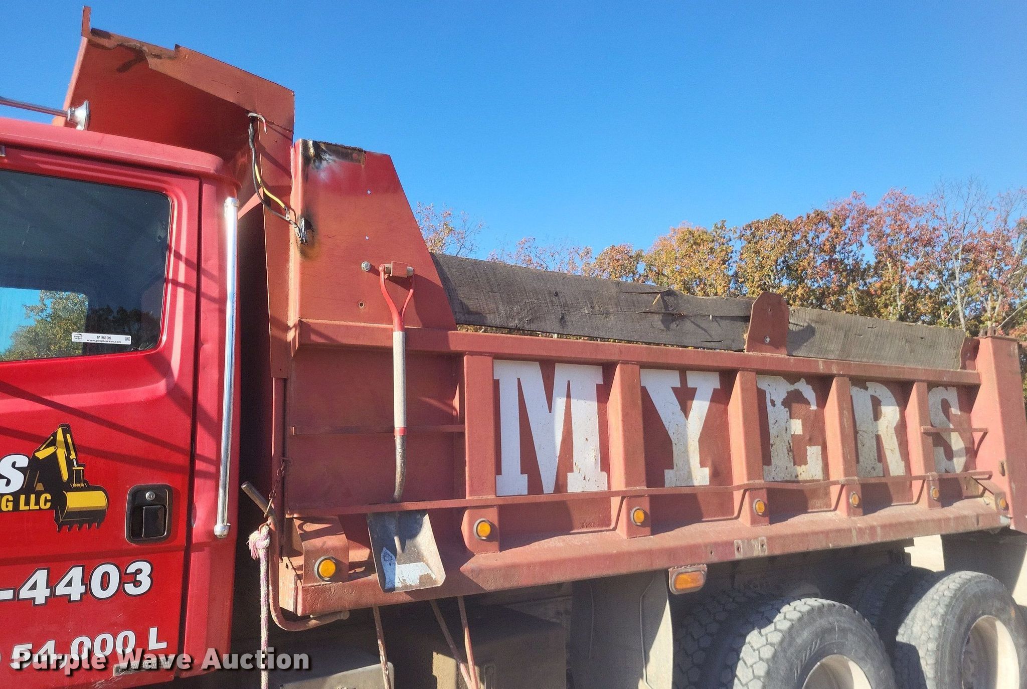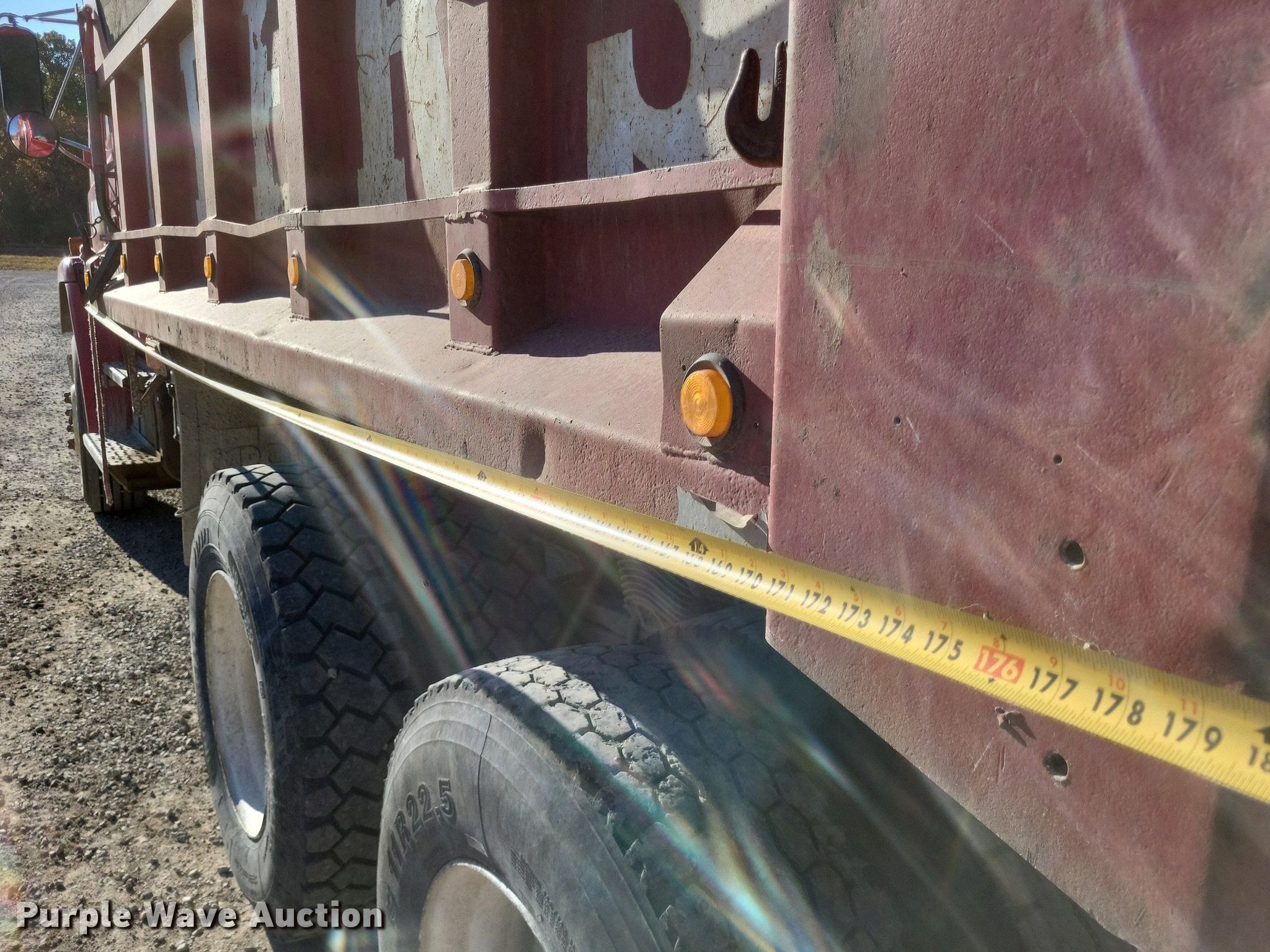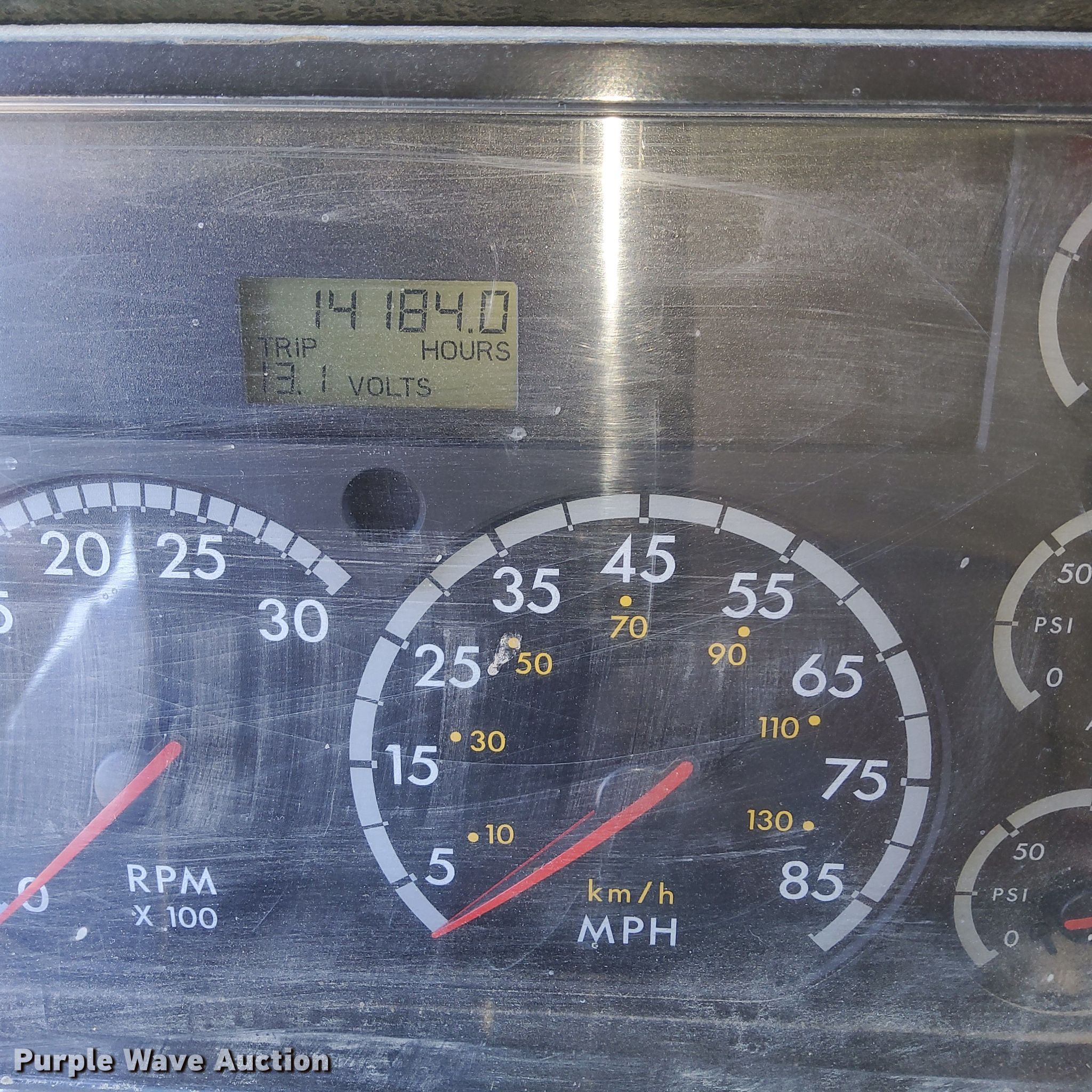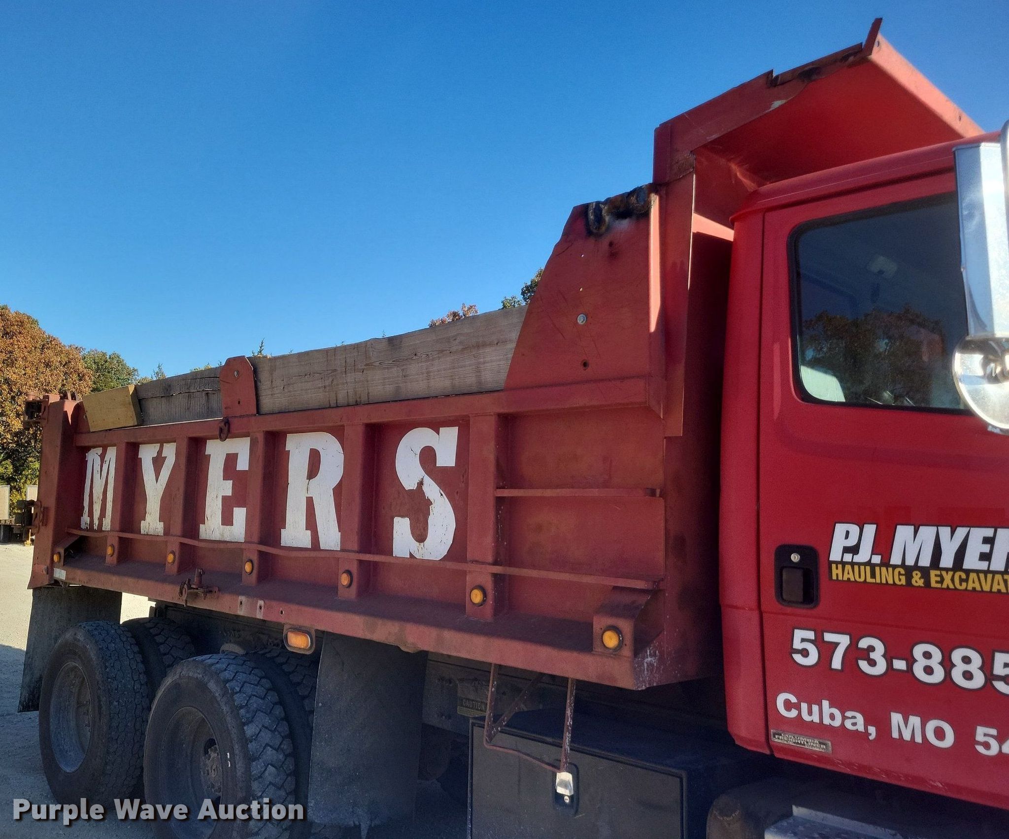 2002 Freightliner FL80 dump truck. Miles: 245,536 on odometer, Hours: 14,184 on meter, VIN: 1FVHBXAK82HJ69343, Unit #: 2002. Engine Caterpillar C7, Serial: WAX63613, Displacement: 7.2L, Cylinders: 6, Fuel type: Diesel. Transmission Eaton Fuller 8 LL, Manual, Speed: 10. Chassis Double frame, Axles: Tandem, Differential lock: Inter-axle, Suspension: Spring over walking beam, Brakes: Air, PTO, GVWR: 53,220 lbs FAWR: 13,220 lbs, IAWR: 20,000 lbs, RAWR: 20,000 lbs. Interior AC, Heat, Cruise control. Features Dump bed 14' 10" L x 8' W, Side height: 35", Side board height: 11", Bed type: Steel, Ram: Single , End gate: Manual. Tires Front: 315/80R22.5, Rear: 11R22.5. Notes Windshield chipped or cracked. Missouri title. Title distribution may be delayed up to 30 days from verification of funds. 7419 Old Route 66. Cuba, MO 65453