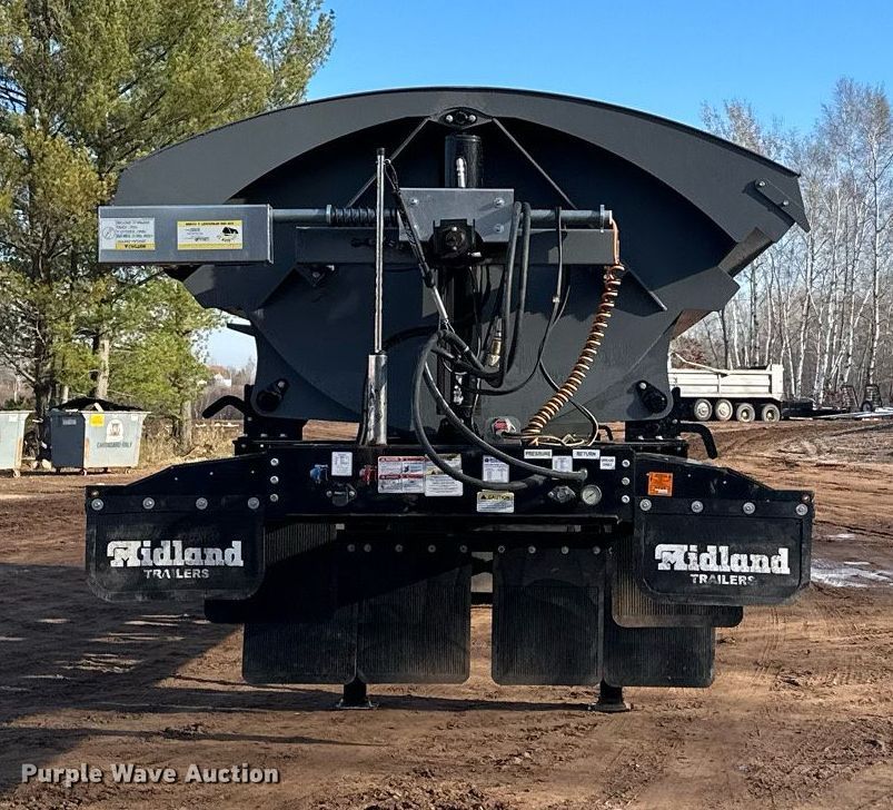 2022 Midland MG46TW3000 side dump trailer. VIN: 2MFB2R3D0NR009892. Dimensions Overall: 47' L x 96" W, Body: 34' L x 96" W, Side height: 3' 7". Features Body type: Steel, Ram: Dual, Rear push block, Roll tarp. Chassis Landing gear: Dual, Suspension: Air, Brakes: Air, Axles: Triple, GVWR: 88,000 lbs. Tires Steel wheels, Size: 11R22.5. Minnesota title. Title distribution may be delayed up to 14 days from verification of funds. JCF Builders, LLC. 22381 County Highway 61. Pine City, MN 55063