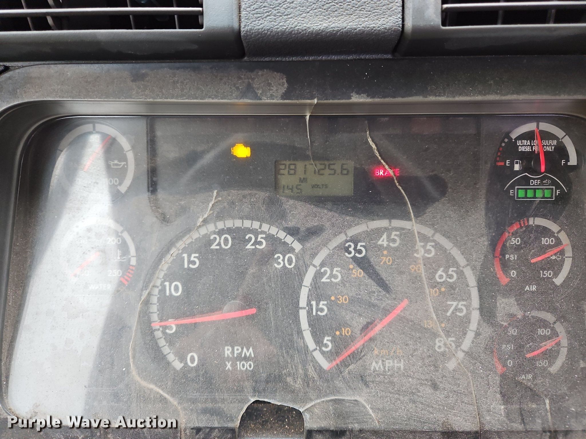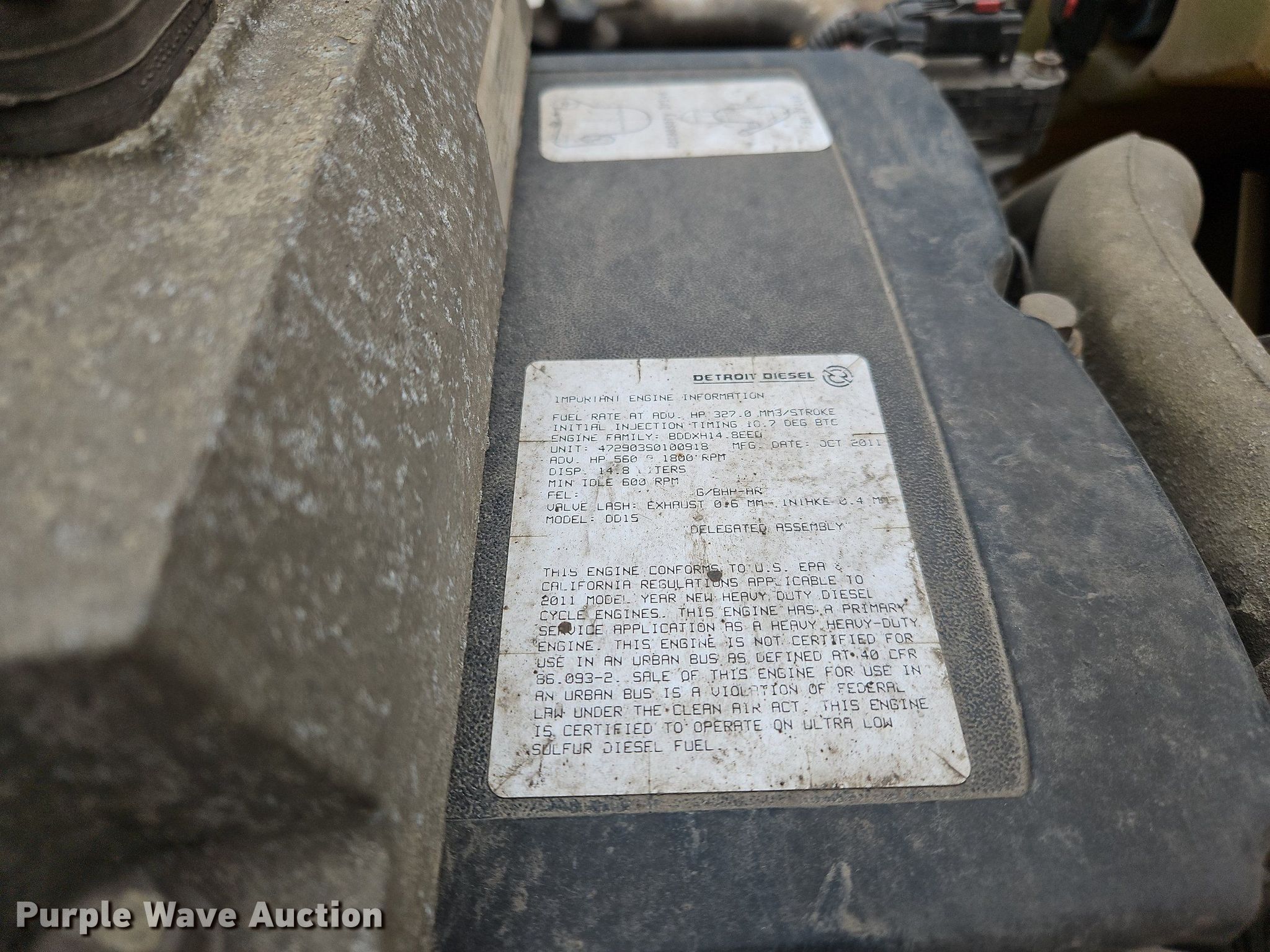 2012 Freightliner Cascadia semi truck. Miles: 281,692 on odometer, VIN: 1FUJGEDR6CSBR5516, Unit #: 161. Engine Detroit Diesel DD15, Displacement: 14.8L, Cylinders: 6, Fuel type: Diesel, Engine brake. Transmission Automated manual. Chassis Axles: Tandem, Differential lock: Full, Suspension: Air, Brakes: Air, GVWR: 52,000 lbs FAWR: 12,000 lbs, IAWR: 20,000 lbs, RAWR: 20,000 lbs. Interior AC, Heat, Heated mirrors, Power windows, Cruise control, Air ride cab. Features Deck plate: Aluminum, Fifth wheel type: Air operated, Sliding, Fuel tank: Dual. Tires Size: 295/75R22.5. Notes Dash warning indicator: Check engine, Check trans, Windshield chipped or cracked. Michigan title. Title distribution may be delayed up to 14 days from verification of funds. 48649 Schooner Dr. Van Buren Township, MI 48111