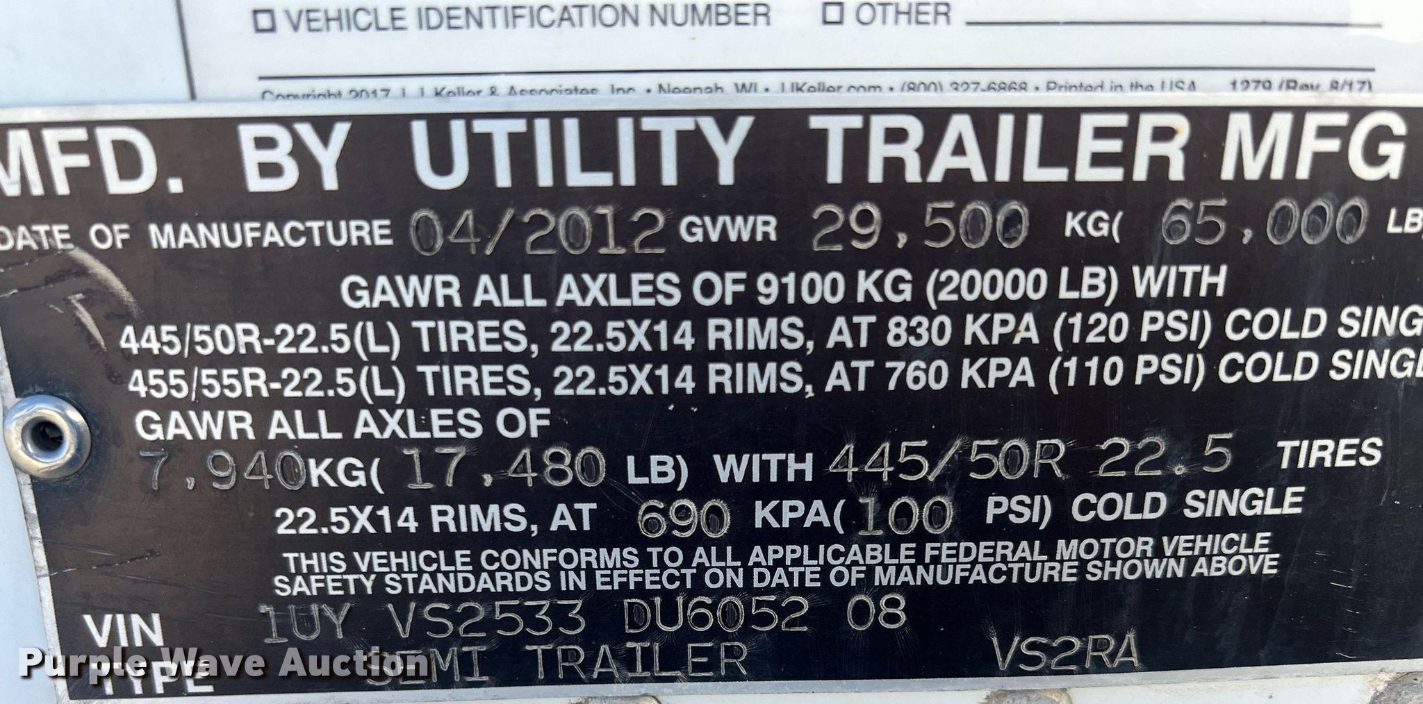 2013 Utility refrigerated van trailer. VIN: 1UYVS2533DU605208. Dimensions Overall: 53' L x 102" W. Features Deck type: Aluminum, Refrigeration unit Carrier X2 2100 Advance, Hours: 16,621. Chassis Landing gear: Dual, Suspension: Air, Brakes: Air, Axles: Tandem, Sliding, GVWR: 65,000 lbs. Tires Aluminum wheels, Size: 445/50R22.5. Kansas title. Title distribution may be delayed up to 14 days from verification of funds. JJT Logistics LLC. 2333 165th Rd. Wathena, KS 66090