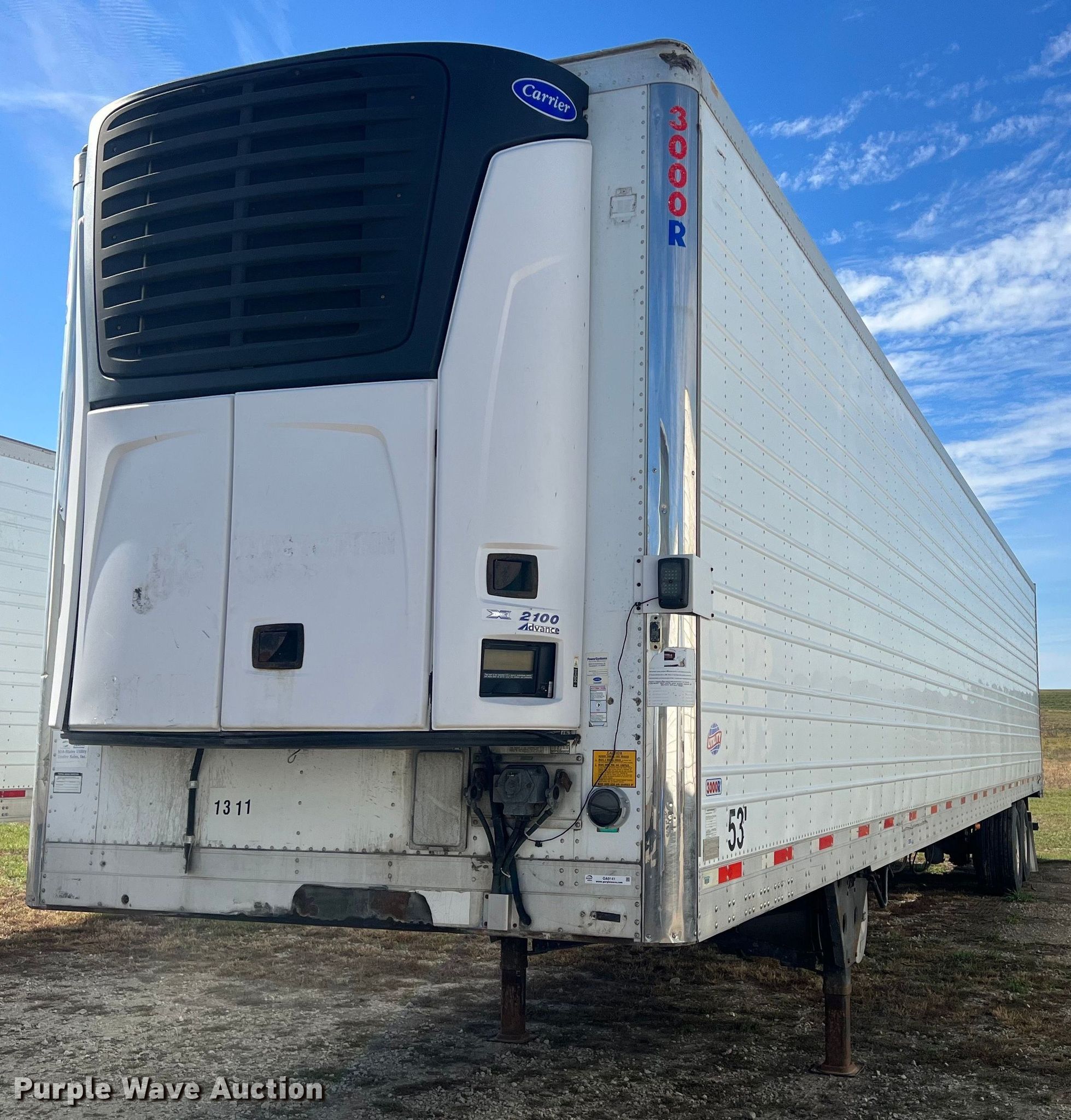 2013 Utility refrigerated van trailer. VIN: 1UYVS2533DU636202. Dimensions Overall: 53' L x 102" W. Features Deck type: Aluminum, Refrigeration unit Carrier X2 2100 Advance, Hours: 16,119. Chassis Landing gear: Dual, Suspension: Air, Brakes: Air, Axles: Tandem, Sliding, GVWR: 65,000 lbs. Tires Aluminum wheels, Size: 445/50R22.5. Kansas title. Title distribution may be delayed up to 14 days from verification of funds. JJT Logistics LLC. 2333 165th Rd. Wathena, KS 66090