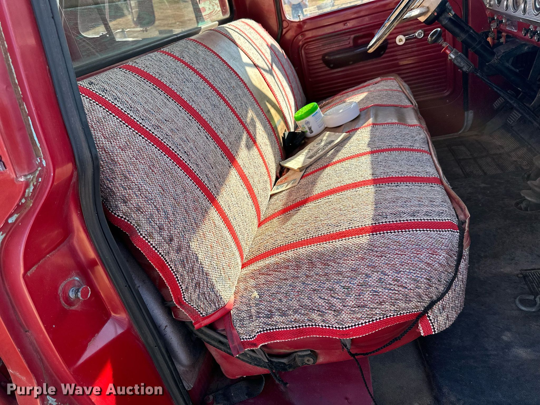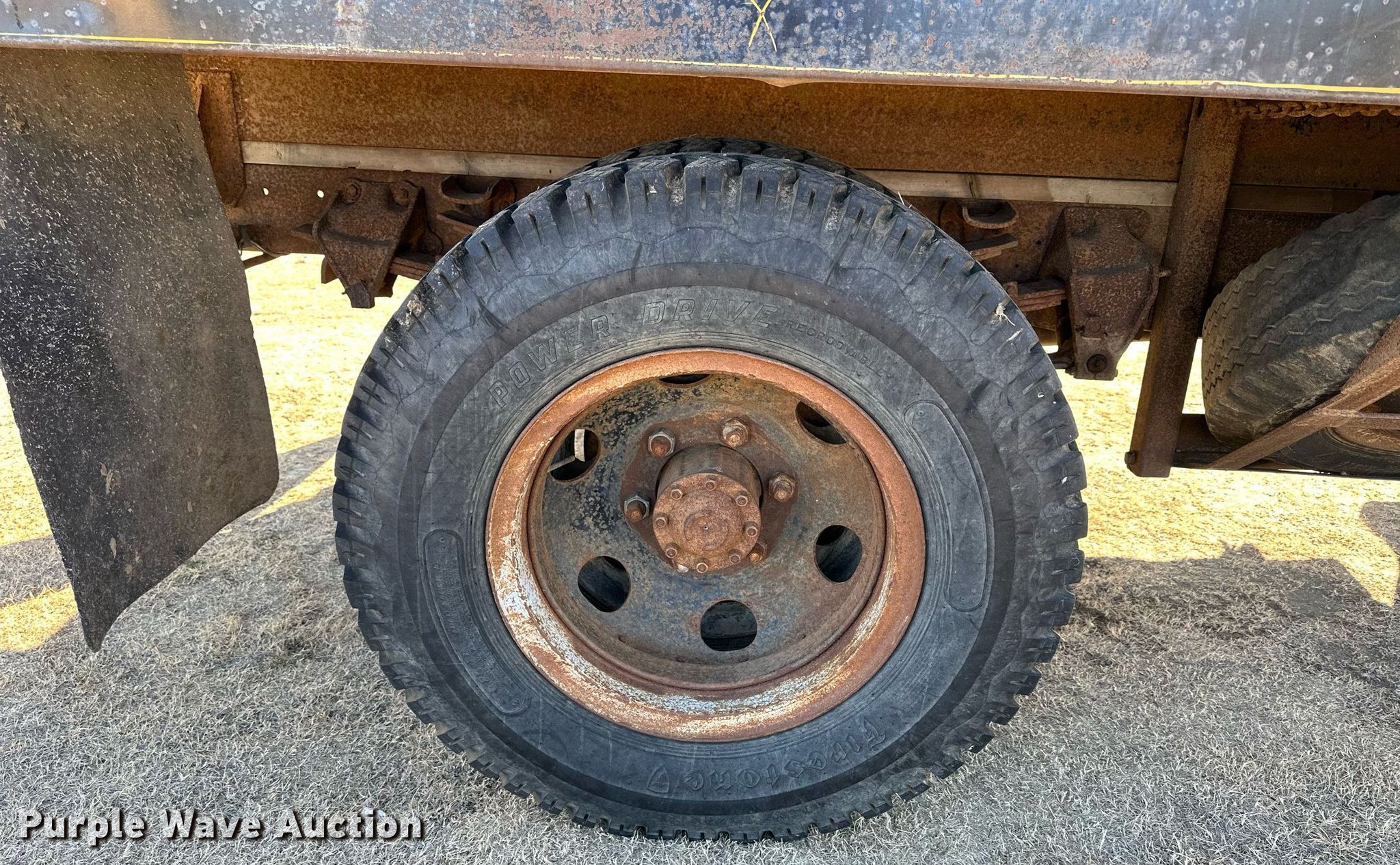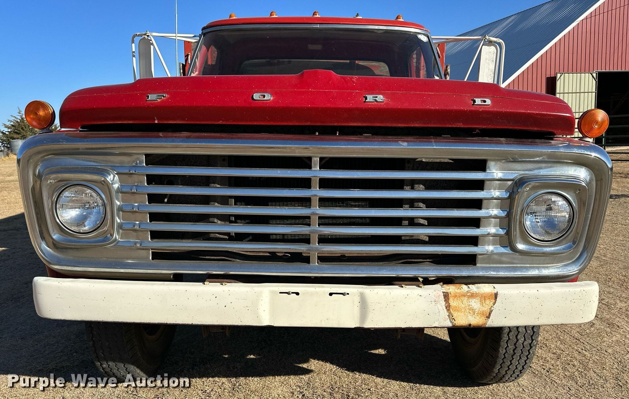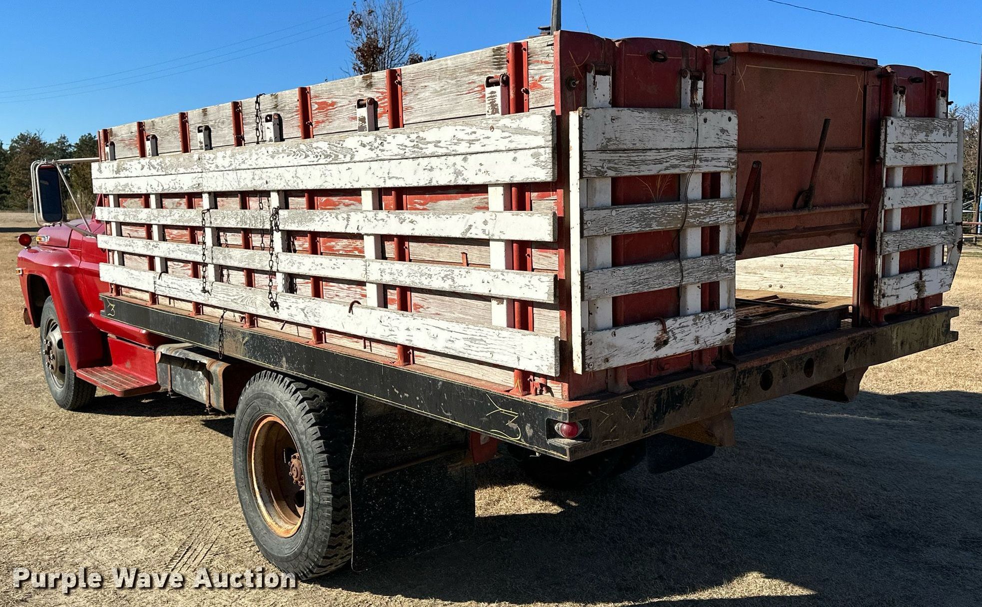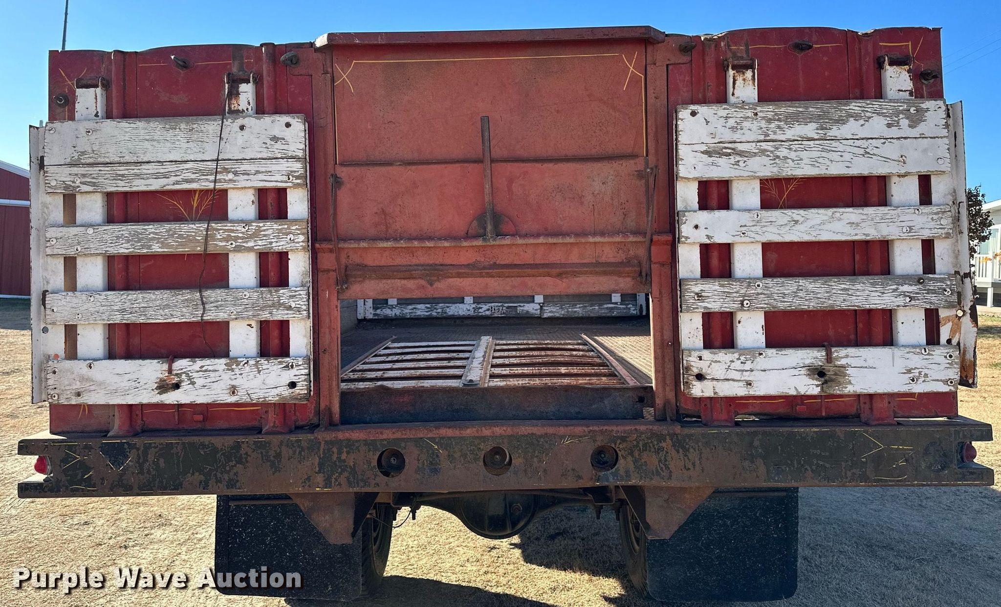 1969 Ford F600 grain truck. Miles: 93,033 on odometer, VIN: F60CKE54071. Engine Cylinders: 8, Fuel type: Gas. Transmission Manual, Speed: 8, plus 2. Chassis Axles: Single, Suspension: Spring, Brakes: Hydraulic, PTO, GVWR: 20,000 lbs, Wheelbase: 156". Interior Heat. Features Dump bed 13' 6" L x 96" W, Side height: 41", Bed type: Steel, End gate: Manual. Tires Size: 8.25-20. Nebraska title. 11927 US Highway 136. Republican City, NE 68971