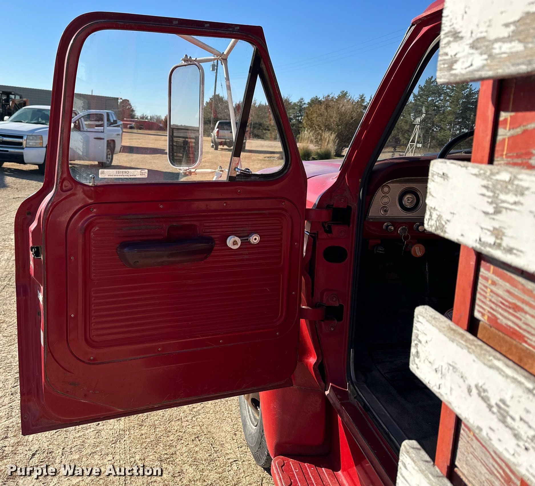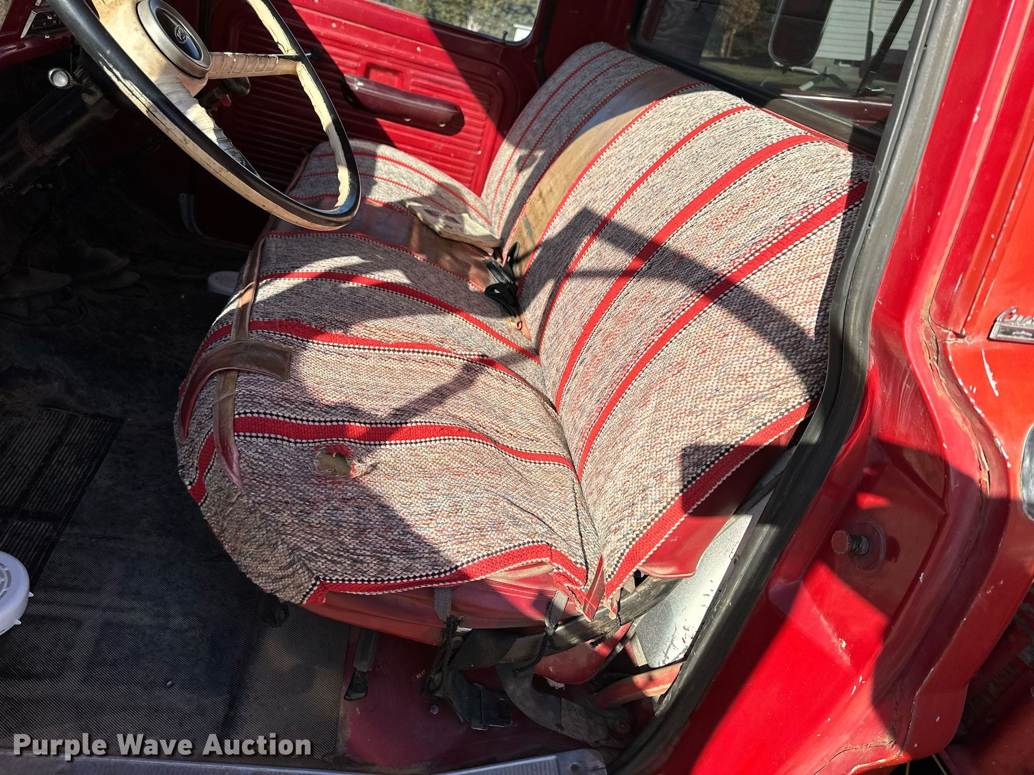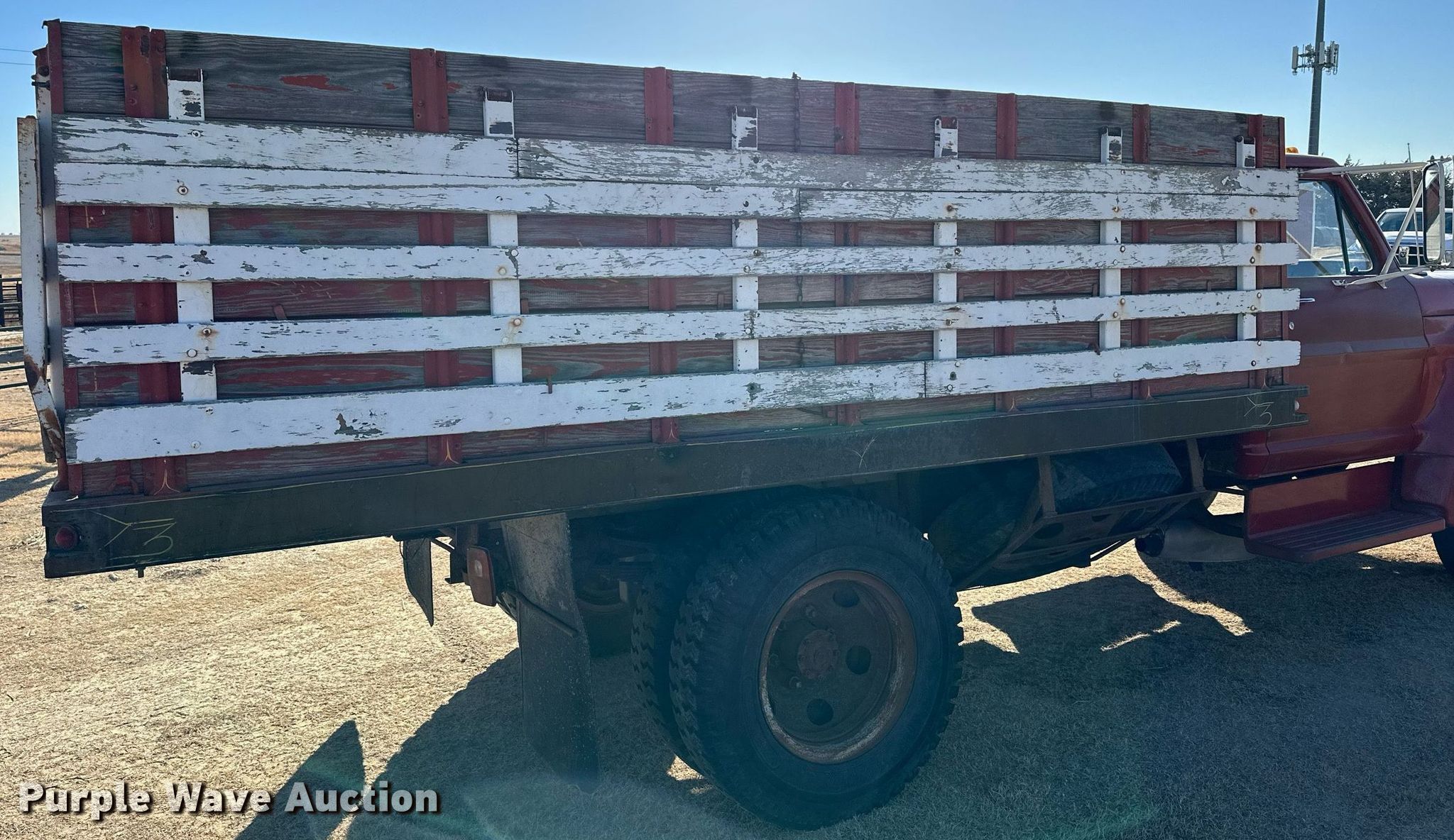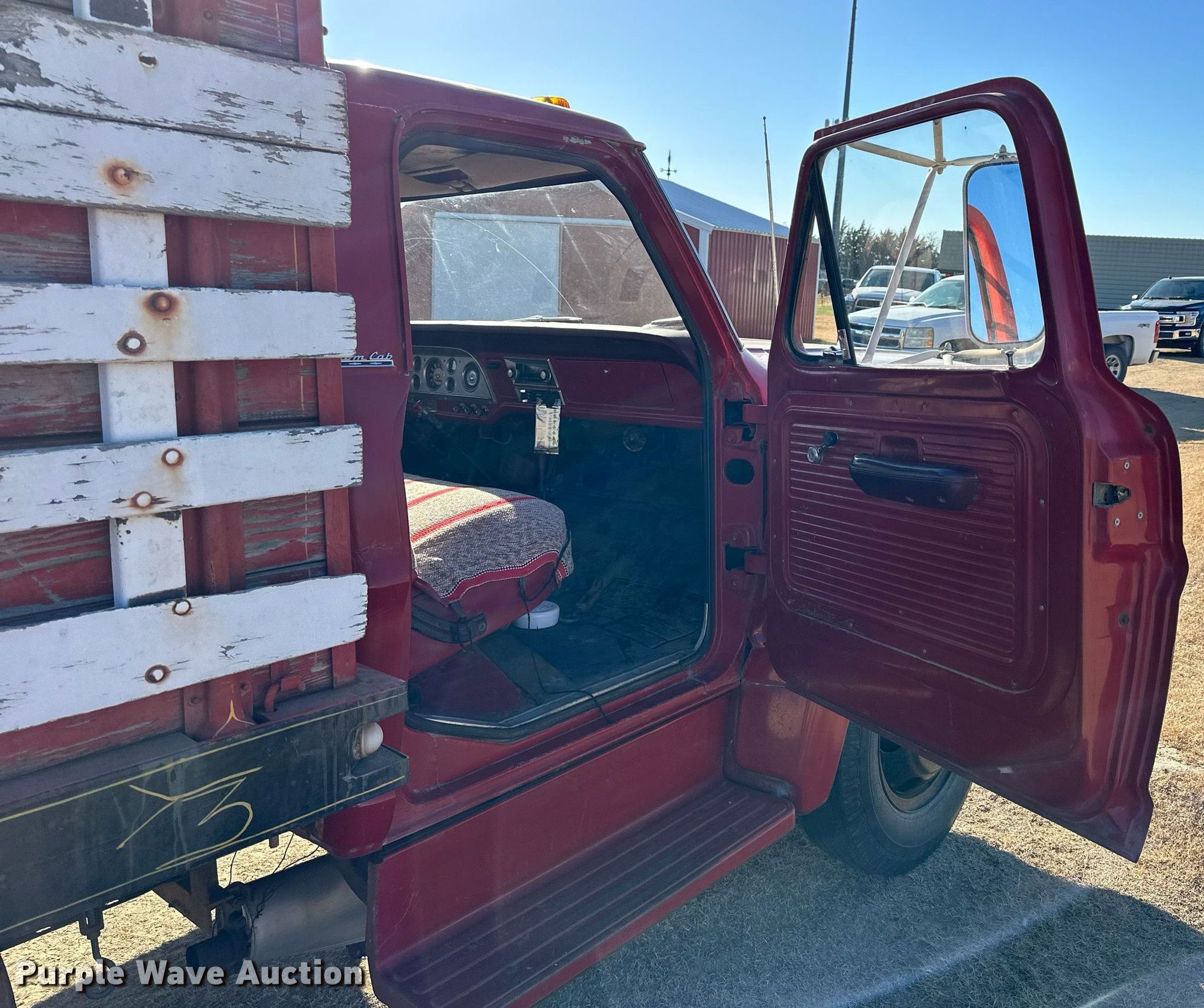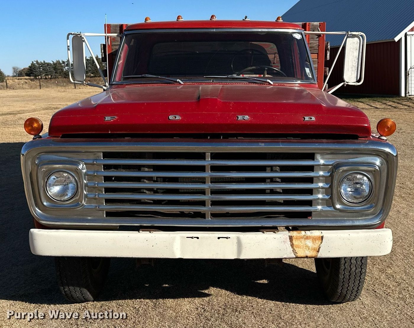 1969 Ford F600 grain truck. Miles: 93,033 on odometer, VIN: F60CKE54071. Engine Cylinders: 8, Fuel type: Gas. Transmission Manual, Speed: 8, plus 2. Chassis Axles: Single, Suspension: Spring, Brakes: Hydraulic, PTO, GVWR: 20,000 lbs, Wheelbase: 156". Interior Heat. Features Dump bed 13' 6" L x 96" W, Side height: 41", Bed type: Steel, End gate: Manual. Tires Size: 8.25-20. Nebraska title. 11927 US Highway 136. Republican City, NE 68971