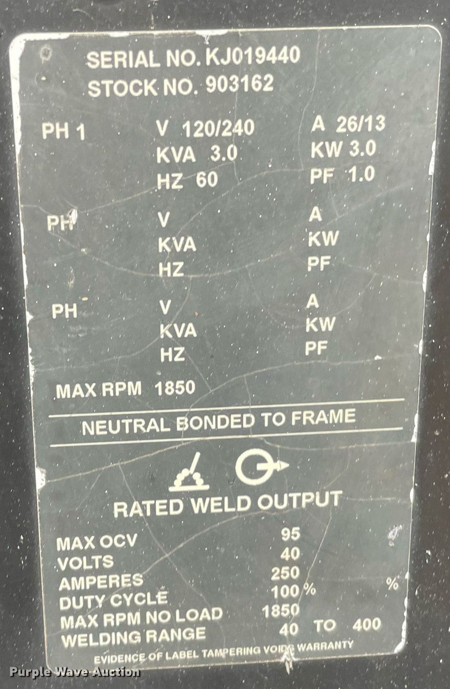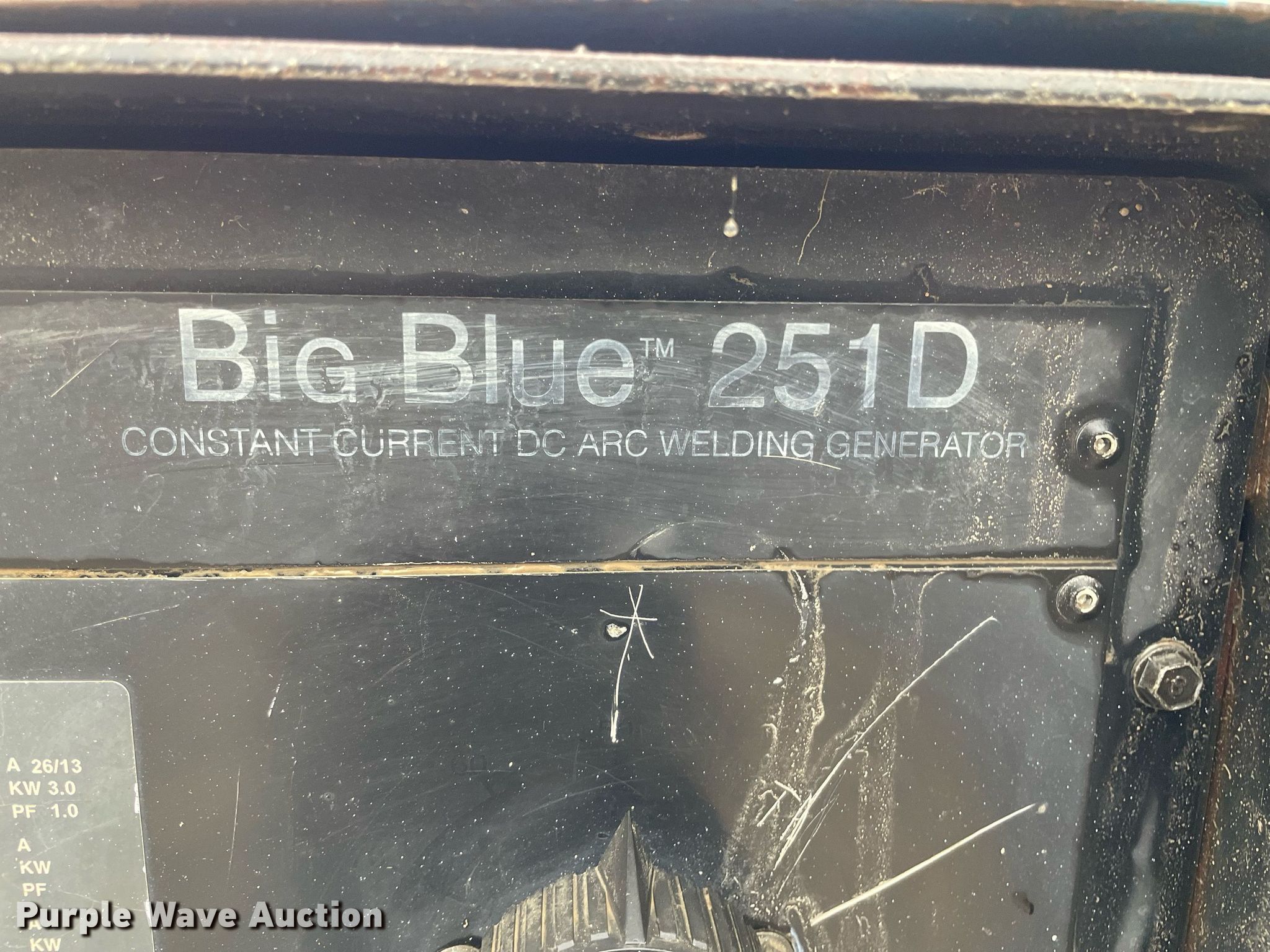 Purple Wave is selling a used Welder (Manual) in Kansas. This item is a Miller Big Blue 251D welder/generator with the following: Hours: 5,215 on meter, Serial: KJ019440, Unit #: C-0218