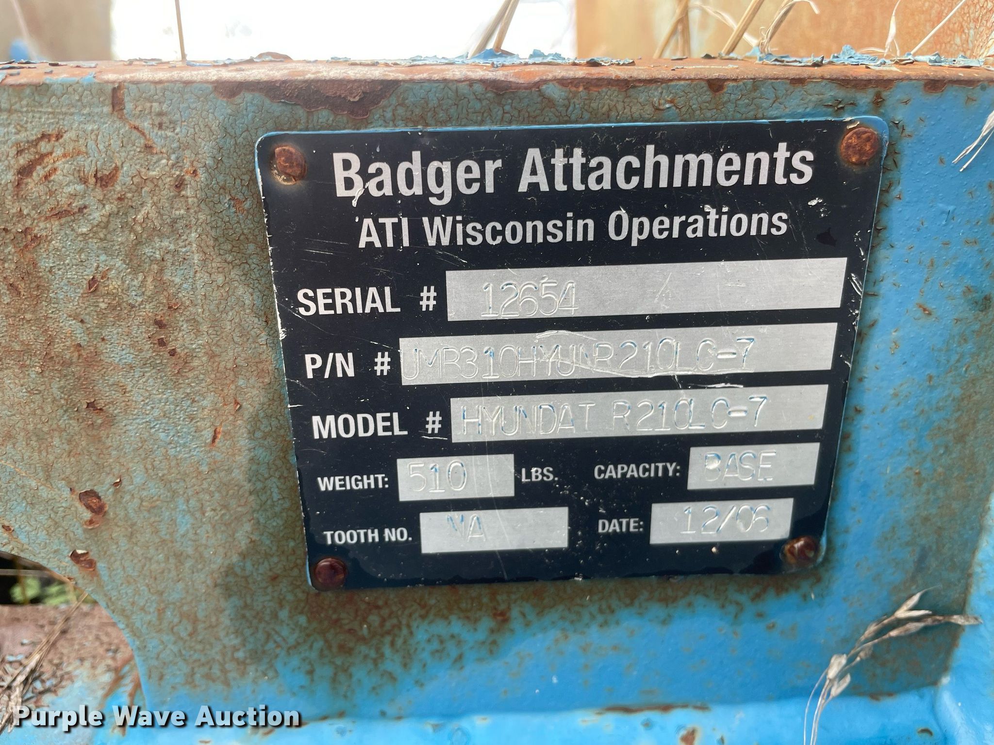 Purple Wave is selling a used Excavator Attach. in Kansas. This item is a (2) excavator plates with the following: 2006 Badger Hyundai R210L0-7, Serial: 12654, One unknown make