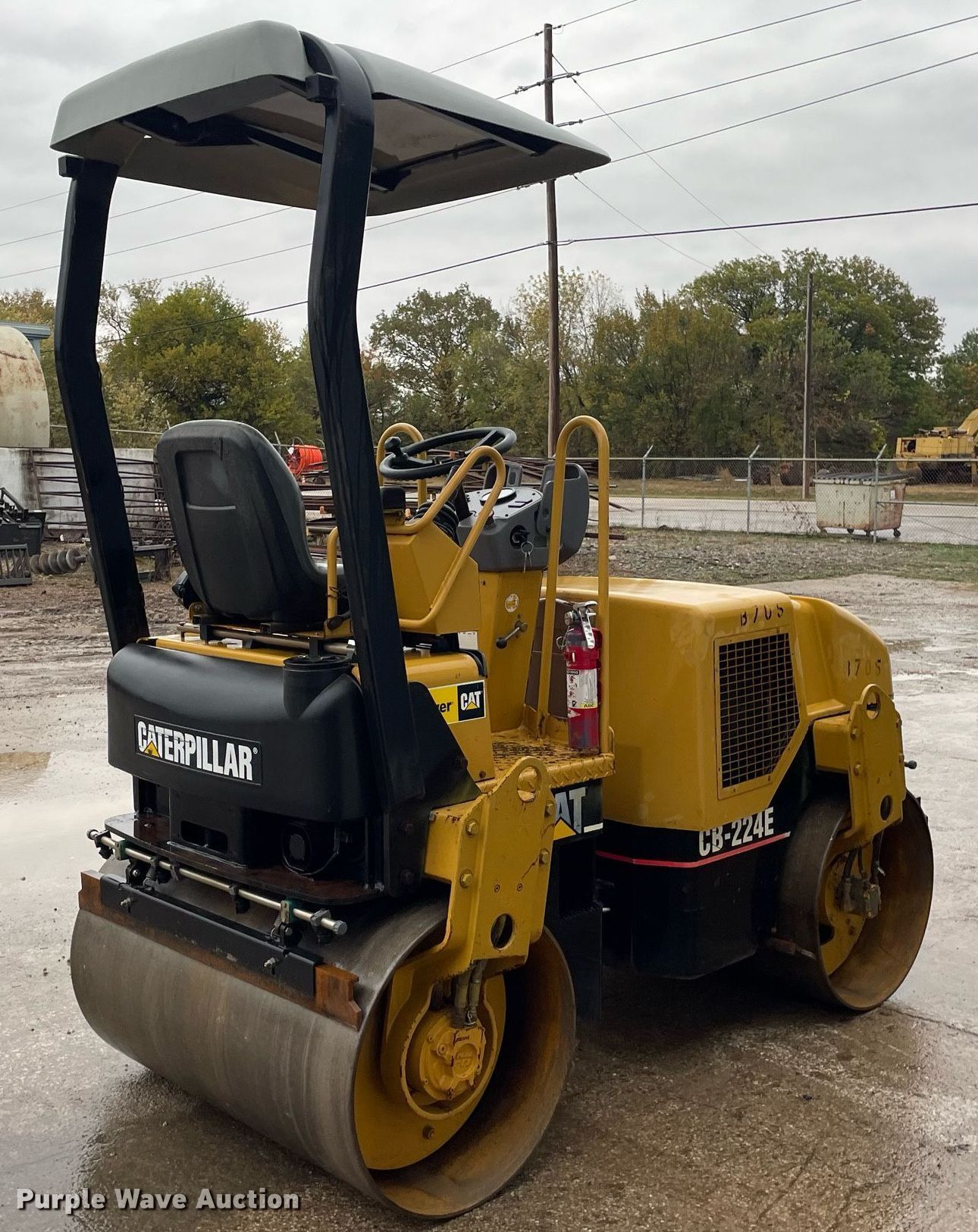 Purple Wave is selling a used Double Drum Roller Compactor in Kansas. This item is a 2005 Caterpillar CB-224E double drum vibratory roller with the following: Hours: 1,561 on meter, Serial: CATCB224V22400736, Unit #: B-0705