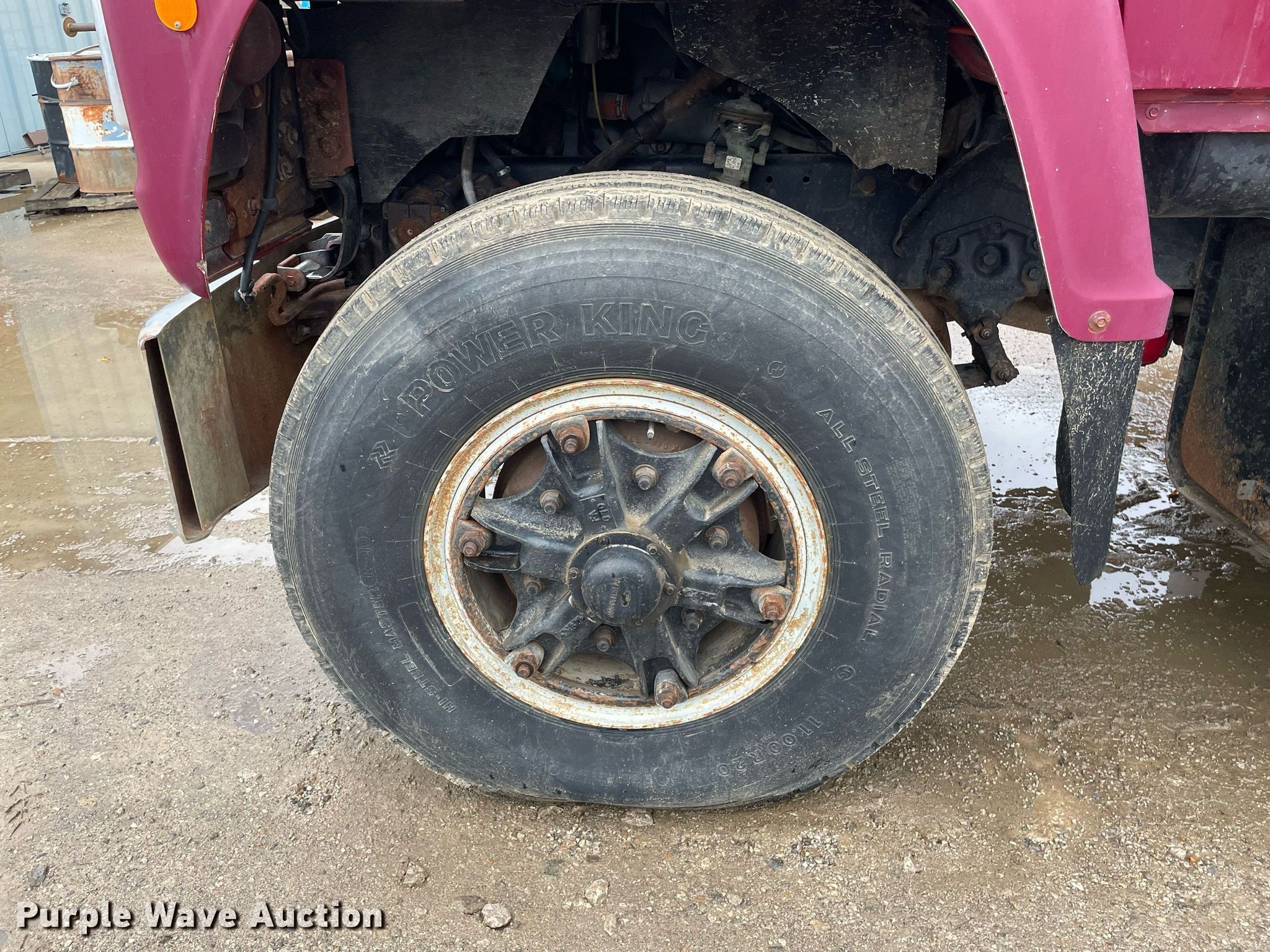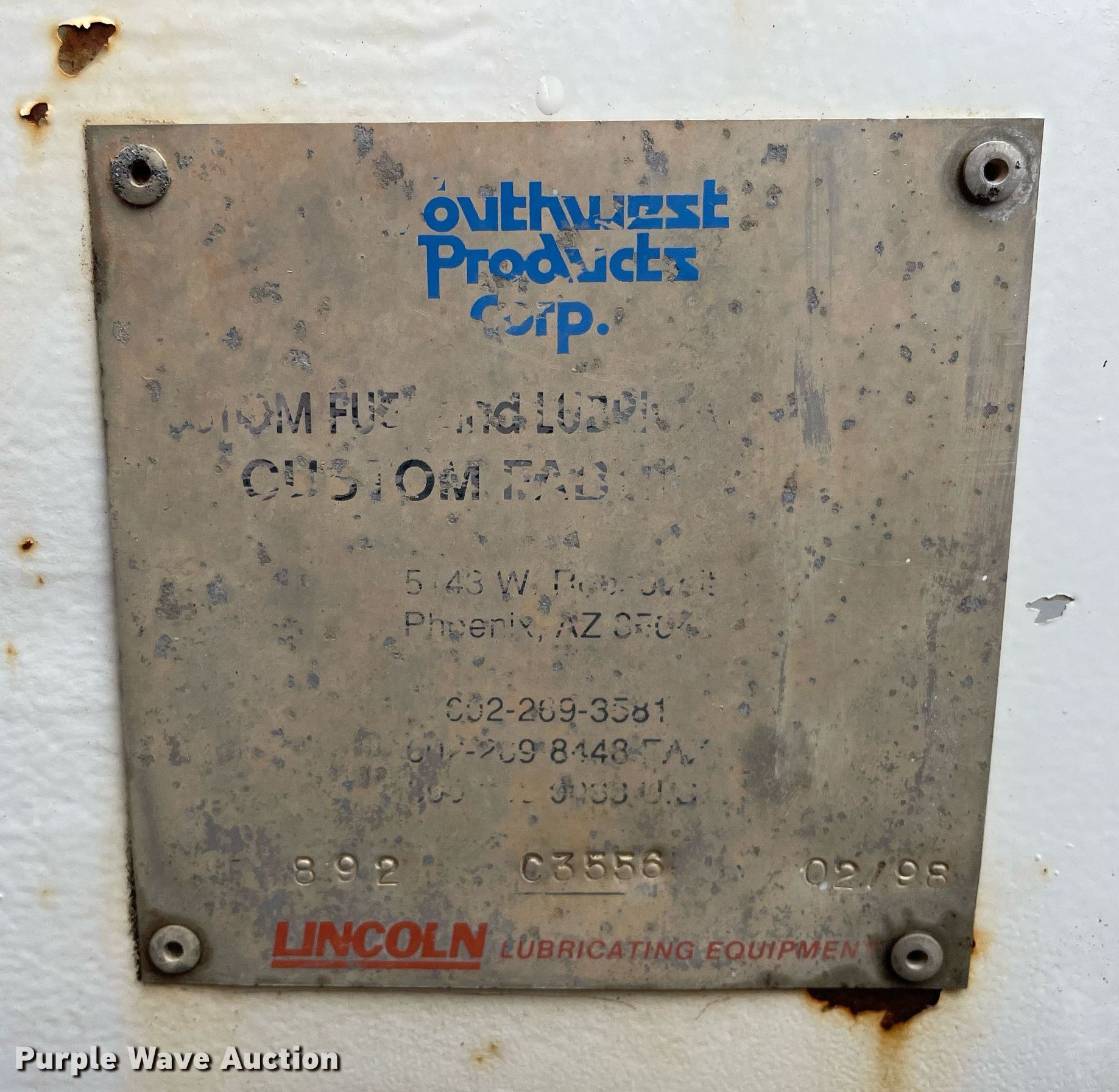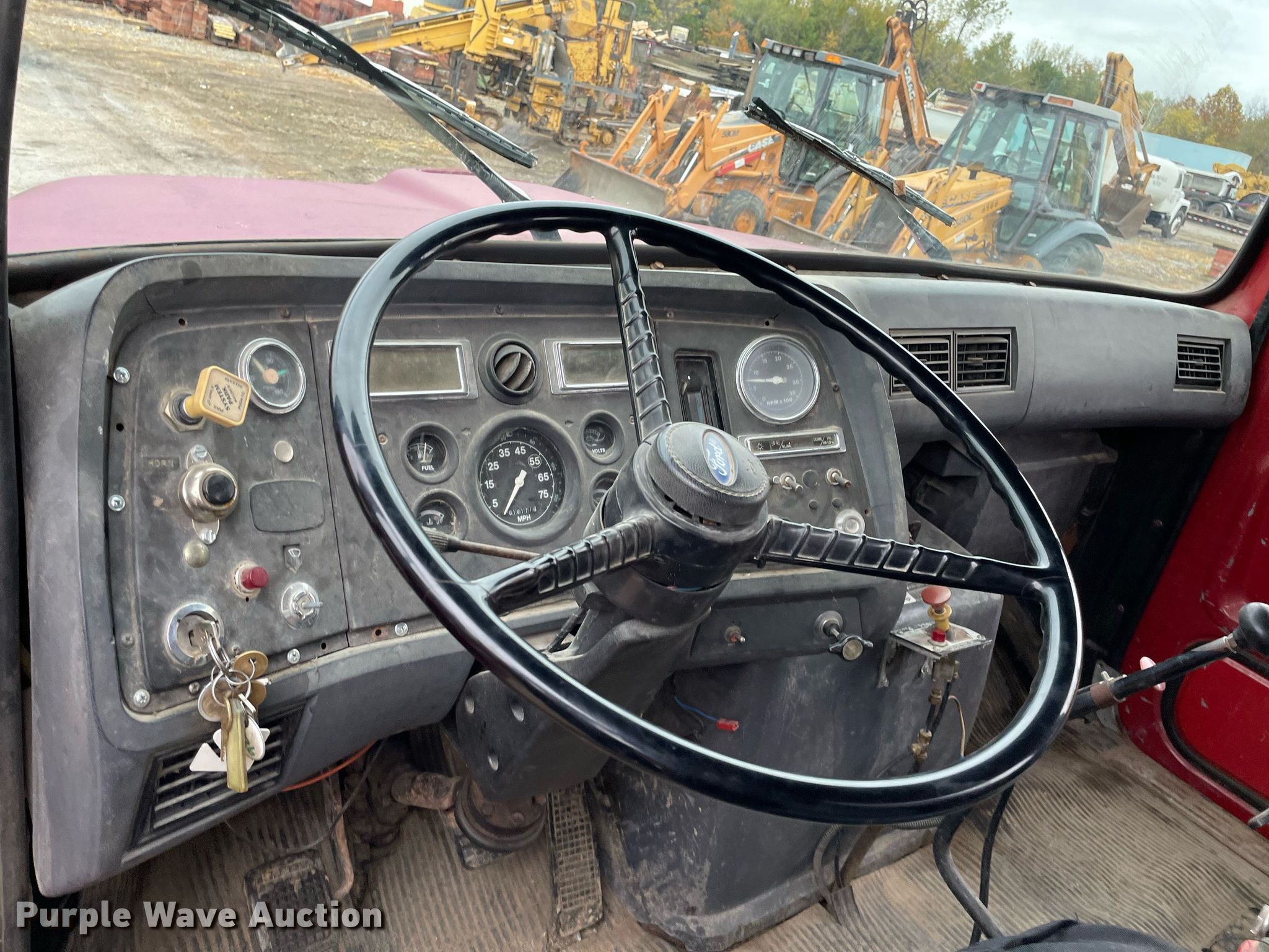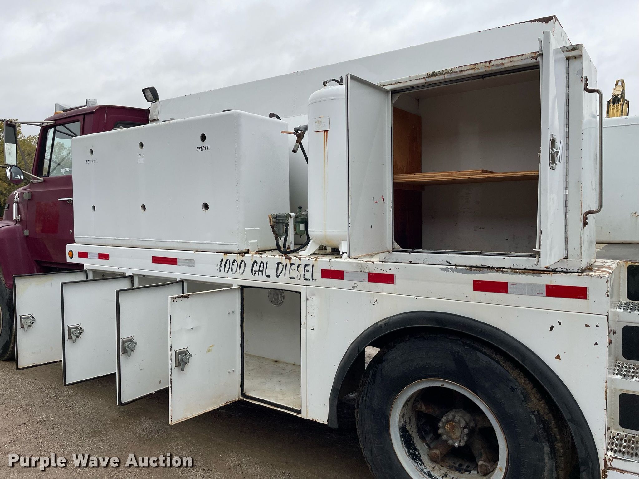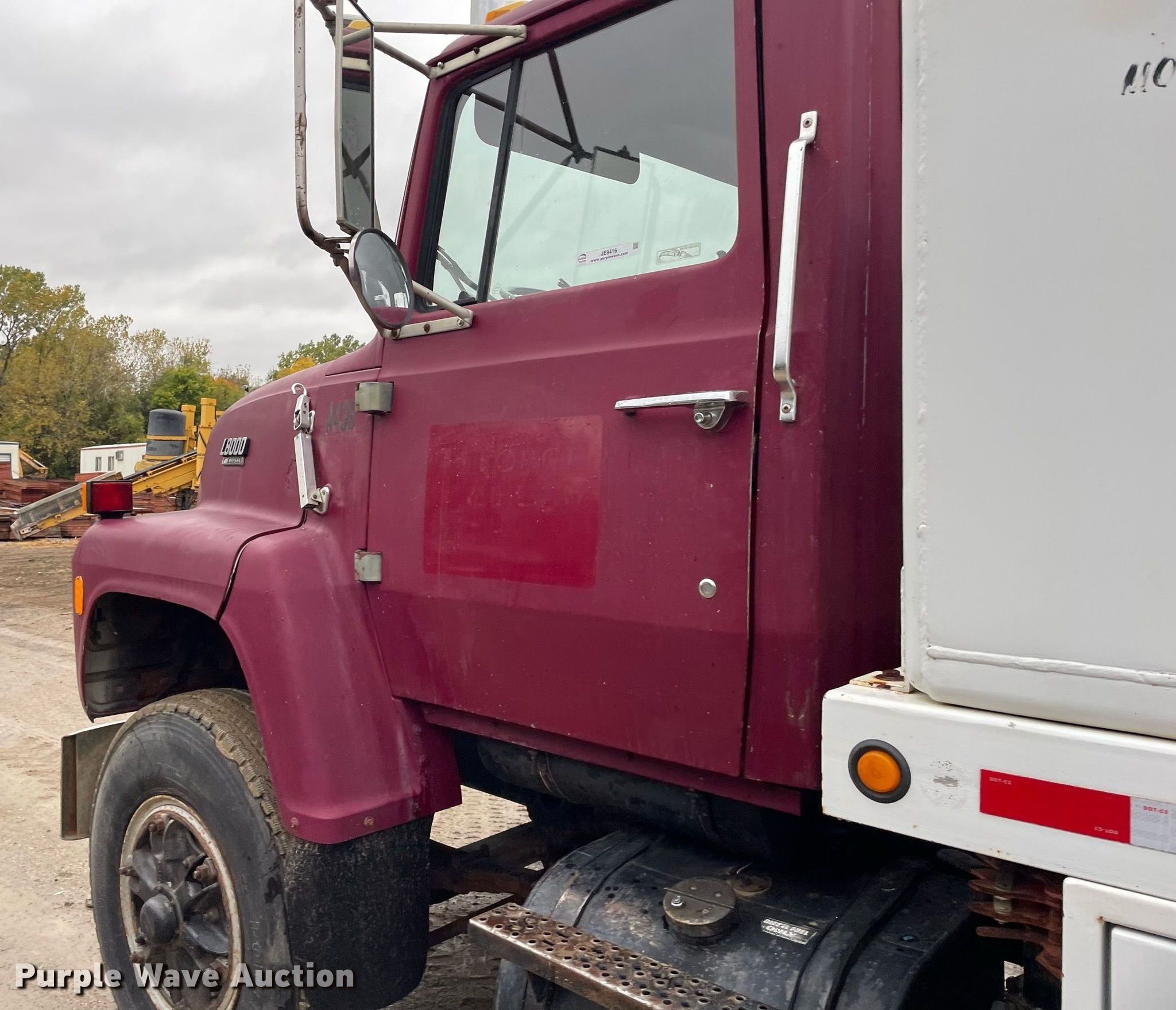 1990 Ford L8000 fuel / lube truck. Miles: 16,178 on odometer, VIN: 1FDXR82A1LVA09530, Unit #: A-436. Engine Displacement: 7.8L, Cylinders: 6, Fuel type: Diesel. Transmission Manual, Speed: 5, plus 2. Chassis Axles: Single, Suspension: Spring, Brakes: Air, PTO, GVWR: 29,000 lbs. Interior Heat. Features Bed / tank Southwestern Products, 18' 3" L x 96" W, Compartments: 1, Hose reels: 8, Nozzles, Metered pumps: 1, Oil/lube reservoirs Hydraulic fluid, Grease, Motor oil, Used oil, Glendale Welding diesel tank Capacity: 1000 gallon, Air compressor. Tires Front: 11.00R20, Rear: 10.00R20. Kansas title. Title distribution may be delayed up to 14 days from verification of funds. LaForge & Budd Construction Retirement - Open Inspection December 6 - Sales tax exempt. 2020 North 21st Street. Parsons, KS 67357