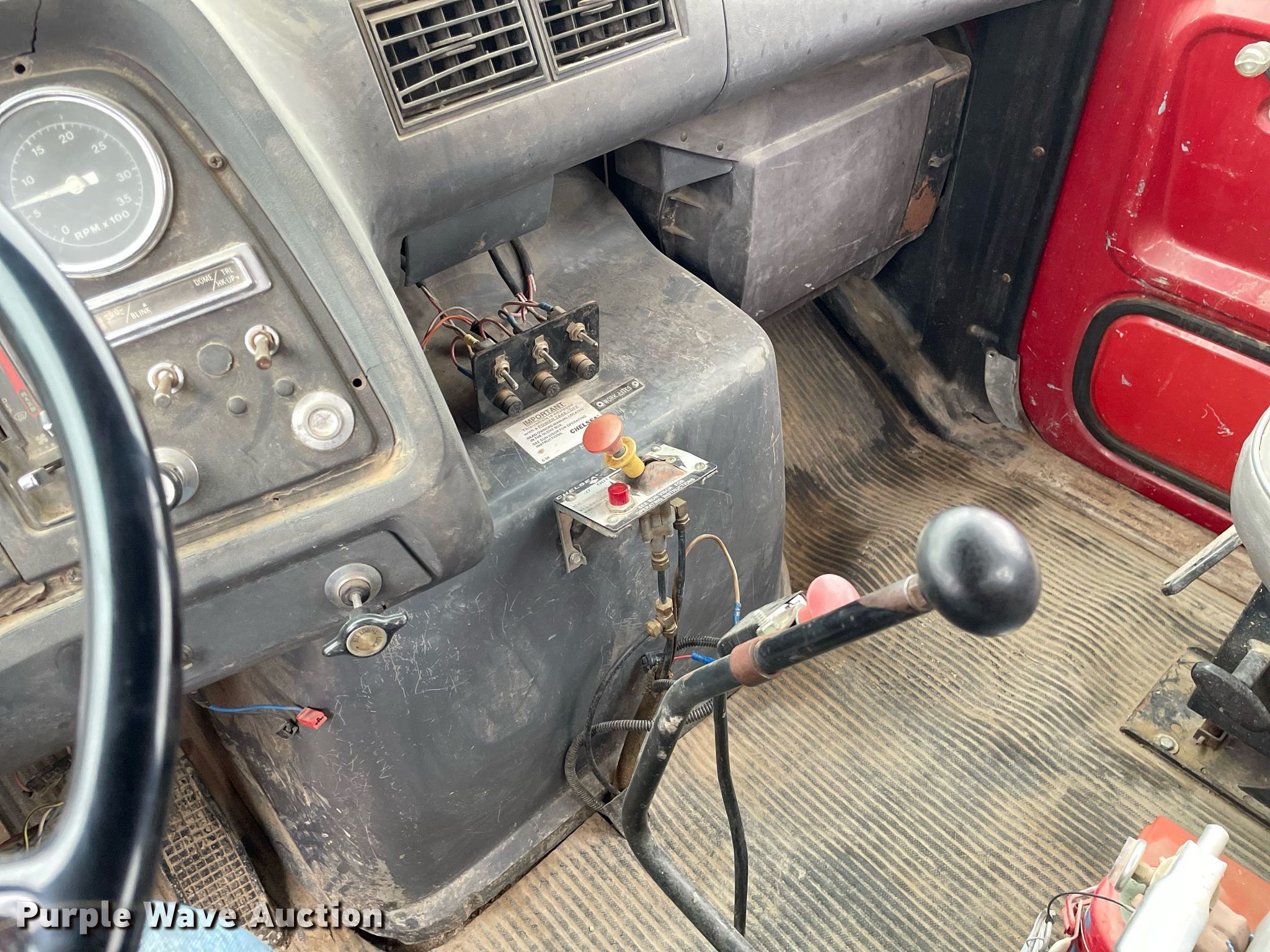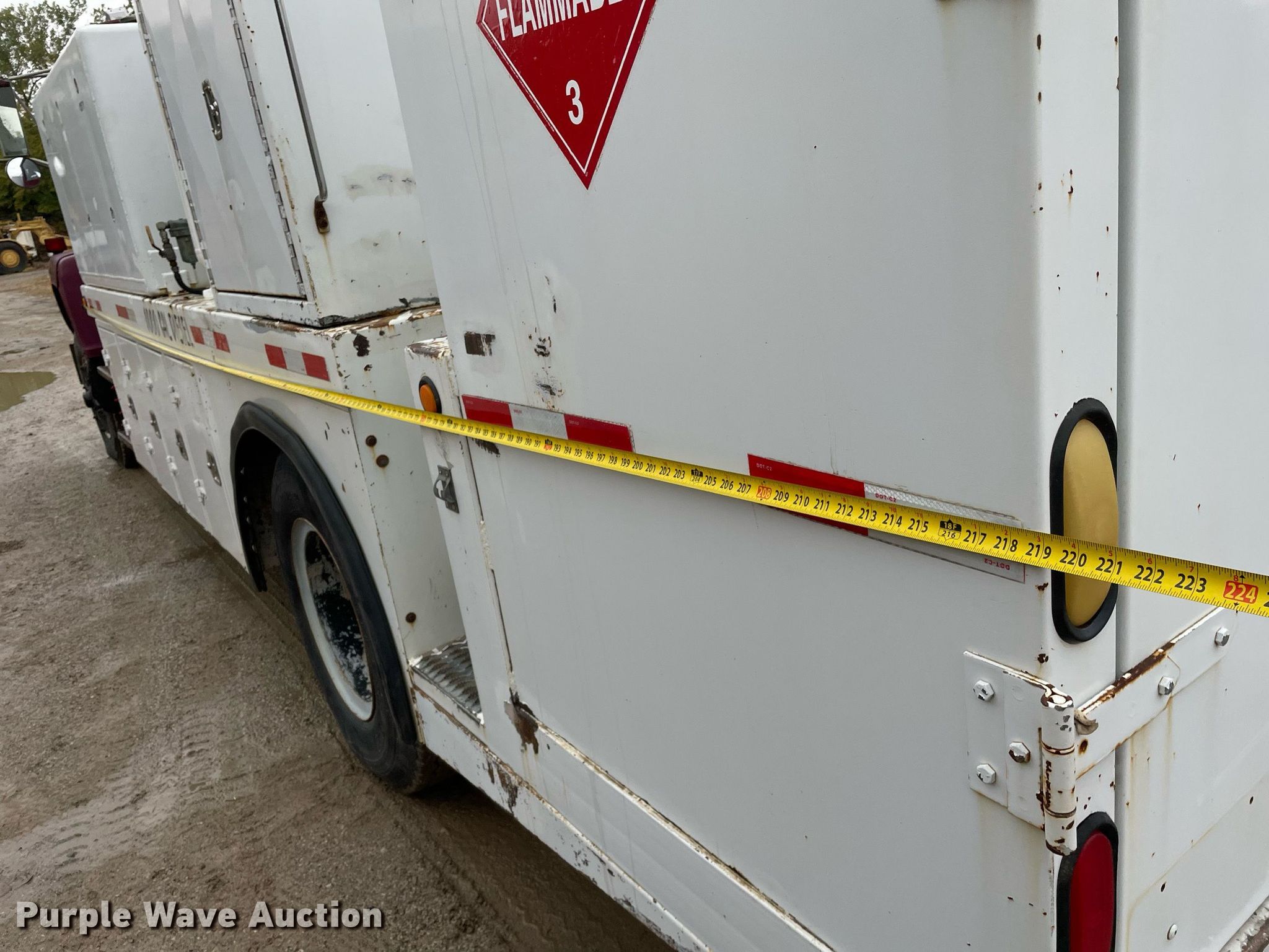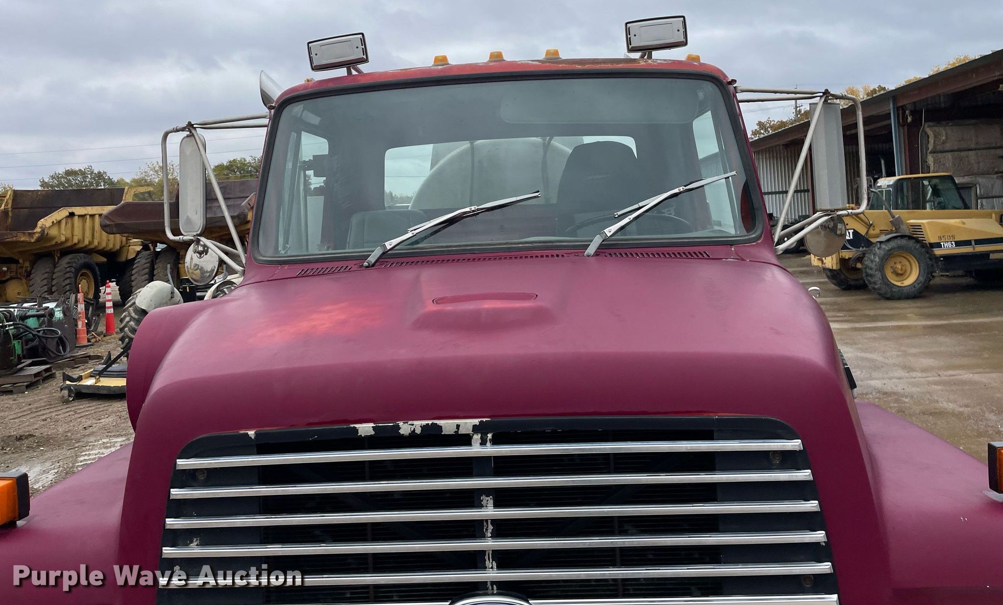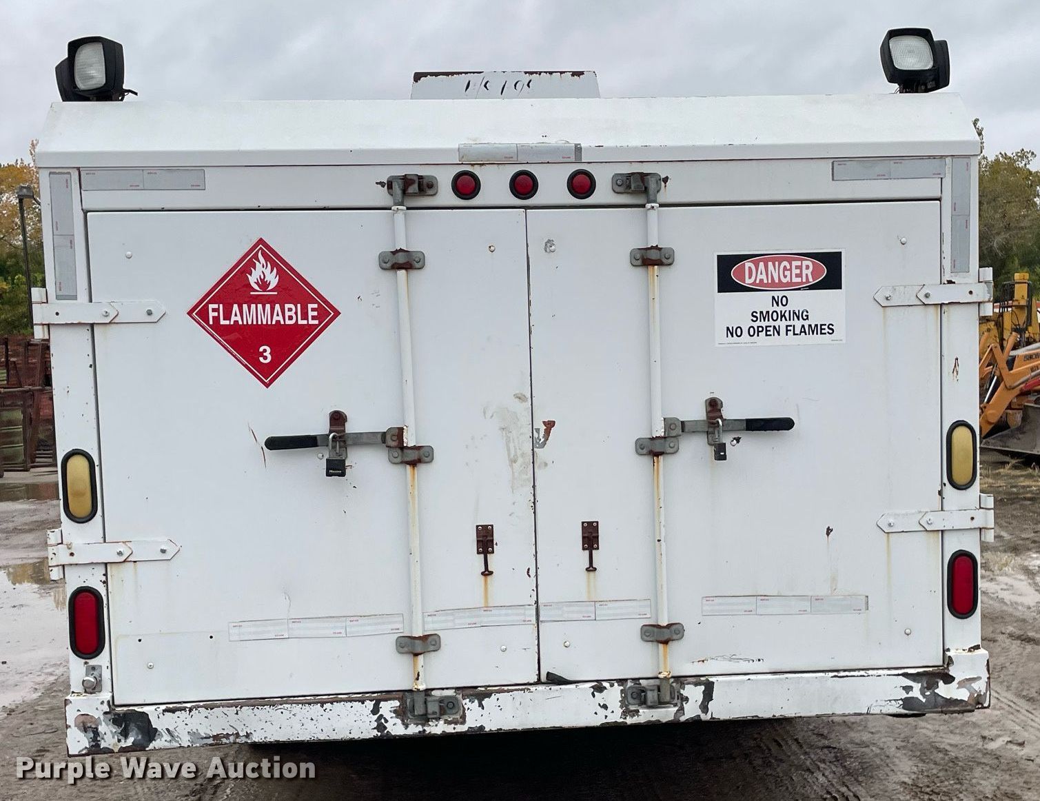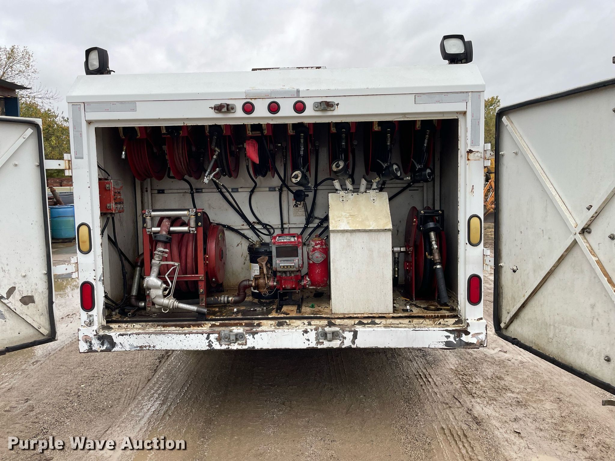 1990 Ford L8000 fuel / lube truck. Miles: 16,178 on odometer, VIN: 1FDXR82A1LVA09530, Unit #: A-436. Engine Displacement: 7.8L, Cylinders: 6, Fuel type: Diesel. Transmission Manual, Speed: 5, plus 2. Chassis Axles: Single, Suspension: Spring, Brakes: Air, PTO, GVWR: 29,000 lbs. Interior Heat. Features Bed / tank Southwestern Products, 18' 3" L x 96" W, Compartments: 1, Hose reels: 8, Nozzles, Metered pumps: 1, Oil/lube reservoirs Hydraulic fluid, Grease, Motor oil, Used oil, Glendale Welding diesel tank Capacity: 1000 gallon, Air compressor. Tires Front: 11.00R20, Rear: 10.00R20. Kansas title. Title distribution may be delayed up to 14 days from verification of funds. LaForge & Budd Construction Retirement - Open Inspection December 6 - Sales tax exempt. 2020 North 21st Street. Parsons, KS 67357