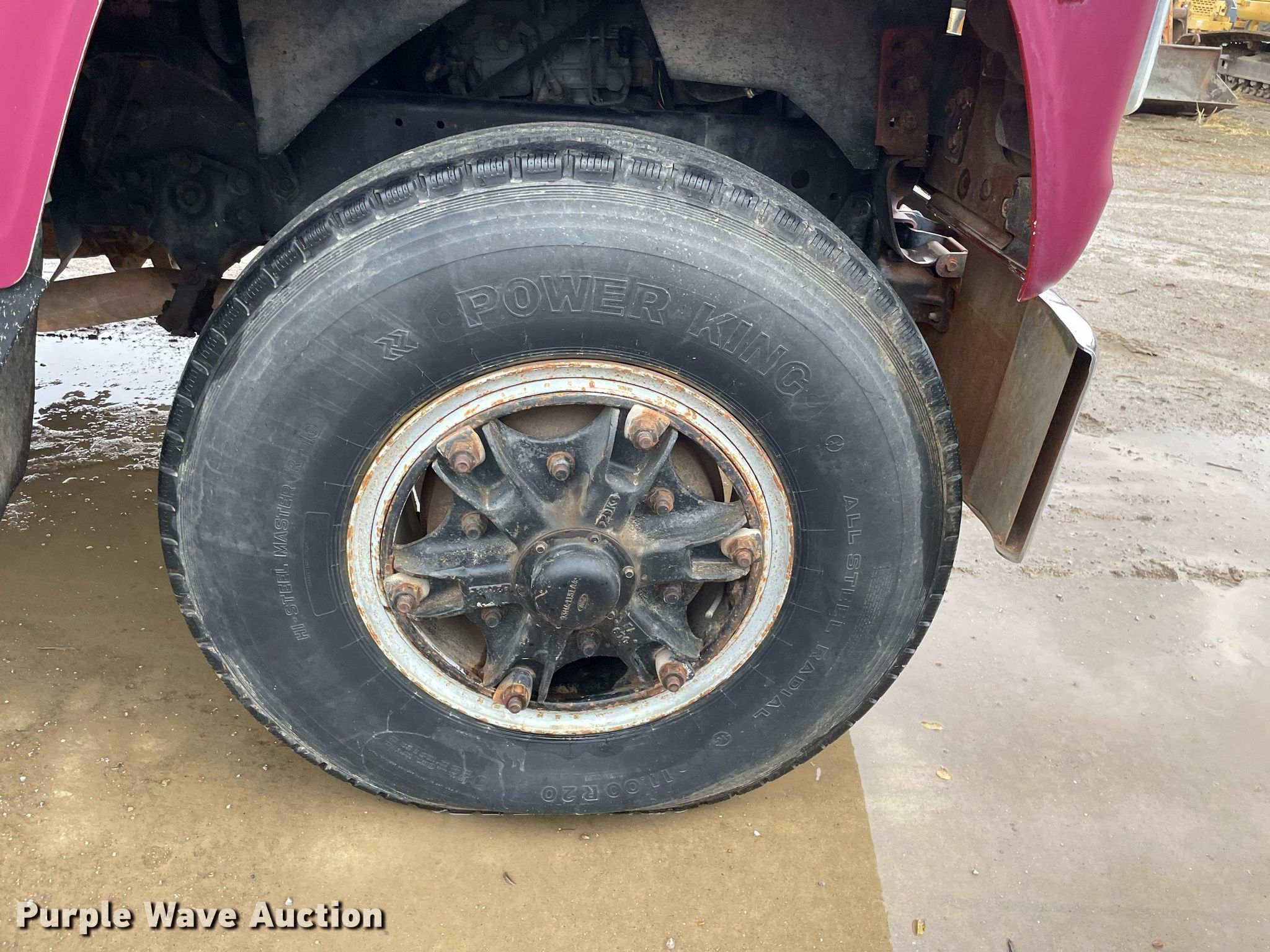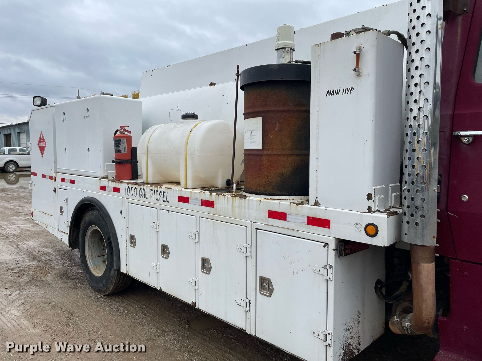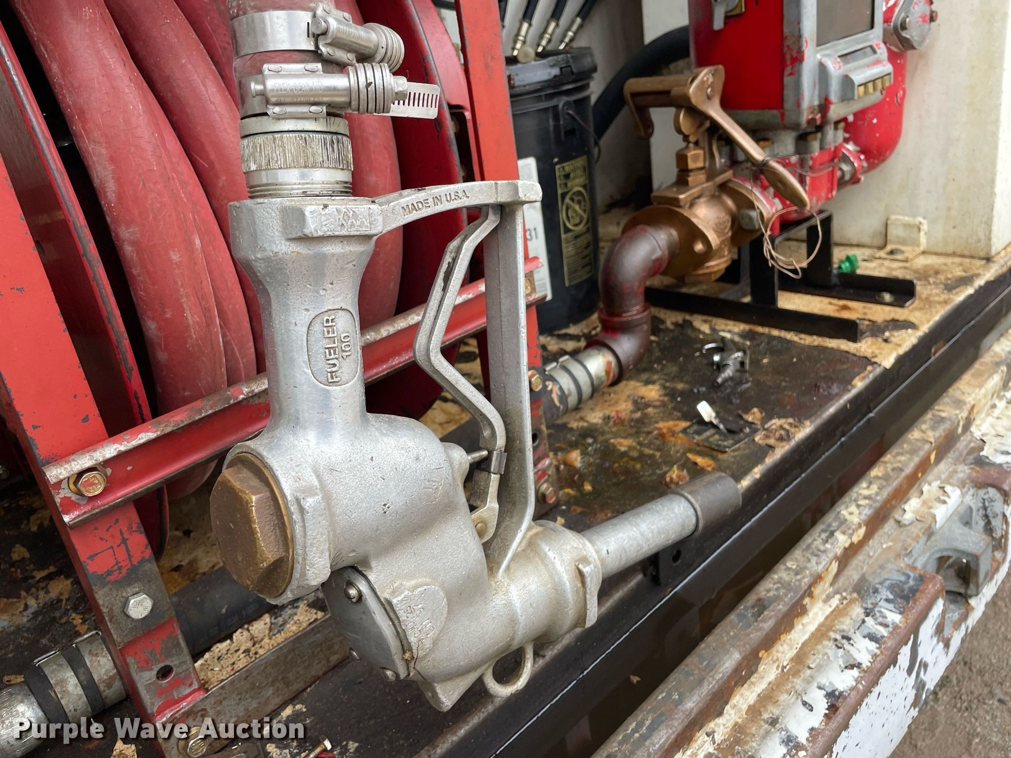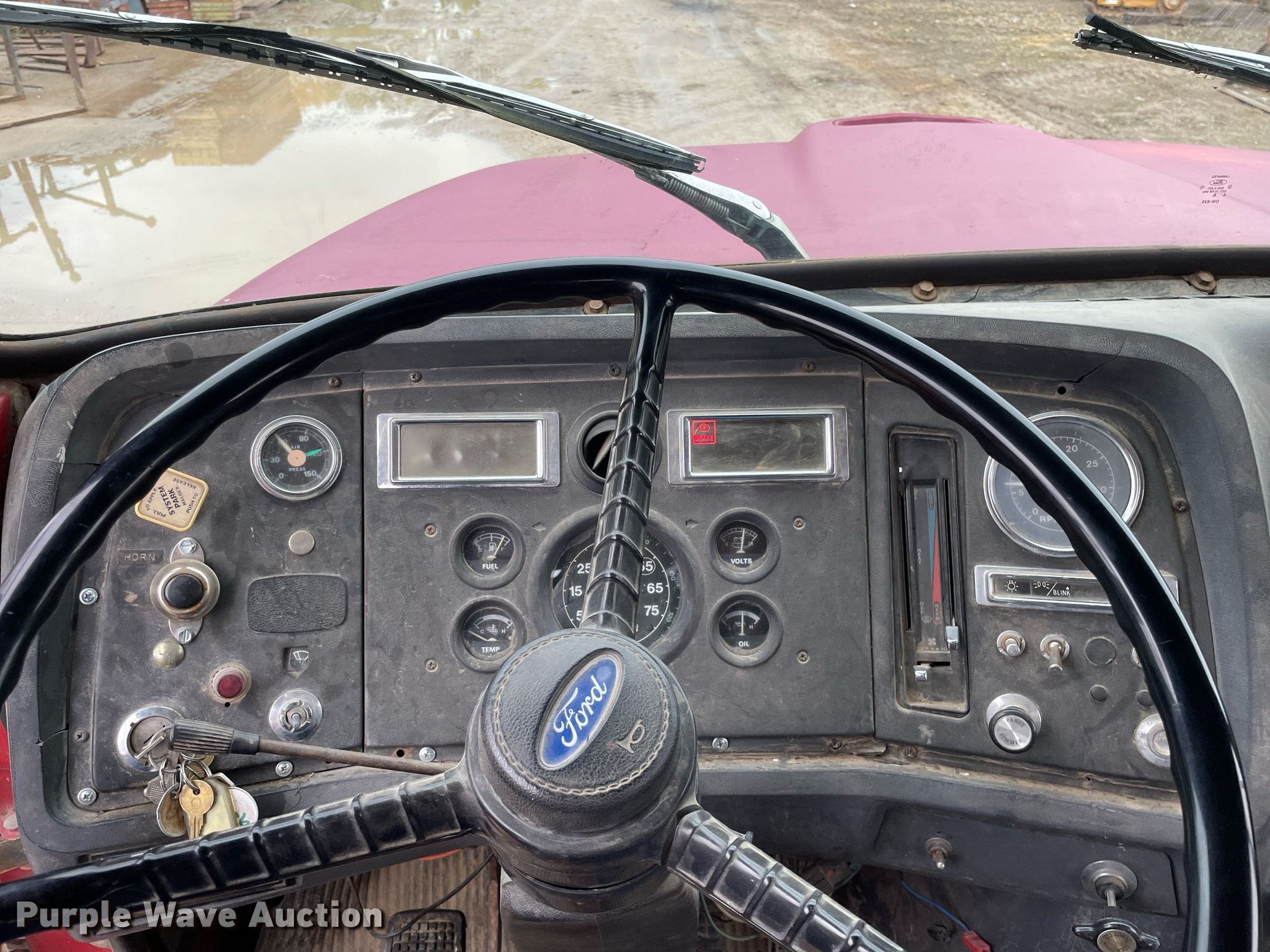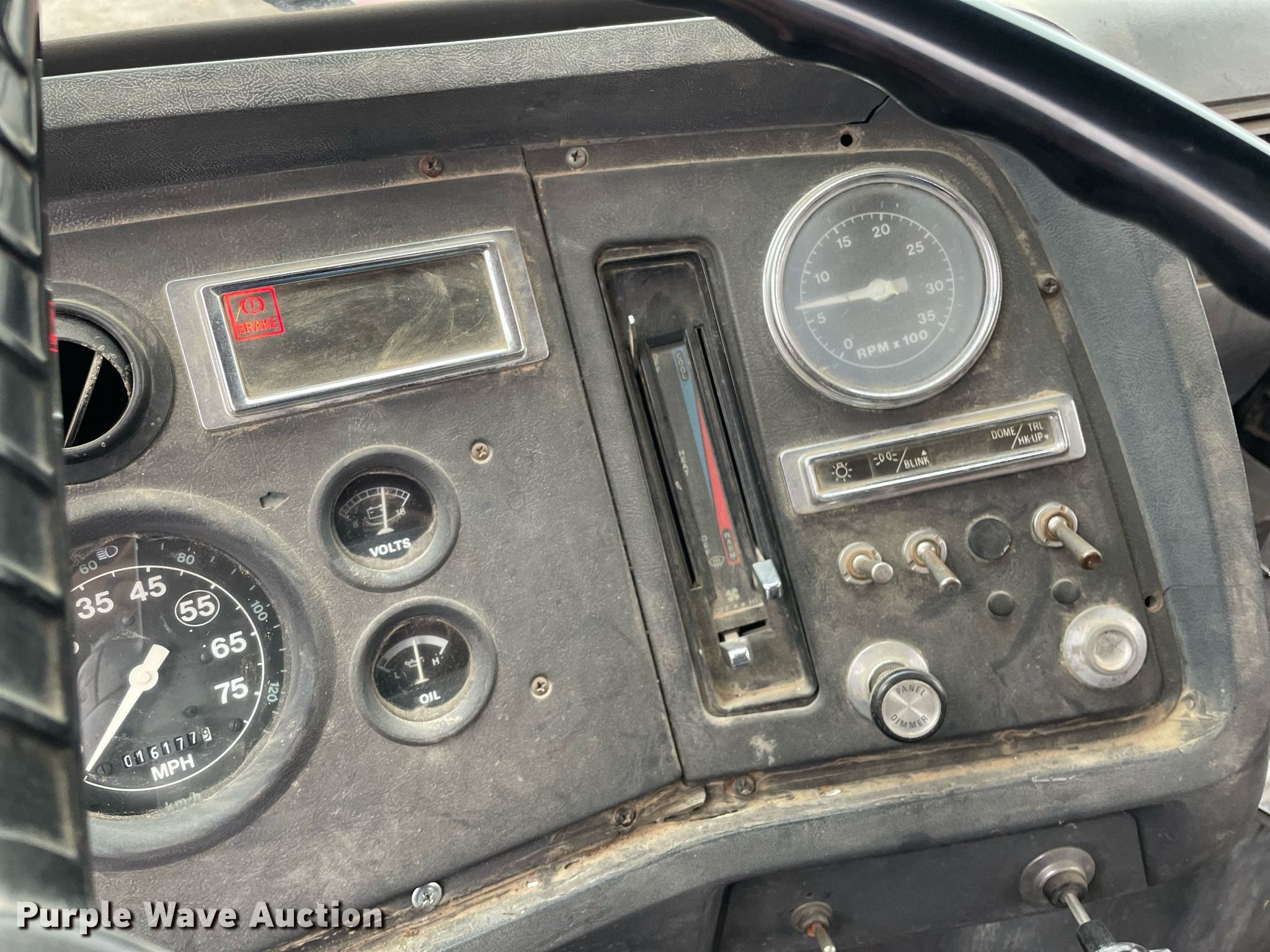1990 Ford L8000 fuel / lube truck. Miles: 16,178 on odometer, VIN: 1FDXR82A1LVA09530, Unit #: A-436. Engine Displacement: 7.8L, Cylinders: 6, Fuel type: Diesel. Transmission Manual, Speed: 5, plus 2. Chassis Axles: Single, Suspension: Spring, Brakes: Air, PTO, GVWR: 29,000 lbs. Interior Heat. Features Bed / tank Southwestern Products, 18' 3" L x 96" W, Compartments: 1, Hose reels: 8, Nozzles, Metered pumps: 1, Oil/lube reservoirs Hydraulic fluid, Grease, Motor oil, Used oil, Glendale Welding diesel tank Capacity: 1000 gallon, Air compressor. Tires Front: 11.00R20, Rear: 10.00R20. Kansas title. Title distribution may be delayed up to 14 days from verification of funds. LaForge & Budd Construction Retirement - Open Inspection December 6 - Sales tax exempt. 2020 North 21st Street. Parsons, KS 67357