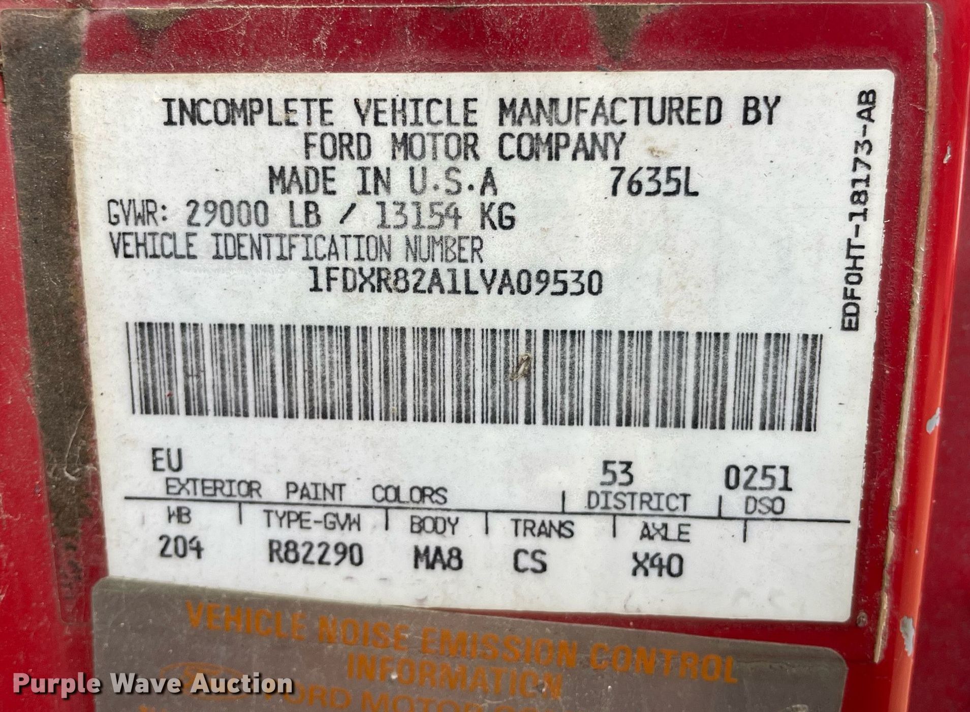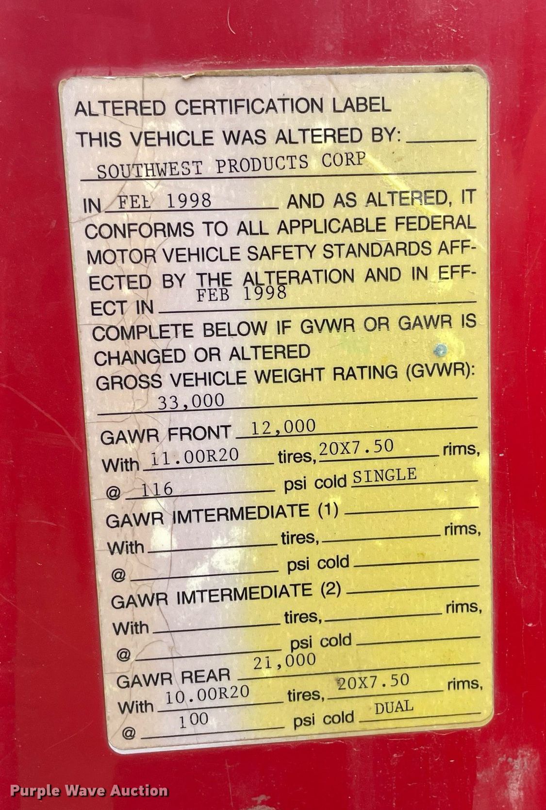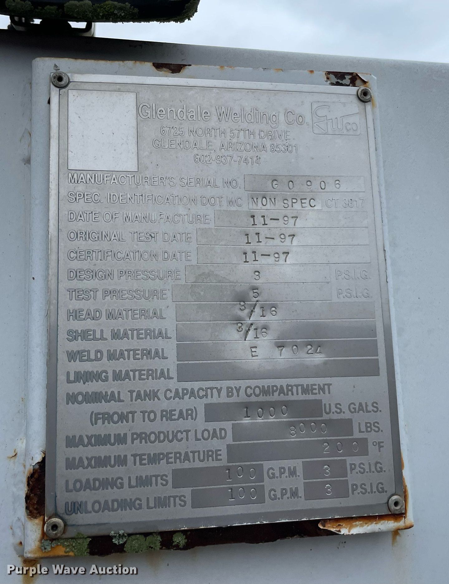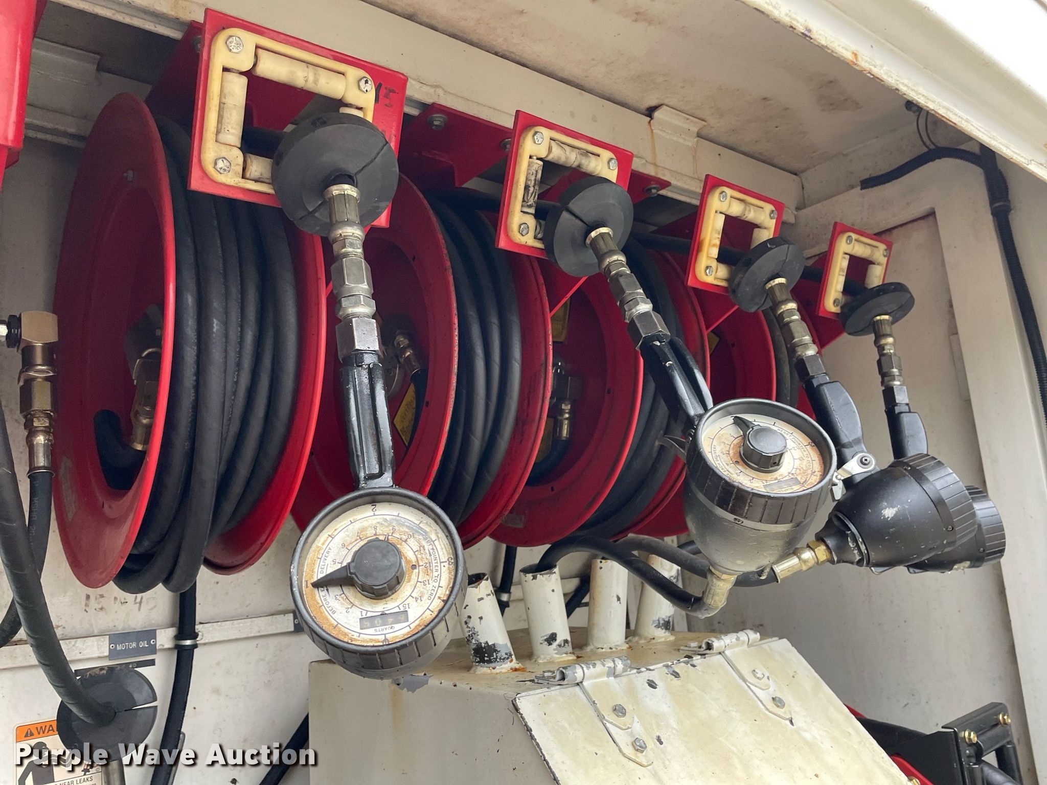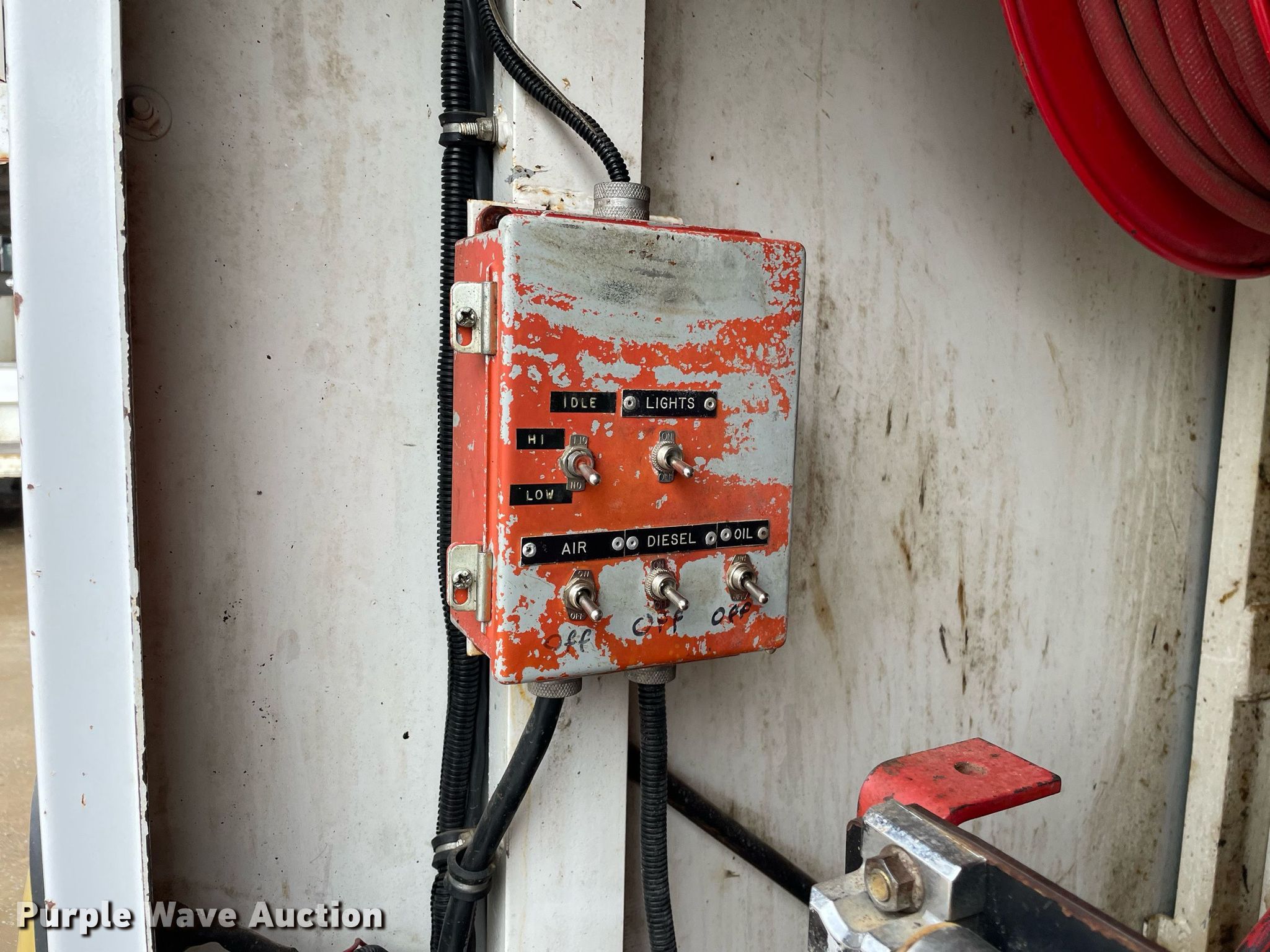 1990 Ford L8000 fuel / lube truck. Miles: 16,178 on odometer, VIN: 1FDXR82A1LVA09530, Unit #: A-436. Engine Displacement: 7.8L, Cylinders: 6, Fuel type: Diesel. Transmission Manual, Speed: 5, plus 2. Chassis Axles: Single, Suspension: Spring, Brakes: Air, PTO, GVWR: 29,000 lbs. Interior Heat. Features Bed / tank Southwestern Products, 18' 3" L x 96" W, Compartments: 1, Hose reels: 8, Nozzles, Metered pumps: 1, Oil/lube reservoirs Hydraulic fluid, Grease, Motor oil, Used oil, Glendale Welding diesel tank Capacity: 1000 gallon, Air compressor. Tires Front: 11.00R20, Rear: 10.00R20. Kansas title. Title distribution may be delayed up to 14 days from verification of funds. LaForge & Budd Construction Retirement - Open Inspection December 6 - Sales tax exempt. 2020 North 21st Street. Parsons, KS 67357
