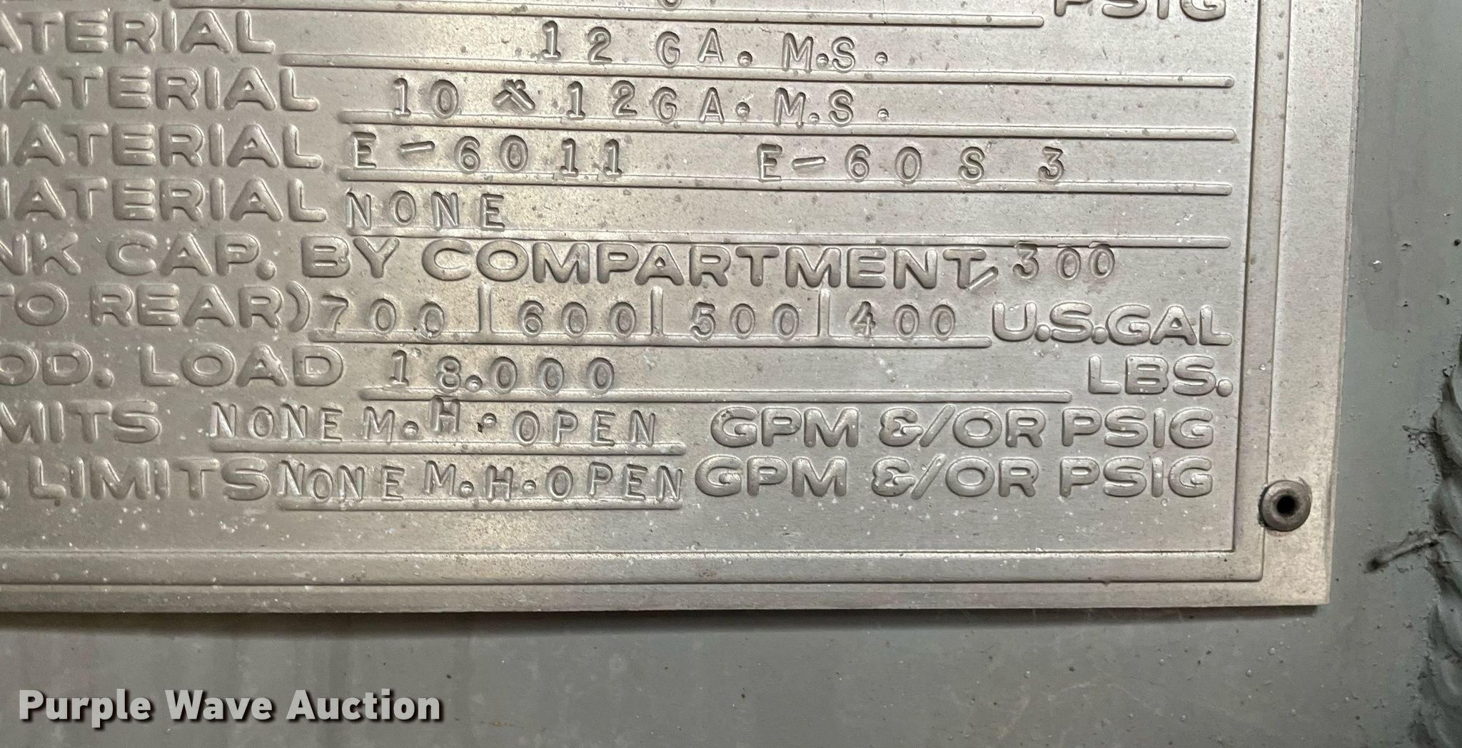 1987 Ford F7000 fuel truck. Miles: 183,964 on odometer, VIN: 1FDNK87U0HVA34764, Unit #: A-0414. Engine Caterpillar 3208, Cylinders: 8, Fuel type: Diesel. Transmission Manual, Speed: 5, plus 2. Chassis Axles: Single, Suspension: Spring, Brakes: Air, GVWR: 25,100 lbs. Interior Heat. Features Bed / tank Quality Progress 80XT, Capacity: 700 gallons, 17' 8" L x 95" W, Compartments: 5, Hose reels: 2, Nozzles, Metered pumps: 2 Make: Neptune.. Tires Size: 10.00-20. Kansas title. Title distribution may be delayed up to 14 days from verification of funds. LaForge & Budd Construction Retirement - Open Inspection December 6 - Sales tax exempt. 2020 North 21st Street. Parsons, KS 67357