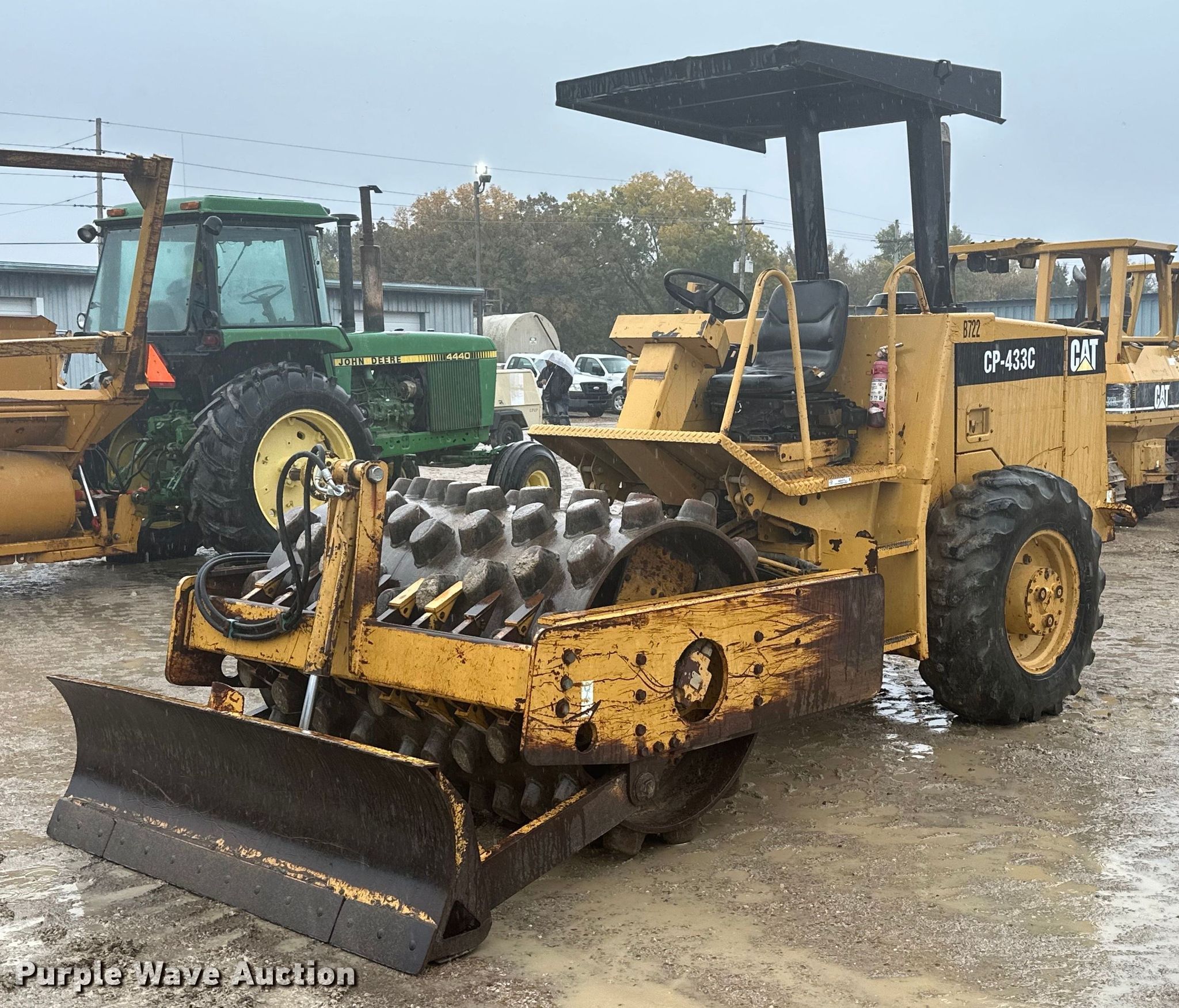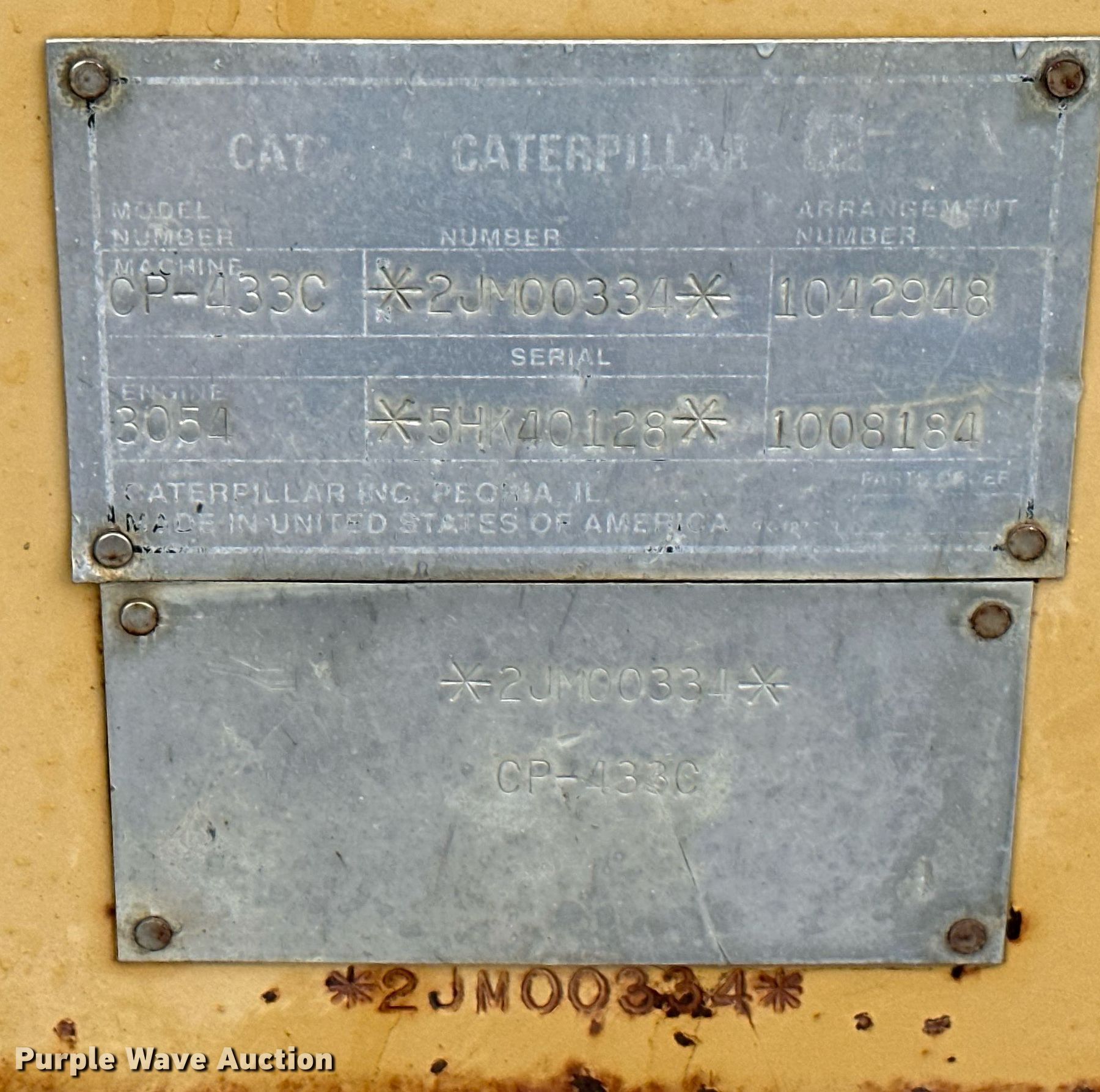 Purple Wave is selling a used Single Drum Roller Compactor in Kansas. This item is a 1996 Caterpillar CP-433C single drum vibratory roller with the following: Hours: 3,456 on meter, Serial: 2JM00334, Unit #: B722