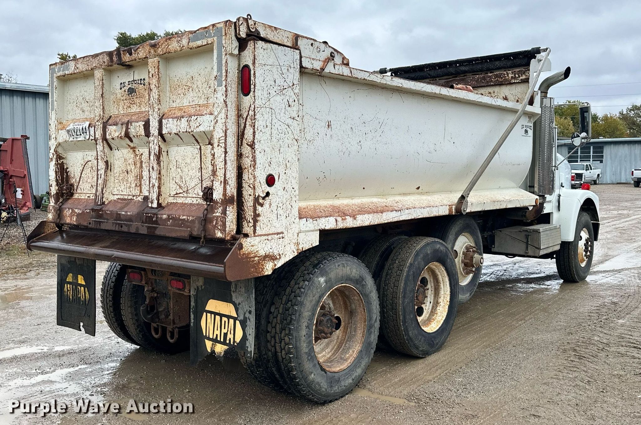 1999 Freightliner FLD dump truck. Miles: 196,283 on odometer, Hours: 2,305 on meter, VIN: 1FUYFEDB6XPB41744, Unit #: A-0437. Engine Caterpillar C10, Displacement: 10.3L, Cylinders: 6, Fuel type: Diesel. Transmission Automated manual. Chassis Axles: Triple, Pusher axle, Differential lock: Inter-axle, Suspension: Air, Brakes: Air, PTO, GVWR: 58,000 lbs. Interior AC, Heat, Heated mirrors. Features Dump bed 16' x 8' W x 2" W, Side height: 46", Bed type: Steel, Roll tarp, Ram: Single , End gate: Air operated. Tires Front: 315/80R22.5, Rear: 11R24.5, Lift axle: 11R22.5.5. Kansas title. Title distribution may be delayed up to 14 days from verification of funds. LaForge & Budd Construction Retirement - Open Inspection December 6 - Sales tax exempt. 2020 North 21st Street. Parsons, KS 67357