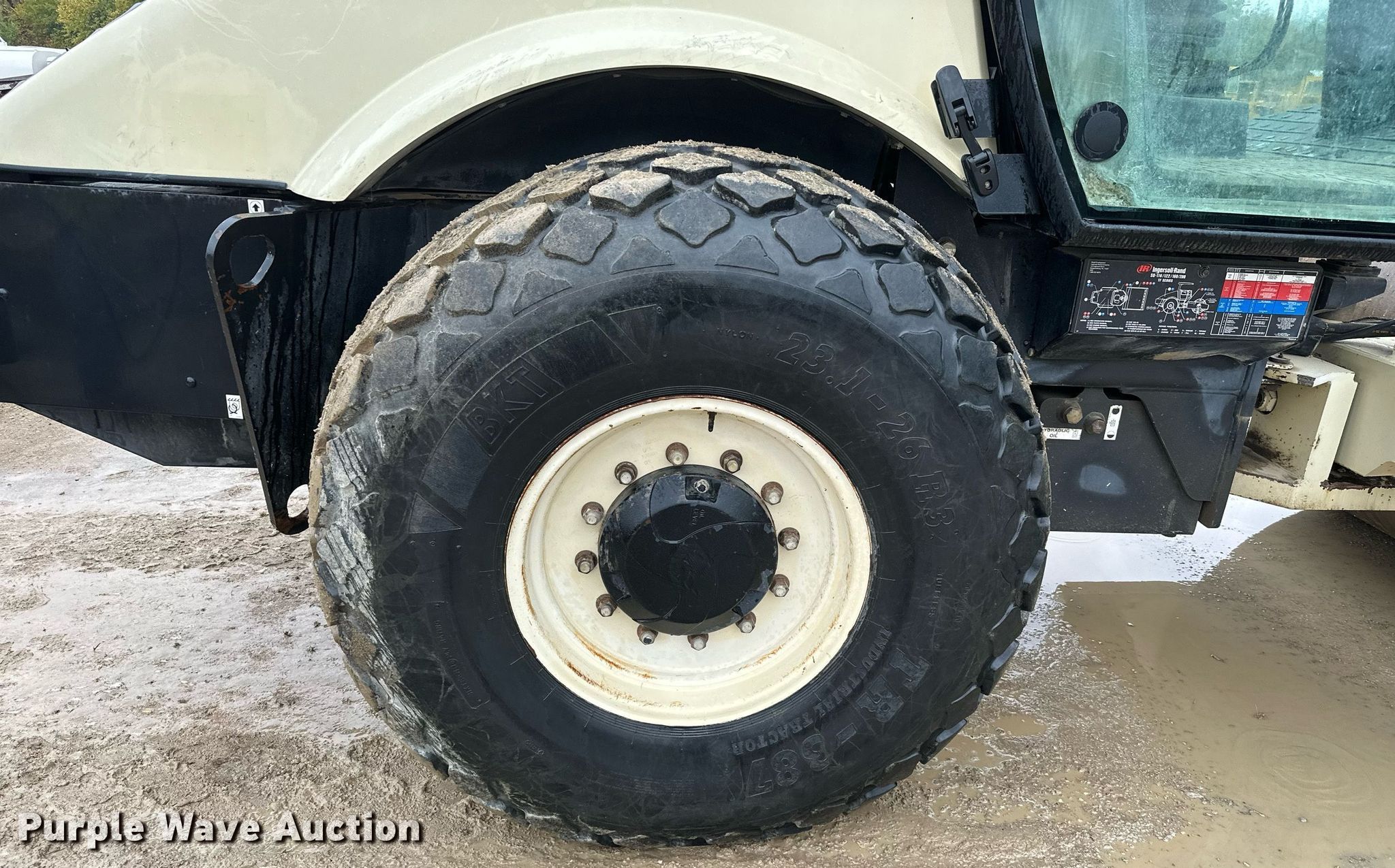 2007 Ingersoll Rand SD-160DX single drum vibratory roller. Hours: 881 on meter, Serial: 193147, Unit #: B-0725. Engine Cylinders: 6, Fuel type: Diesel. Transmission Hydrostatic. Operators station Enclosed cab, AC, Heat. Features Drum: Smooth, Vibratory system: Single, Front drum Width: 84", Diameter: 60". Tires Size: 23.1-26. LaForge & Budd Construction Retirement - Open Inspection December 6 - Sales tax exempt. 2020 North 21st Street. Parsons, KS 67357