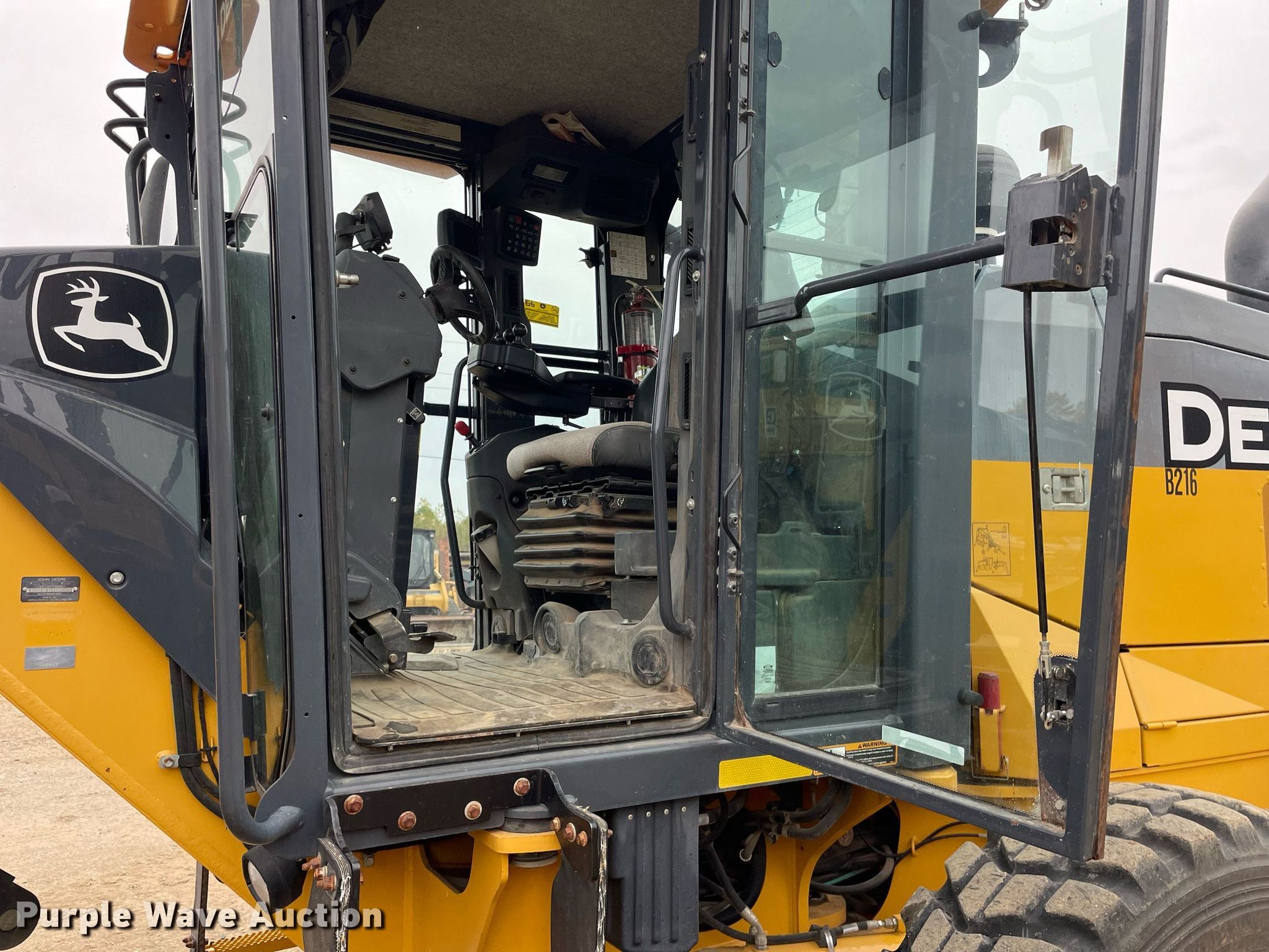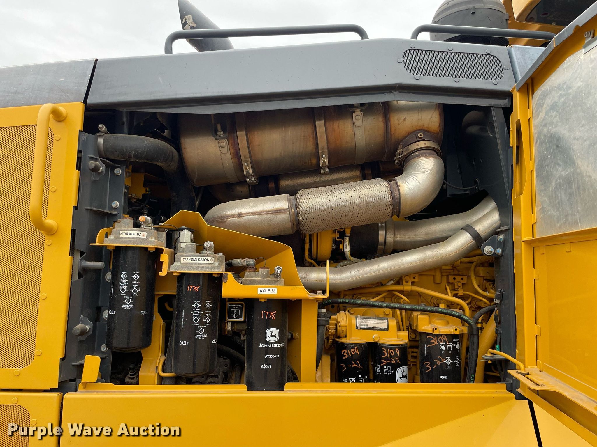 2015 John Deere 672GP motor grader. Hours: 3,249 on meter, Serial: 1DW672GPHFF669685, Unit #: B-0216. Engine Cylinders: 6, Fuel type: Diesel. Transmission Powershift, 8F - 8R. Chassis All wheel drive, Differential lock. Operators station Enclosed cab, Backup camera, Steering: Combination, Hydraulic control valves: 8, Grade control. Features Moldboard: Tip control, Side shift, Moldboard total length: 14', Scarifier Scarifier type: Front-mounted Teeth: 5, Rear ripper Ripper shanks: 5, Scarifier teeth: 7. Tires Size: 14.00R24TG. Notes GPS not included. LaForge & Budd Construction Retirement - Open Inspection December 6 - Sales tax exempt. 2020 North 21st Street. Parsons, KS 67357