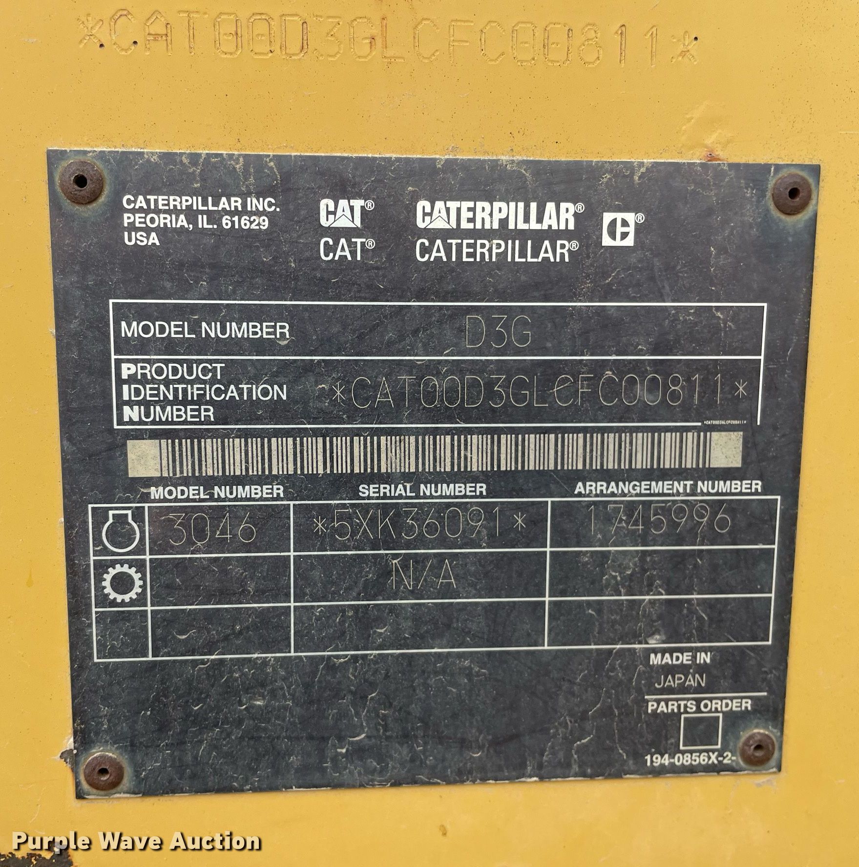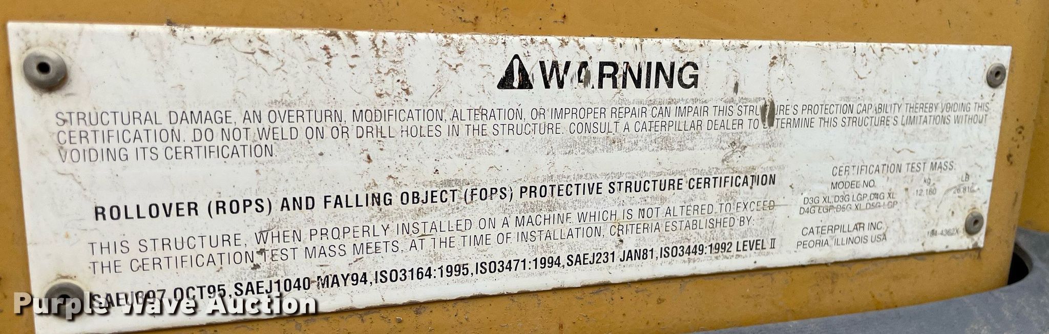 Purple Wave is selling a used Crawler Dozer in Kansas. This item is a 2004 Caterpillar D3GXL dozer with the following: Hours: 3,924 on meter, Serial: CAT00DEGLCFC00811, Unit #: B-0419