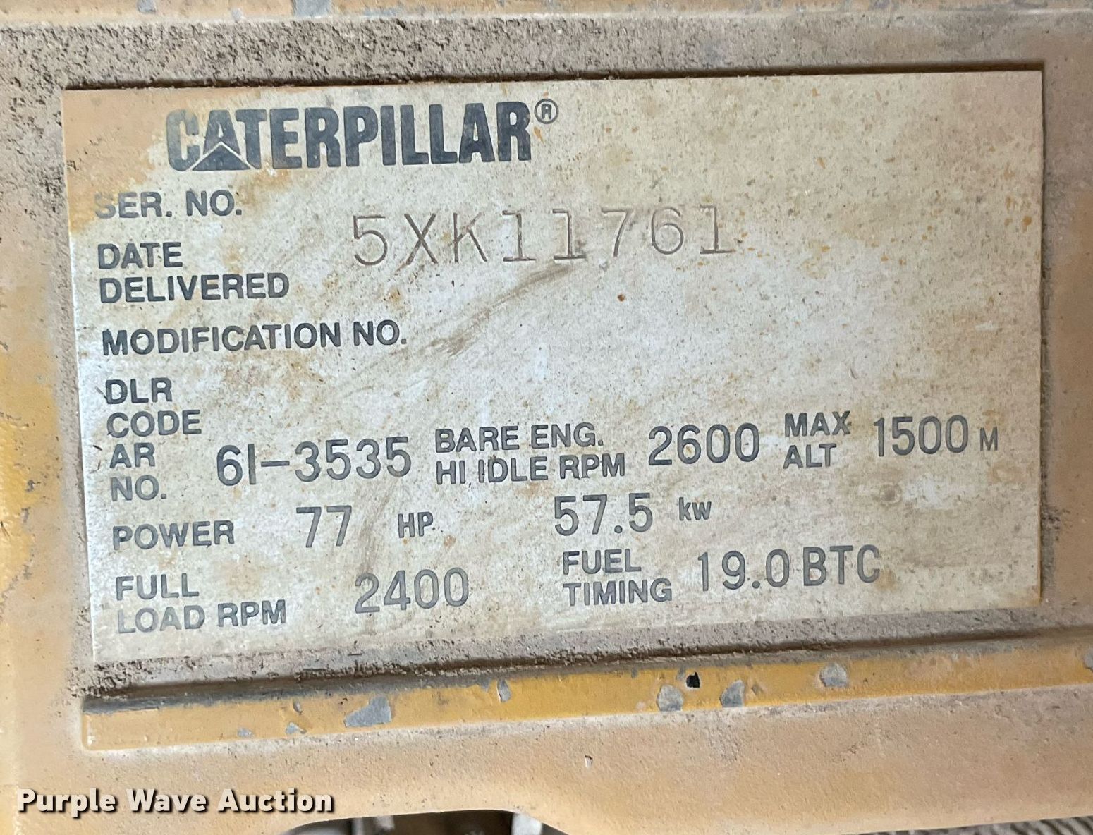 1997 Caterpillar D3C Series III dozer. Hours: 5,488 on meter, Serial: 6SL02323, Unit #: B-0417. Engine Cylinders: 6, Fuel type: Diesel, HP: 77, kW: 57.5. Transmission Powershift, 3F - 3R. Operators station Canopy, Steering: Clutch brake. Features Dozer blade Type: 6-way, Straight, Width: 95'. Tracks Width: 16", Grouser pads: Single, Bottom rollers: 6, Track guards. LaForge & Budd Construction Retirement - Open Inspection December 6 - Sales tax exempt. 2020 North 21st Street. Parsons, KS 67357