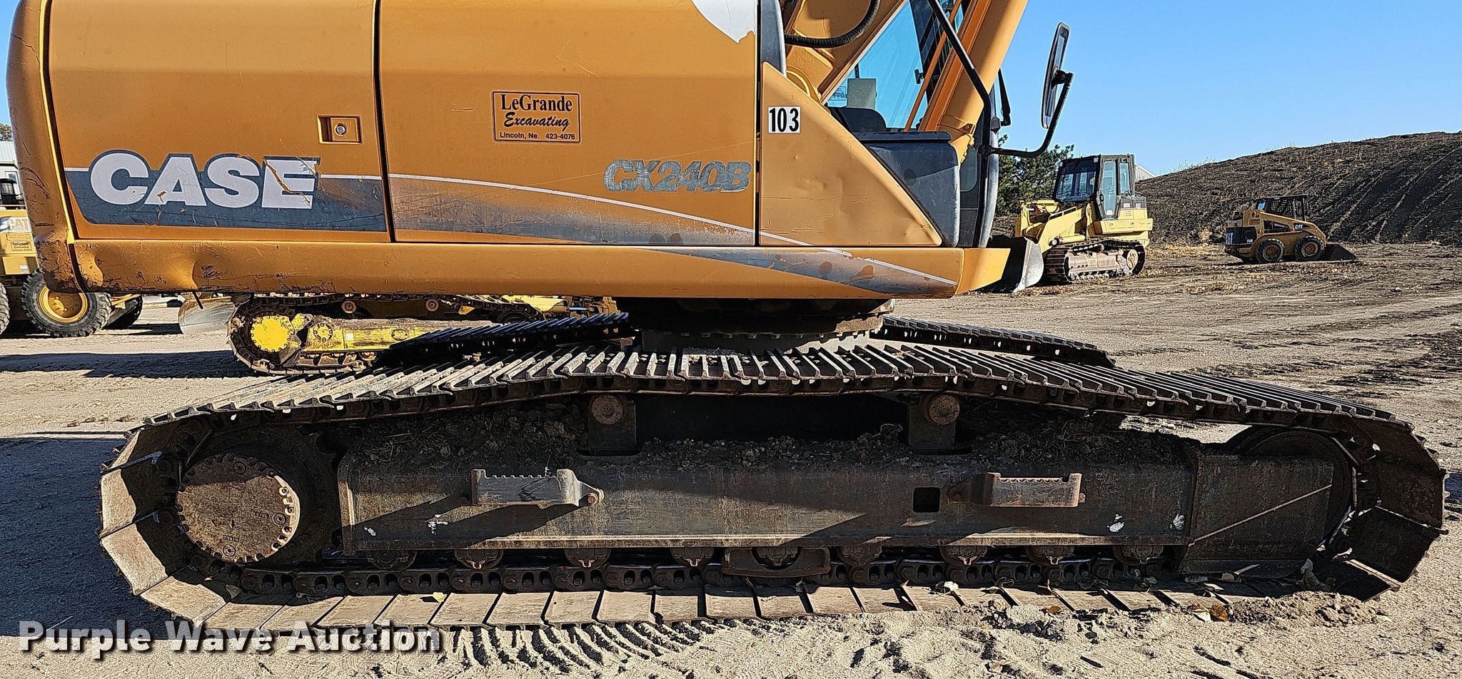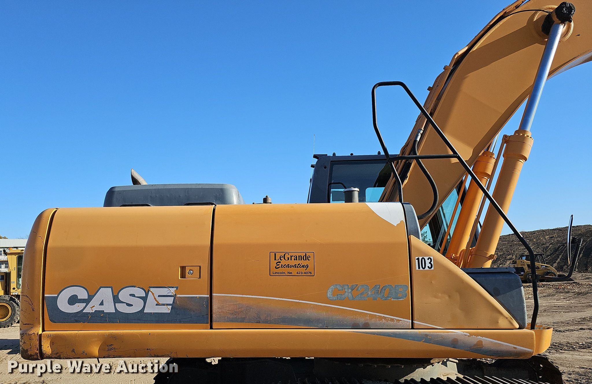 Purple Wave is selling a used Hydraulic Excavator in Nebraska. This item is a 2010 Case CX240B excavator with the following: Hours: 5,696 on meter, Serial: DAC240K5NASAM2227, Unit #: 103