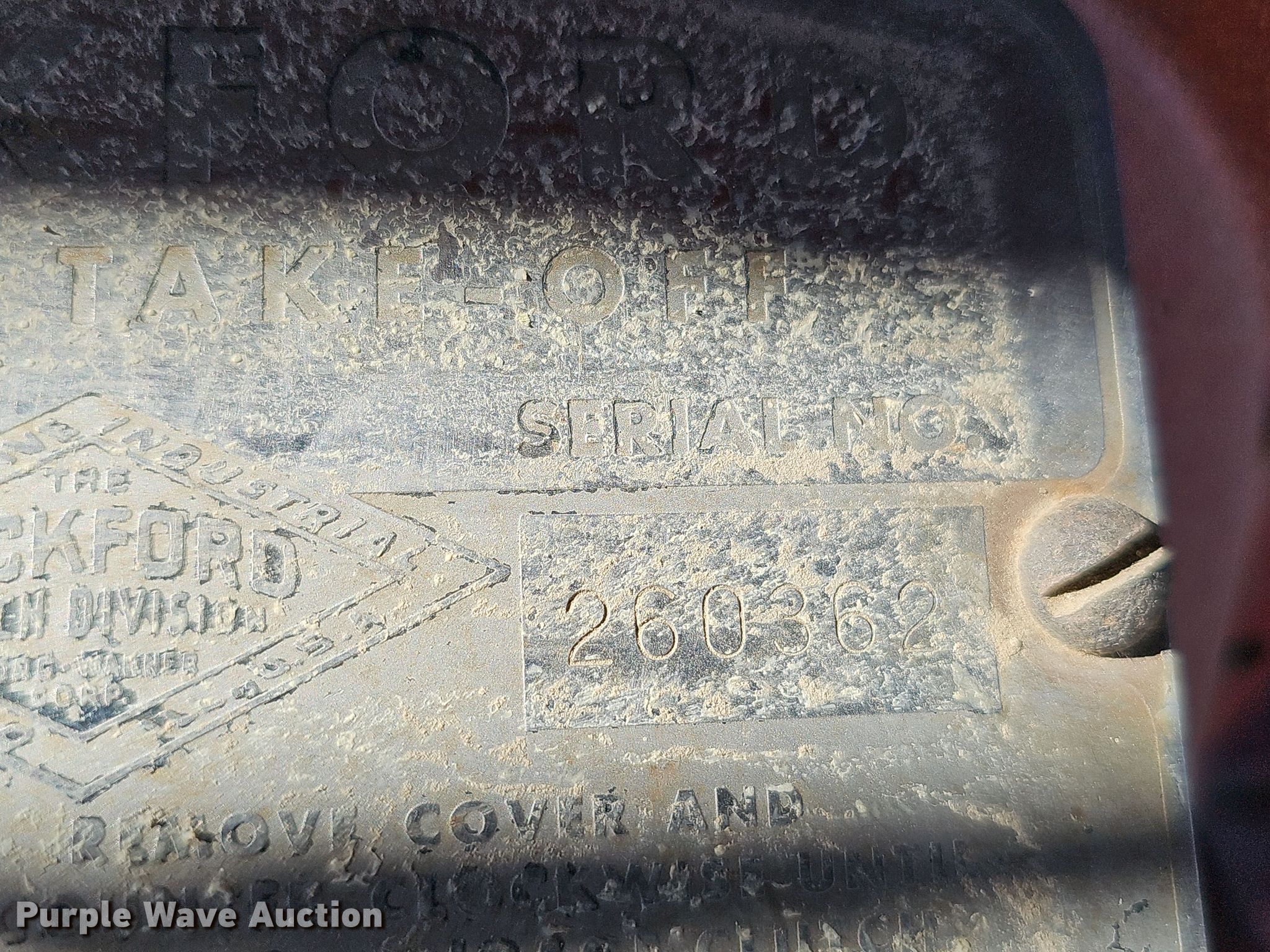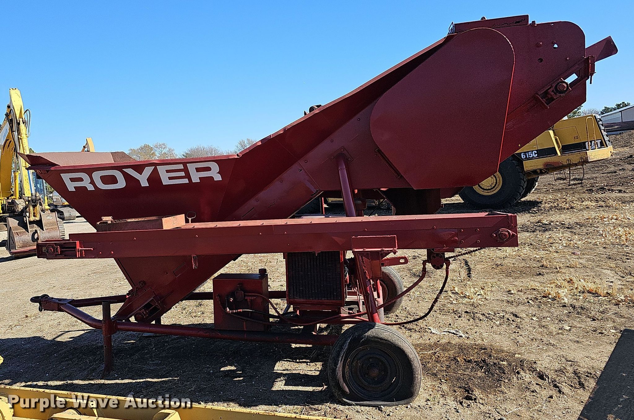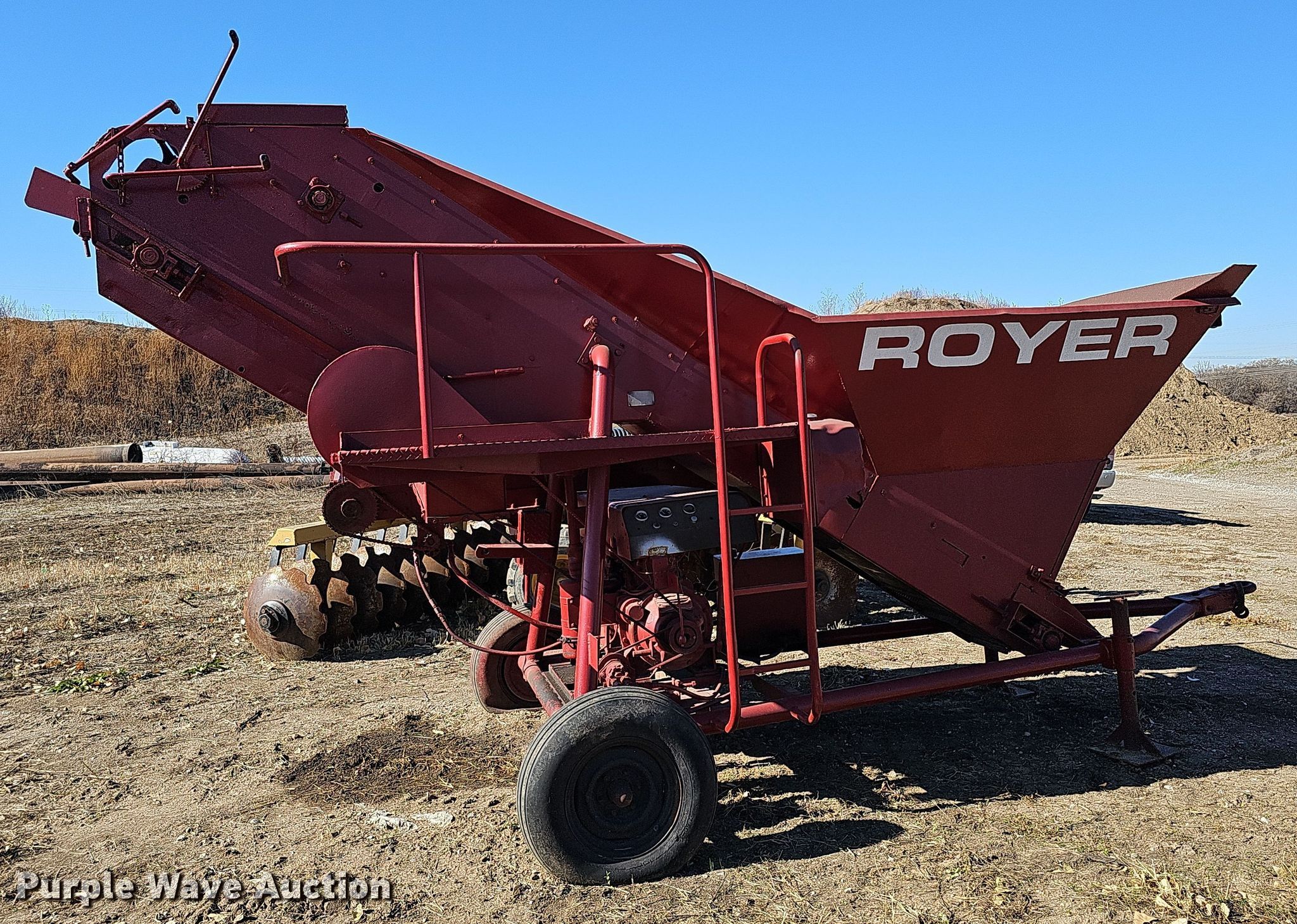 Royer topsoil shredded. Serial: 262-75-276. Engine Cylinders: 4, Fuel type: Gas. Features Input hopper Length: 12', Width: 16", Conveyor 12' L x 25" W, PTO Rockford P1A-5851, Serial: 260362, (2) jack stands 18' L x 96" W. Tires Size: 7.60-15. Notes Tire flat. This is worksite support equipment and will not come with a title. Transfer of ownership documentation will be a bill of sale. LeGrande Excavating - Open inspection December 08, 2023. 7601 South 1st Street. Lincoln, NE 68512