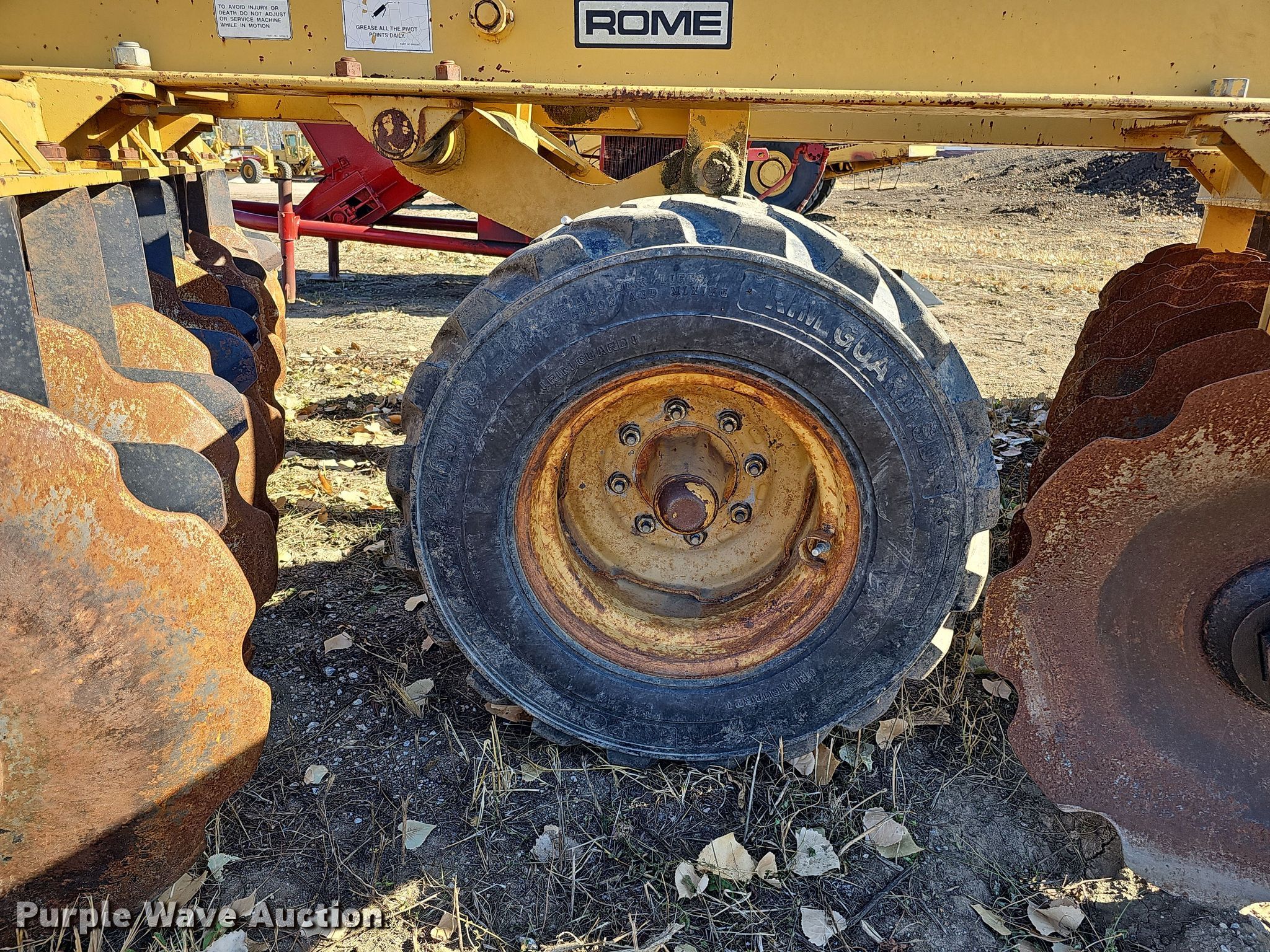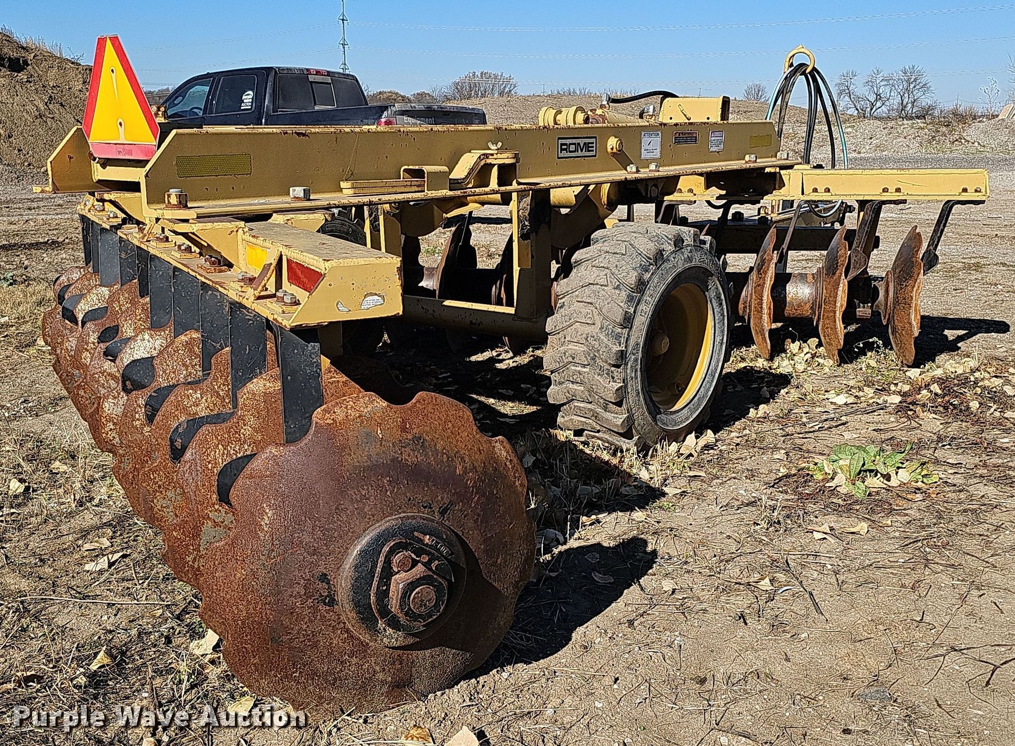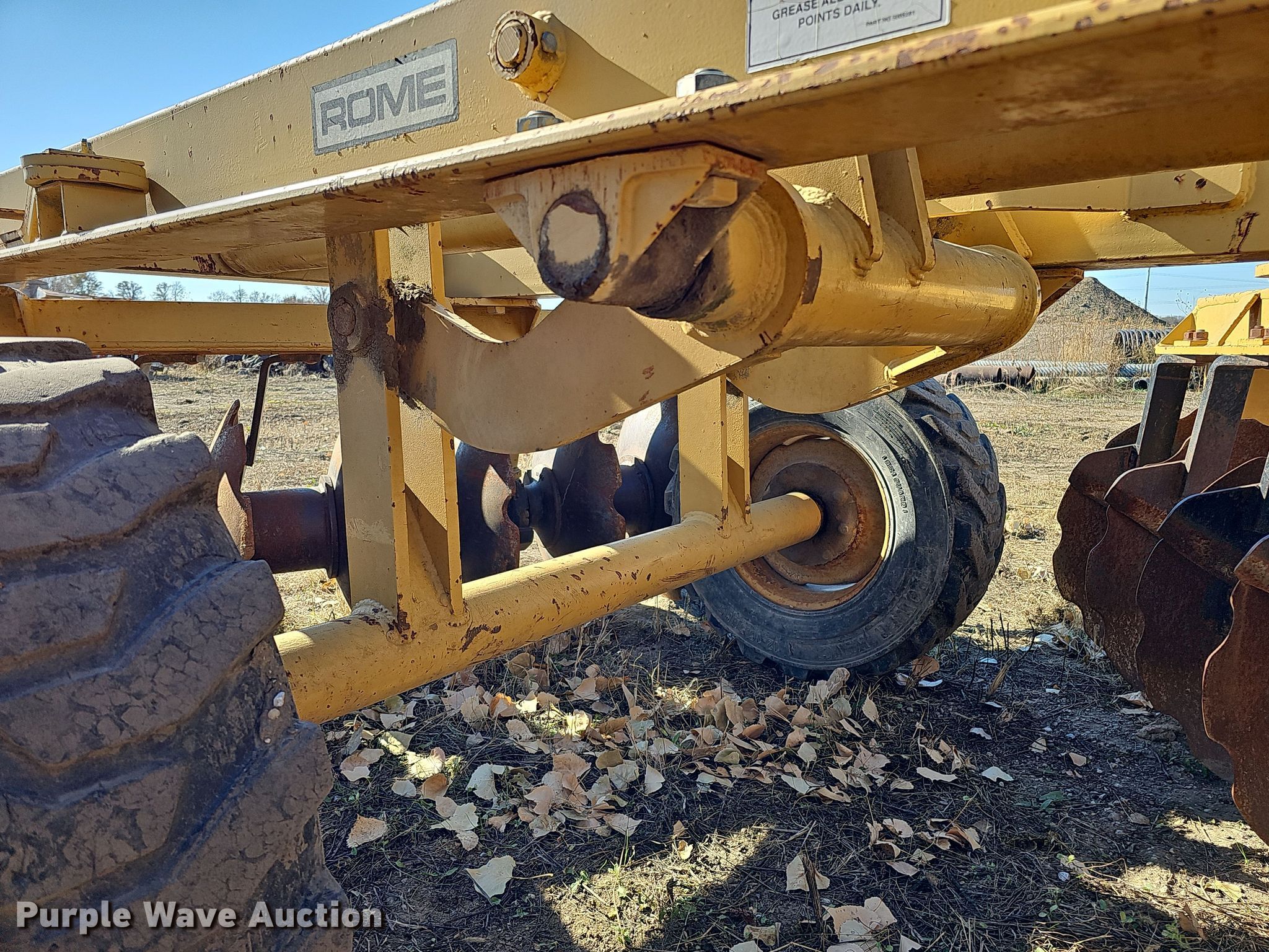 Rome Plow Co. TAW-20S off-set disk. Overall width: 10', Serial: 10TAW-3487S. Features Front blades Diameter: 28", Spacing: 12", Rear blades Diameter: 28", Spacing: 12", Disk scrapers, Operation Hydraulic lift. Tires Tire size: 12-16.5. LeGrande Excavating - Open inspection December 08, 2023. 7601 South 1st Street. Lincoln, NE 68512
