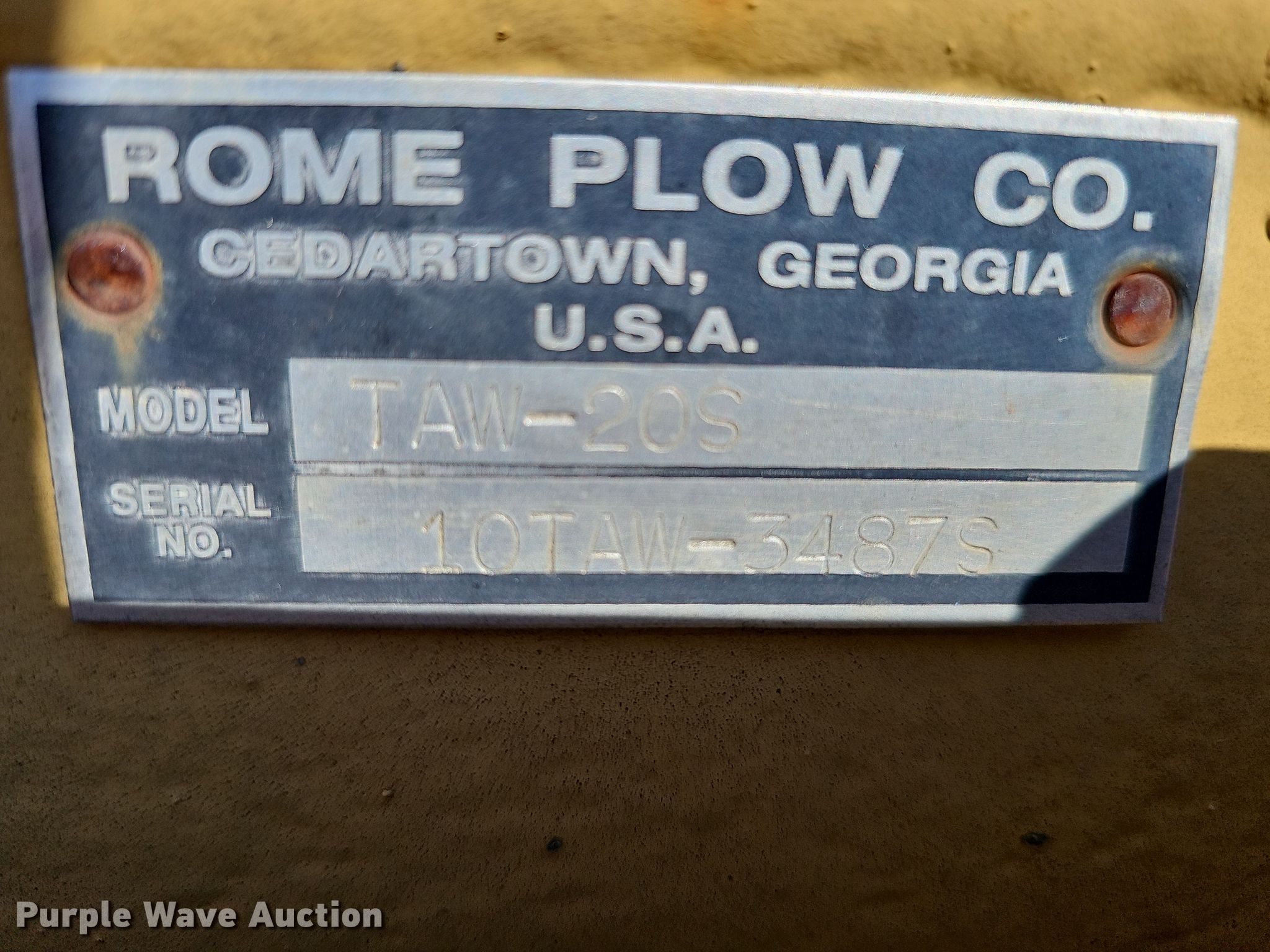 Take a look at this used Rome Plow Co. TAW-20S off-set disk being sold on December 12th, 2023 in the SOLD! December 12 LeGrande Excavating Inventory Reduction Auction made by Rome Plow Co.. Take a look at all of the item information below or take a look at similar auctions for Tillage Equipment.