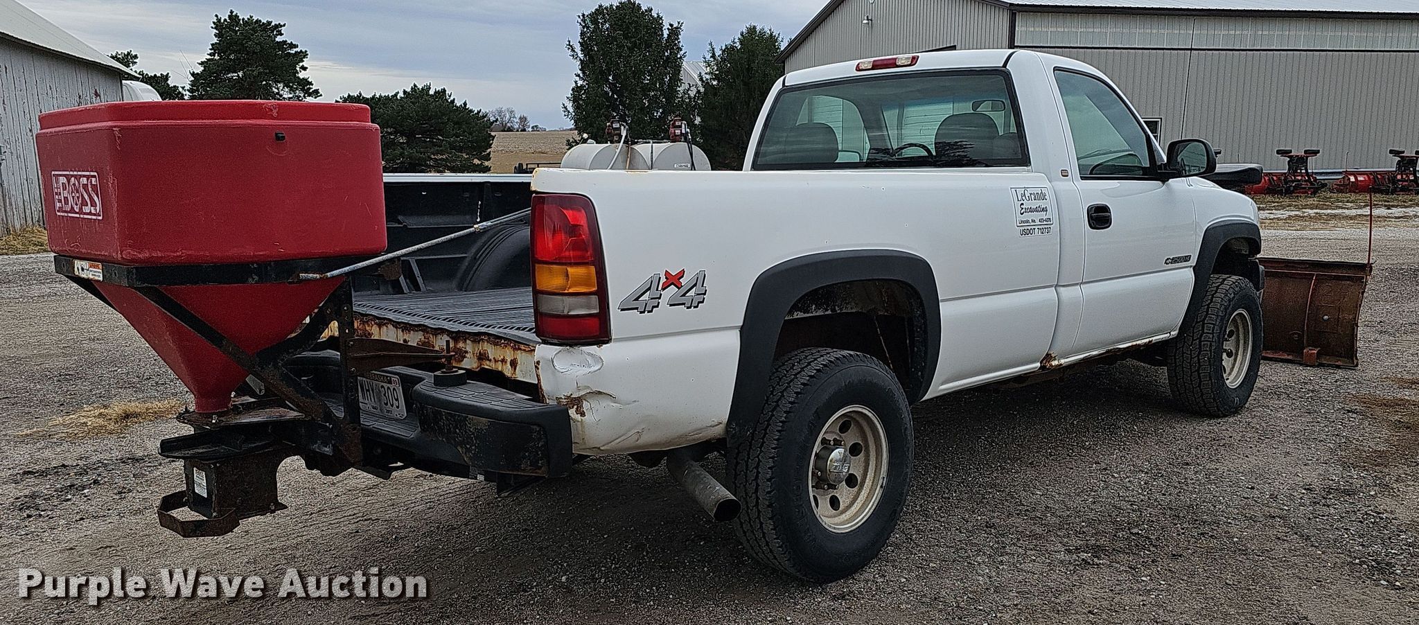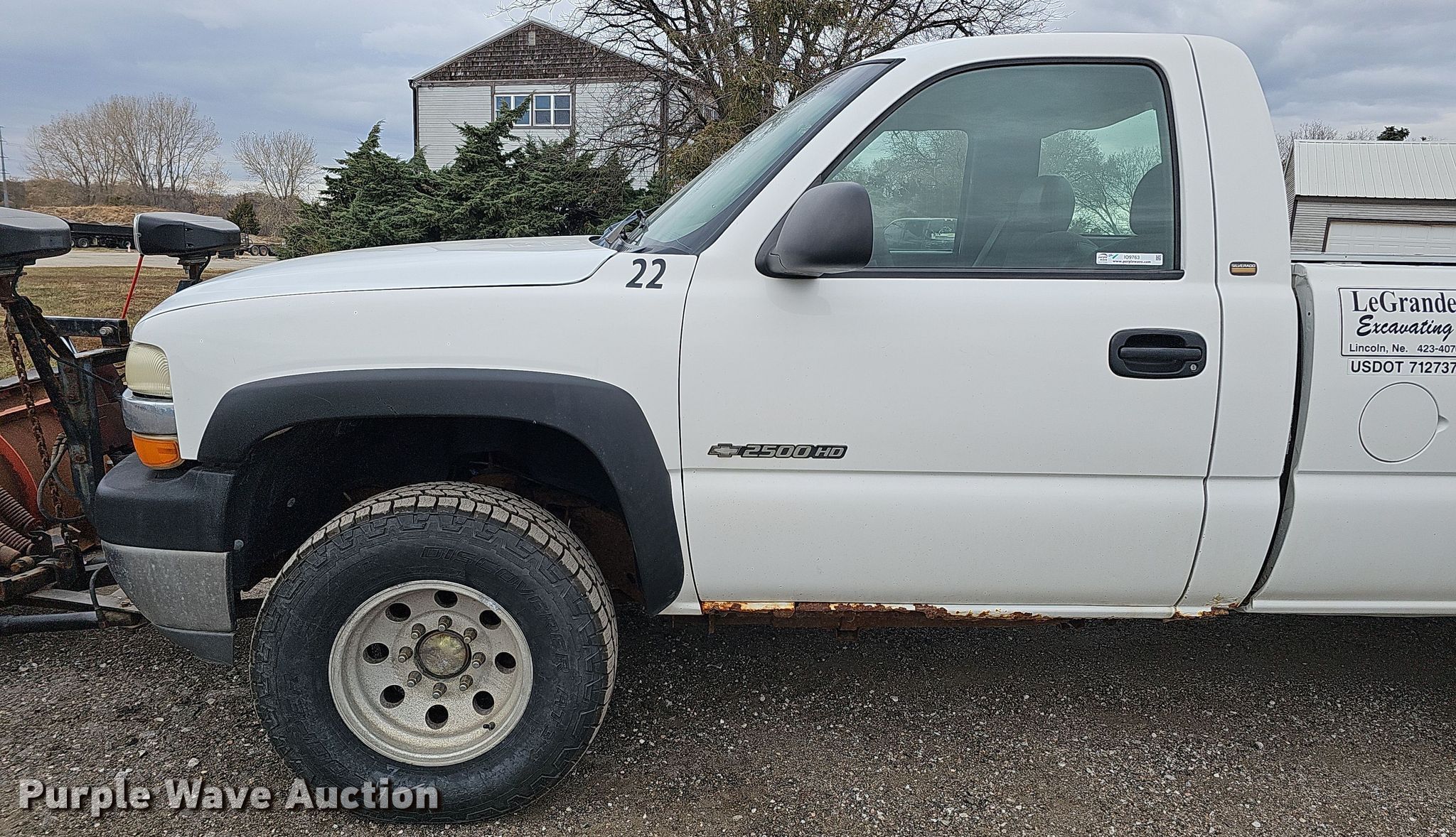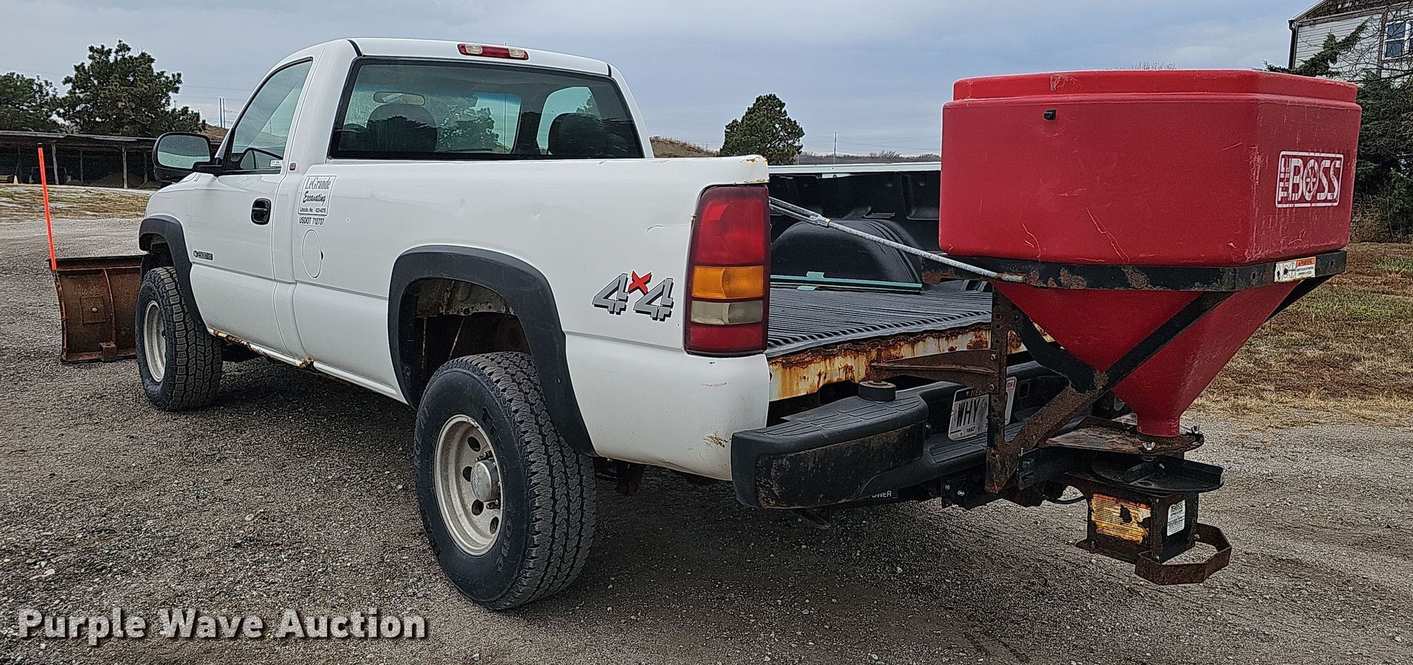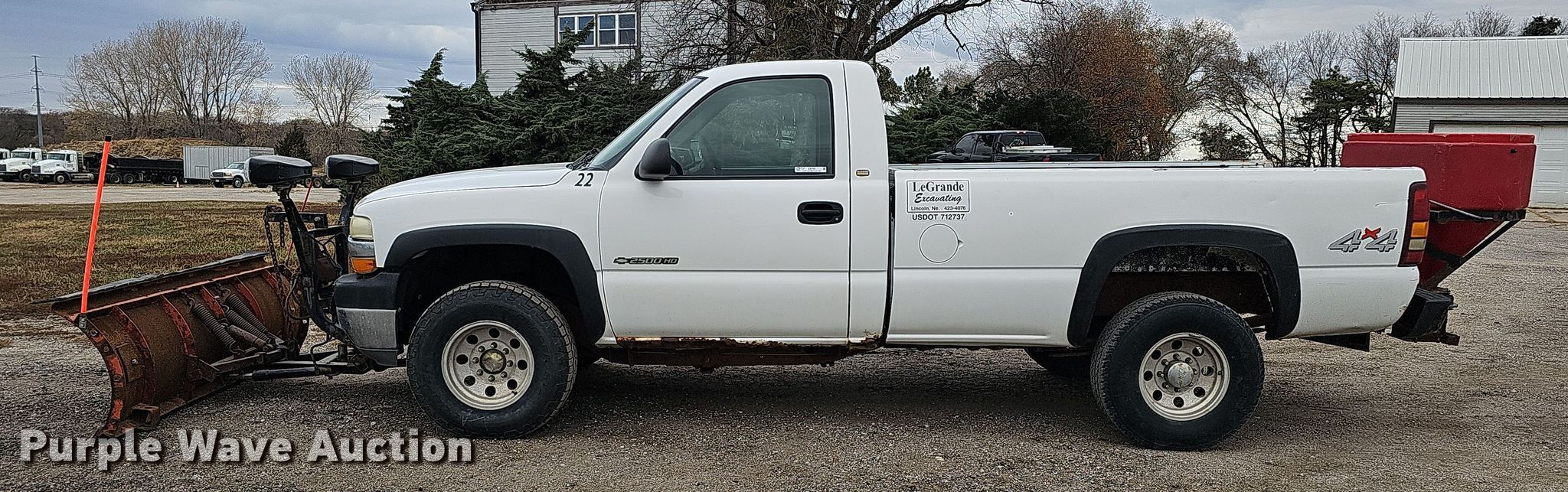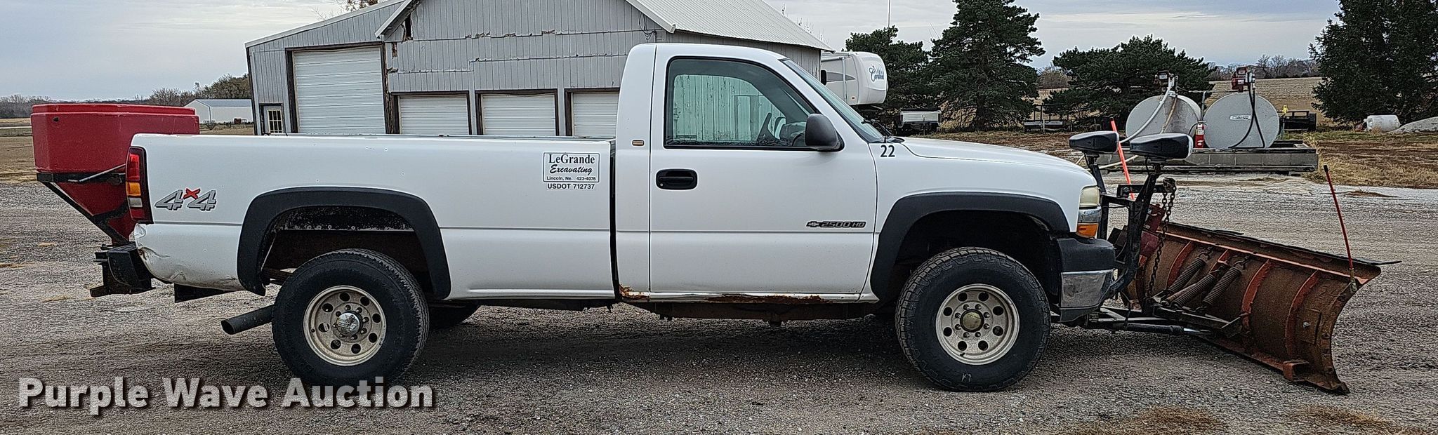 2001 Chevrolet Silverado 2500HD pickup truck. Miles: 112,879 on odometer, VIN: 1GCHK24U91E263968, Unit #: 22. Engine Displacement: 6.0L V8 OHV, Cylinders: 8, Fuel type: Gas. Transmission Automatic, Four wheel drive. Interior AC, Heat, Cruise control. Features UniMount plow Width: 90", Boss spreader. Tires Size: LT265/75R16. Notes Windshield chipped or cracked, Engine oil leak, Tailgate missing. Nebraska title. Title distribution may be delayed up to 14 days from verification of funds. LeGrande Excavating - Open inspection December 08, 2023. 7601 South 1st Street. Lincoln, NE 68512