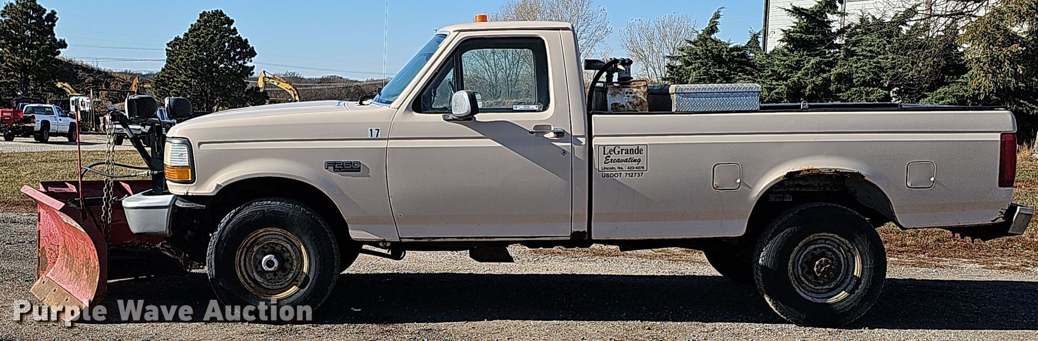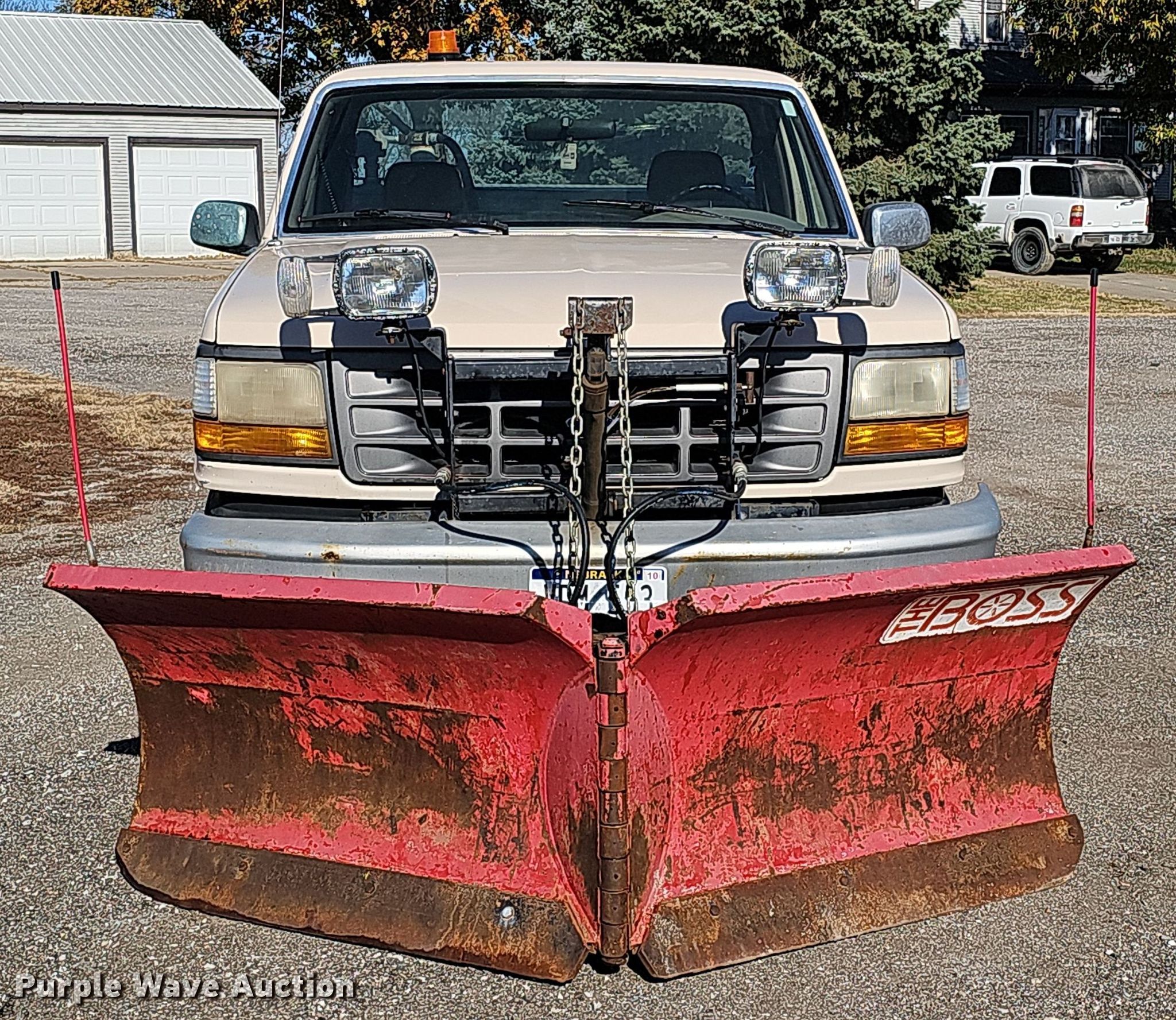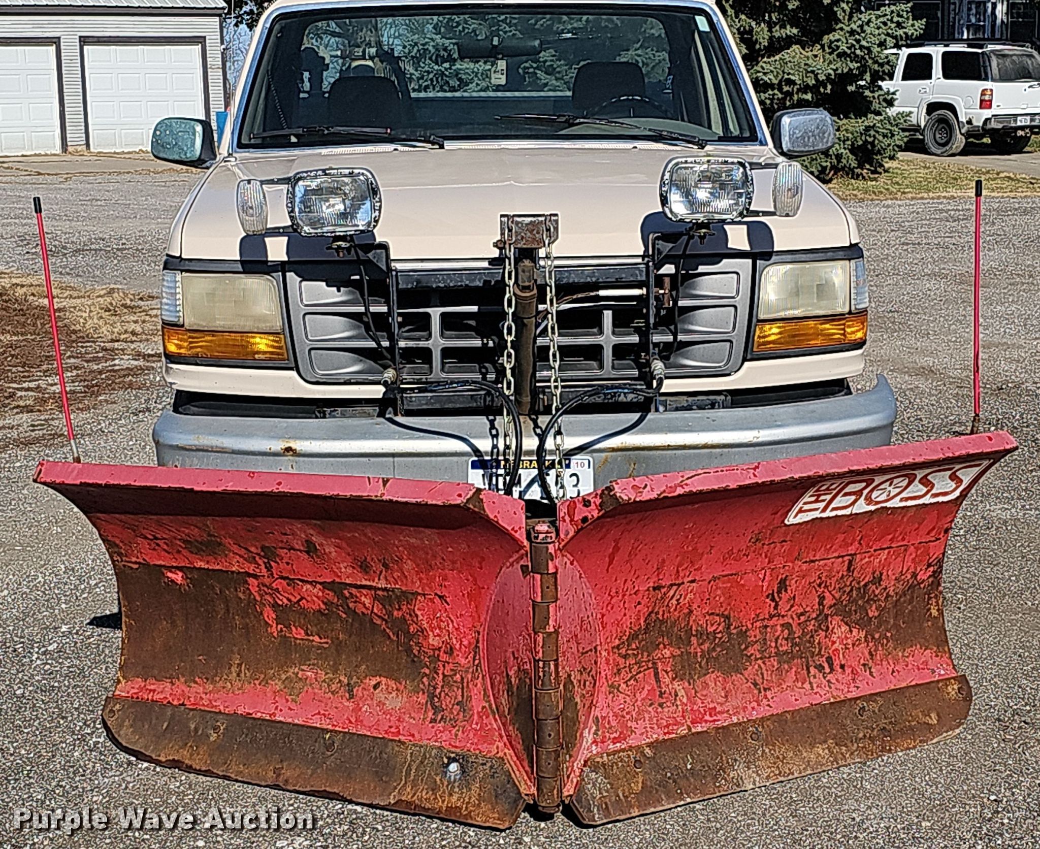 1993 Ford F250 XL pickup truck. Miles: 79,441 on odometer, VIN: 1FTHF26H6PLB12255, Unit #: 17. Engine Displacement: 5.8L V8 OHV, Cylinders: 8, Fuel type: Gas. Transmission Automatic, Four wheel drive. Interior AC, Heat. Features Boss snow plow Width: 98", Auxiliary fuel tank. Tires Size: LT235/85R16. Notes Dash warning indicator: Check engine, Windshield chipped or cracked, Rust damage. Nebraska title. Title distribution may be delayed up to 14 days from verification of funds. LeGrande Excavating - Open inspection December 08, 2023. 7601 South 1st Street. Lincoln, NE 68512