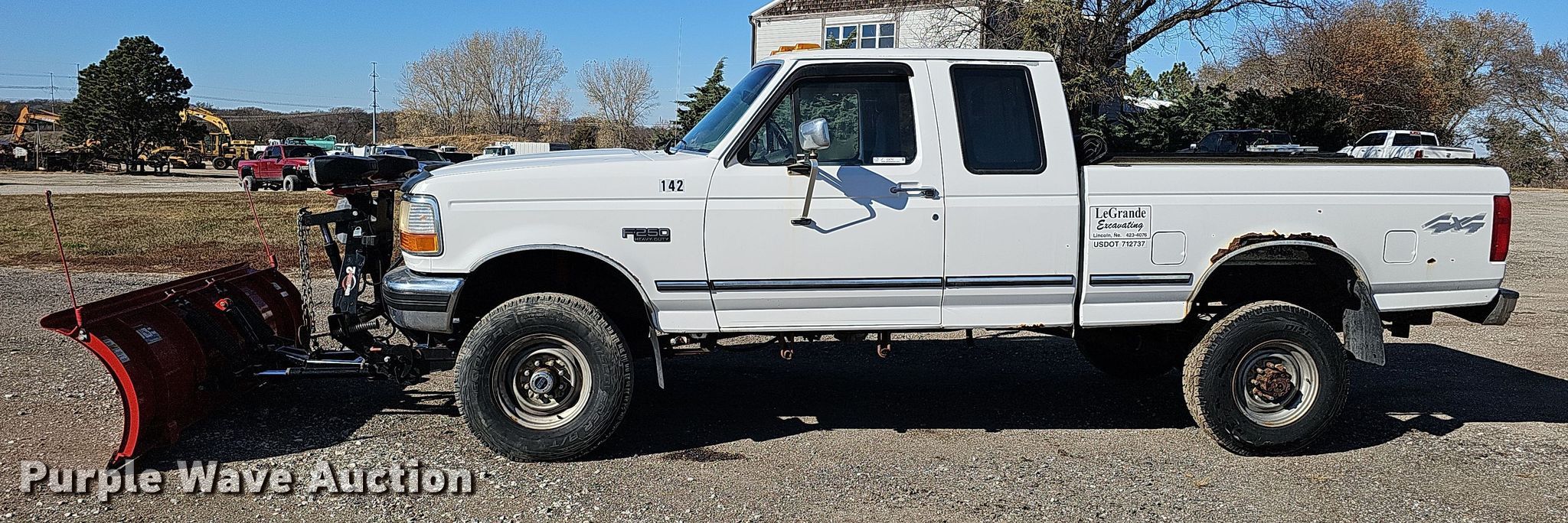 1997 Ford F250HD SuperCab pickup truck. Miles: 169,586 on odometer, VIN: 1FTHX26G6VEB58352, Unit #: 142. Engine Displacement: 7.5L V8 VIH, Cylinders: 8, Fuel type: Gas. Transmission Automatic, Four wheel drive. Interior AC, Heat, Power windows, Power locks, Cruise control. Features Western snow plow Width: 90". Tires Size: LT235/85R16. Notes Dead battery. Nebraska title. Title distribution may be delayed up to 14 days from verification of funds. LeGrande Excavating - Open inspection December 08, 2023. 7601 South 1st Street. Lincoln, NE 68512