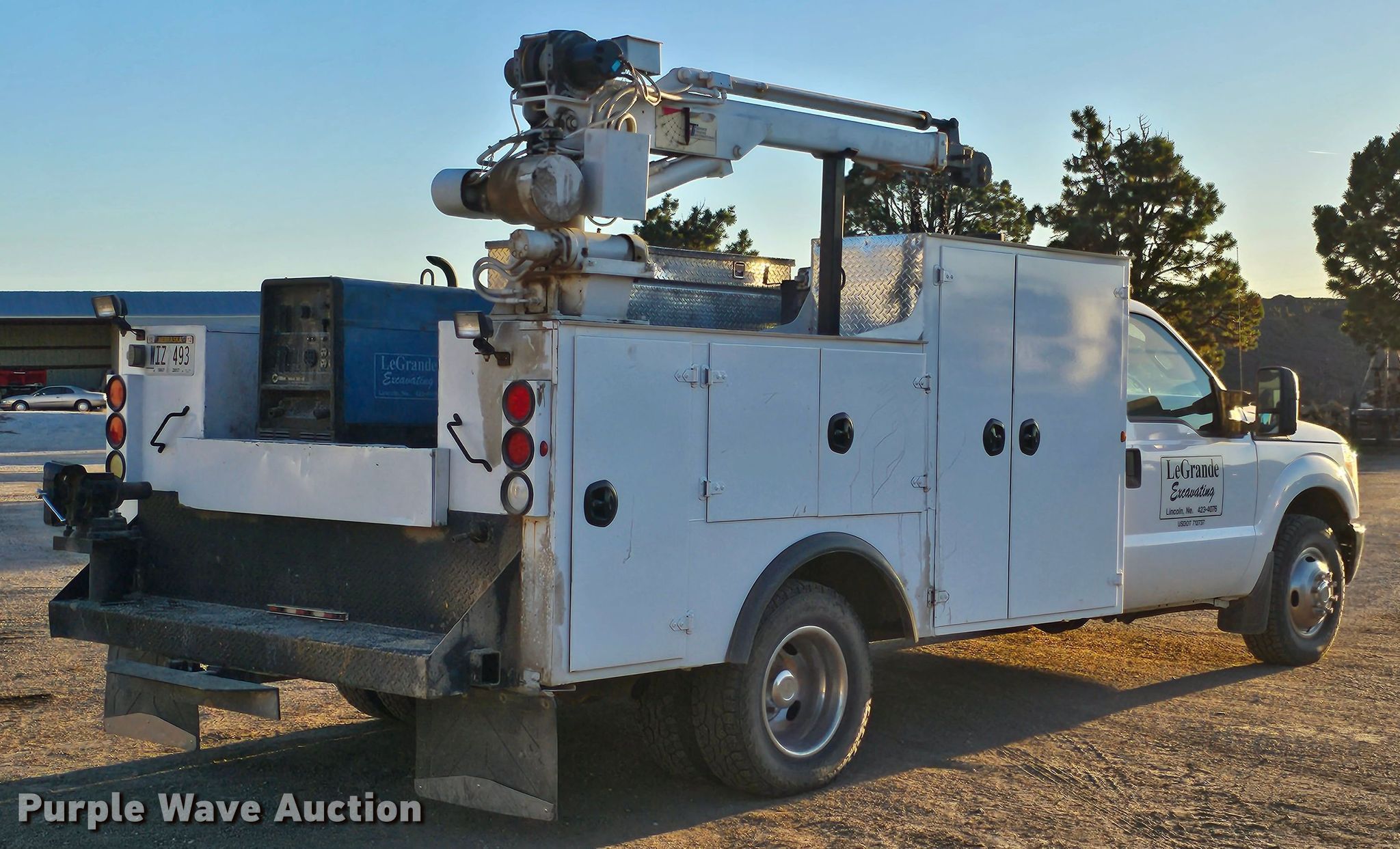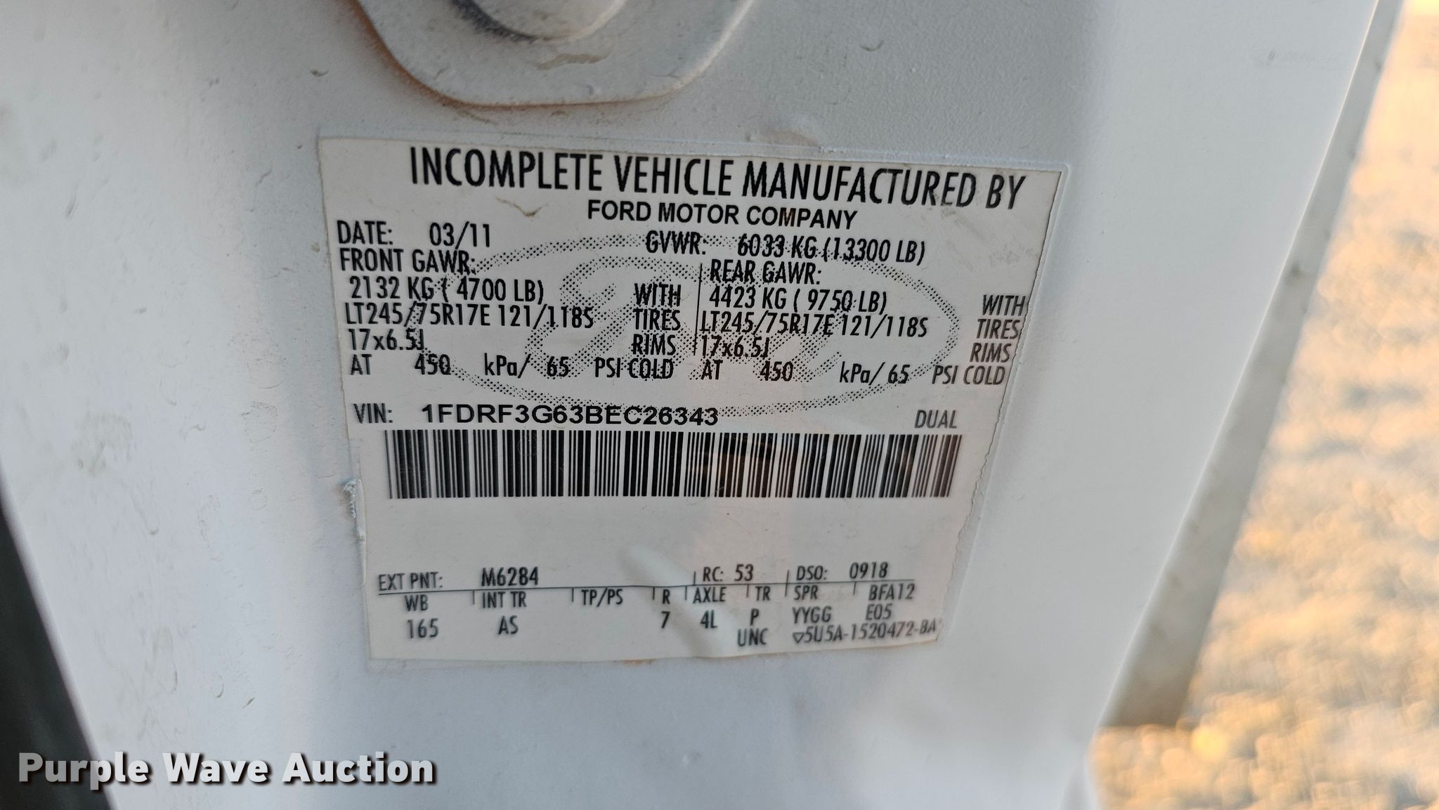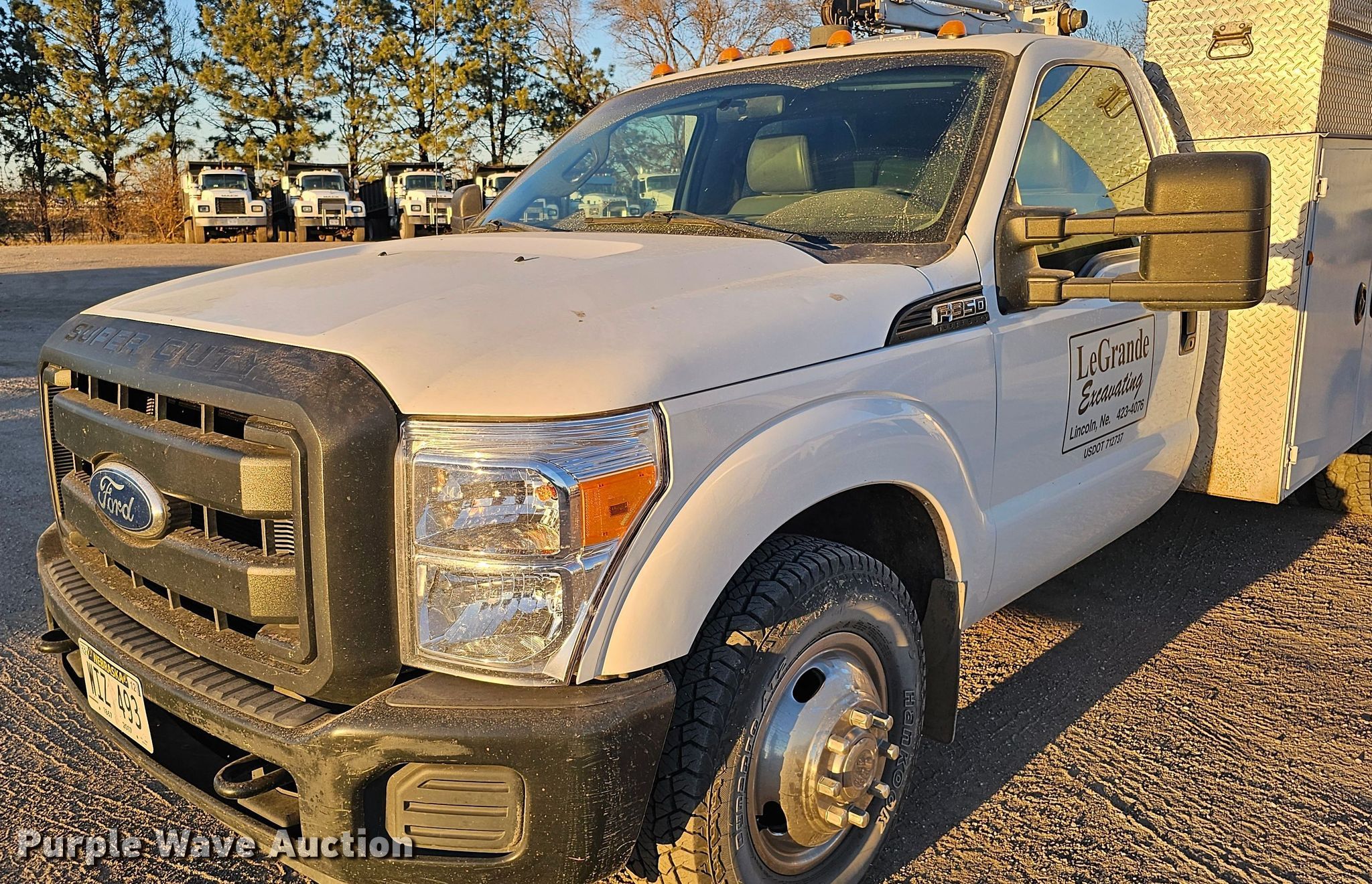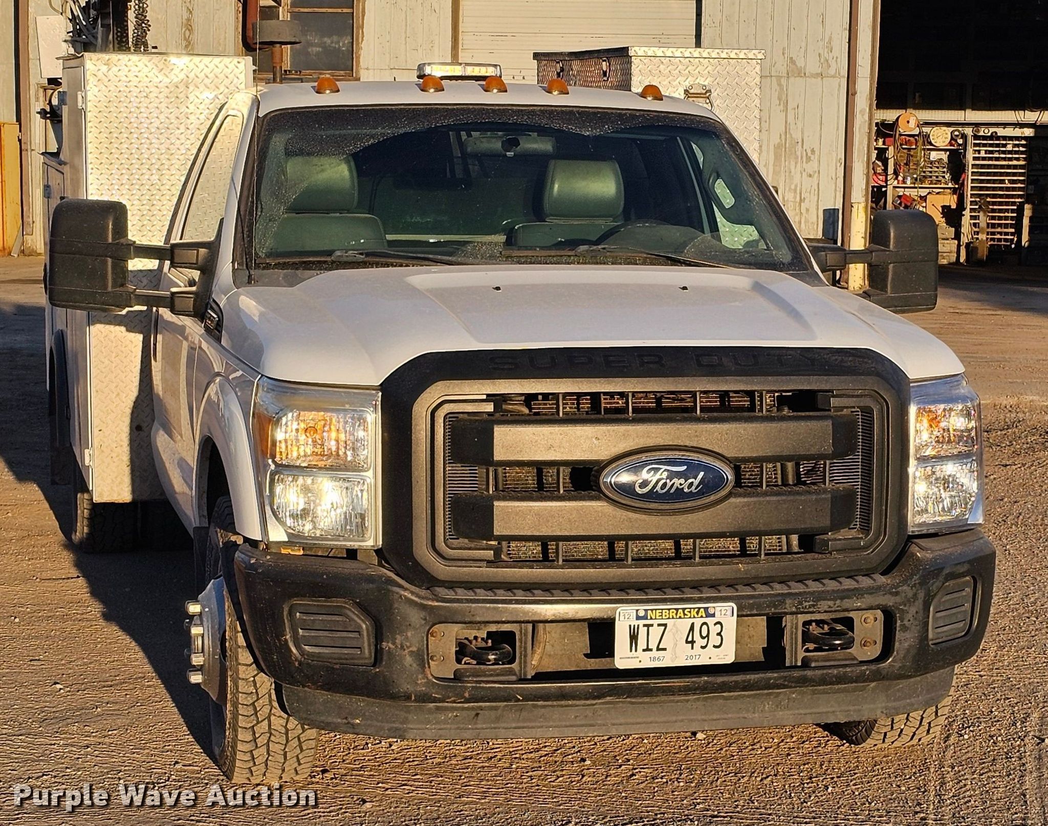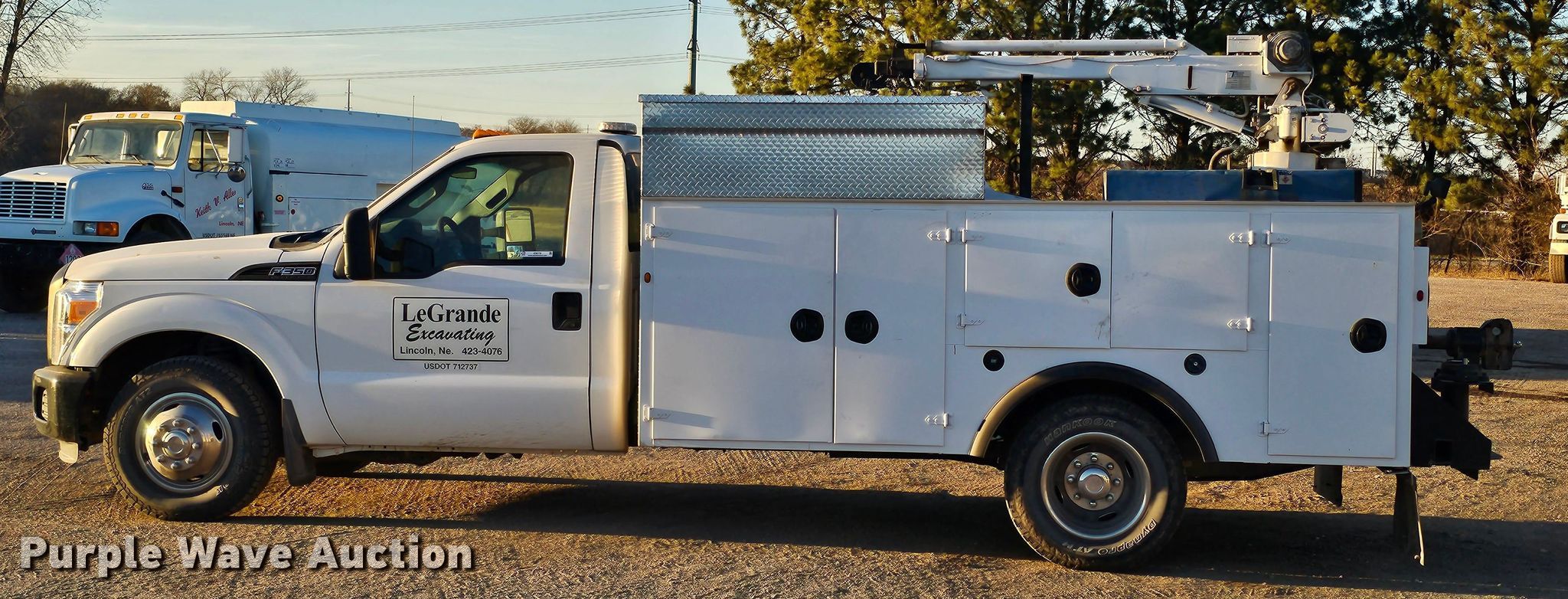 2011 Ford F350 Super Duty XL utility bed pickup truck. Miles: 177,506 on odometer, VIN: 1FDRF3G63BEC26343. Engine Displacement: 6.2L V8 OHV, Cylinders: 8. Transmission Automatic. Chassis Axles: Single, Suspension: Spring, Brakes: Hydraulic, GVWR: 13,300 lbs. Interior AC, Heat, Cruise control. Features Bed Iowa Mold Tooling Co. DSC20S2, 12' L x 94" W, Torch bottle rack Tanks not included, Air compressor Kawasaki FE350, Crane STI 3500 EH, Maximum lift capacity: 10,000 lbs. Tires Size: LT245/75R17. Notes Welder not included, Contents not included, Dash warning indicator: Check engine, Airbag, Windshield chipped or cracked. Nebraska title. Title distribution may be delayed up to 14 days from verification of funds. LeGrande Excavating - Open inspection December 08, 2023. 7601 South 1st Street. Lincoln, NE 68512