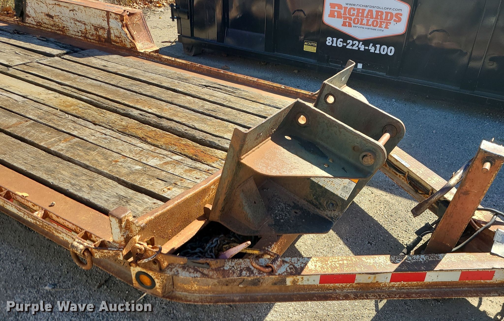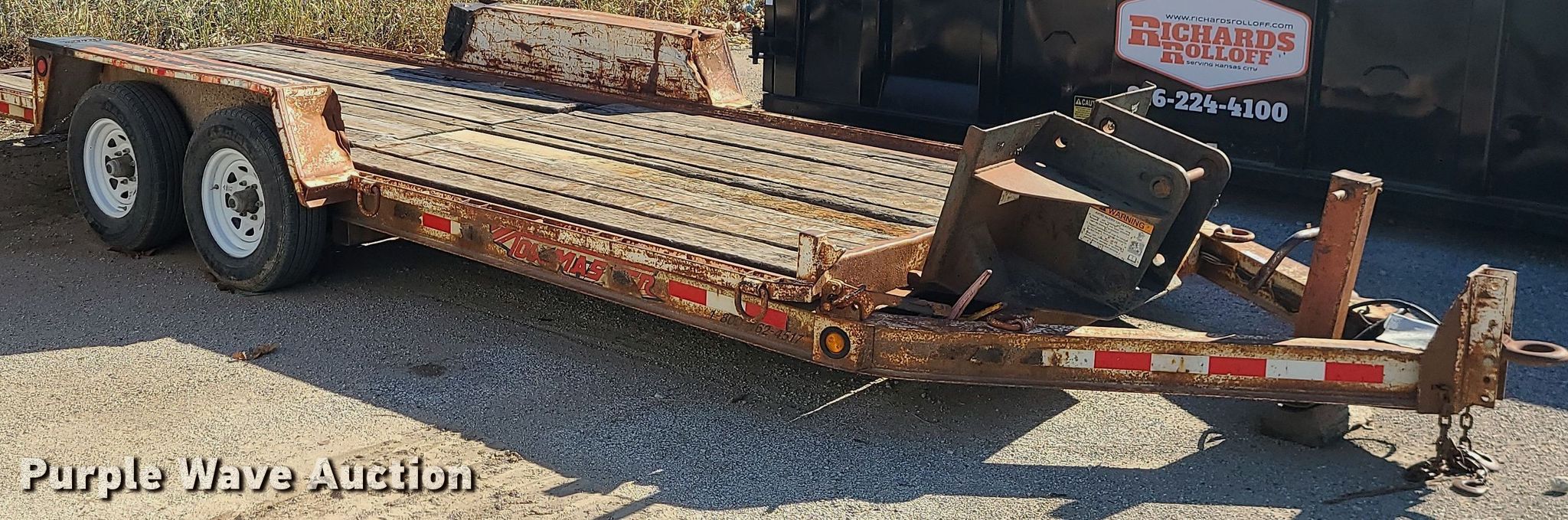 2000 Towmaster equipment trailer. VIN: 4KNUT1822YL162693. Dimensions Overall: 24'L x 102" W, Deck: 18' 6" L x 82" W. Features Deck type: Wood. Chassis Landing gear: Single, Suspension: Spring, Brakes: Electric, Axles: Tandem, GVWR: 13,300 lbs. Tires Size: 225/75R15. Missouri title. Title distribution may be delayed up to 14 days from verification of funds. Richards Construction Company, Inc... 4910 Gardner Ave. Kansas City, MO 64120