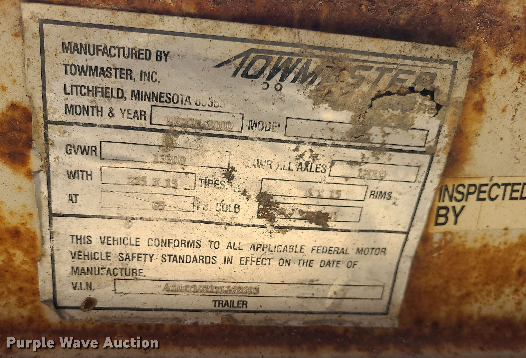 Purple Wave is selling a used Equip. Trailer in Missouri. This item is a 2000 Towmaster equipment trailer with the following: VIN: 4KNUT1822YL162693