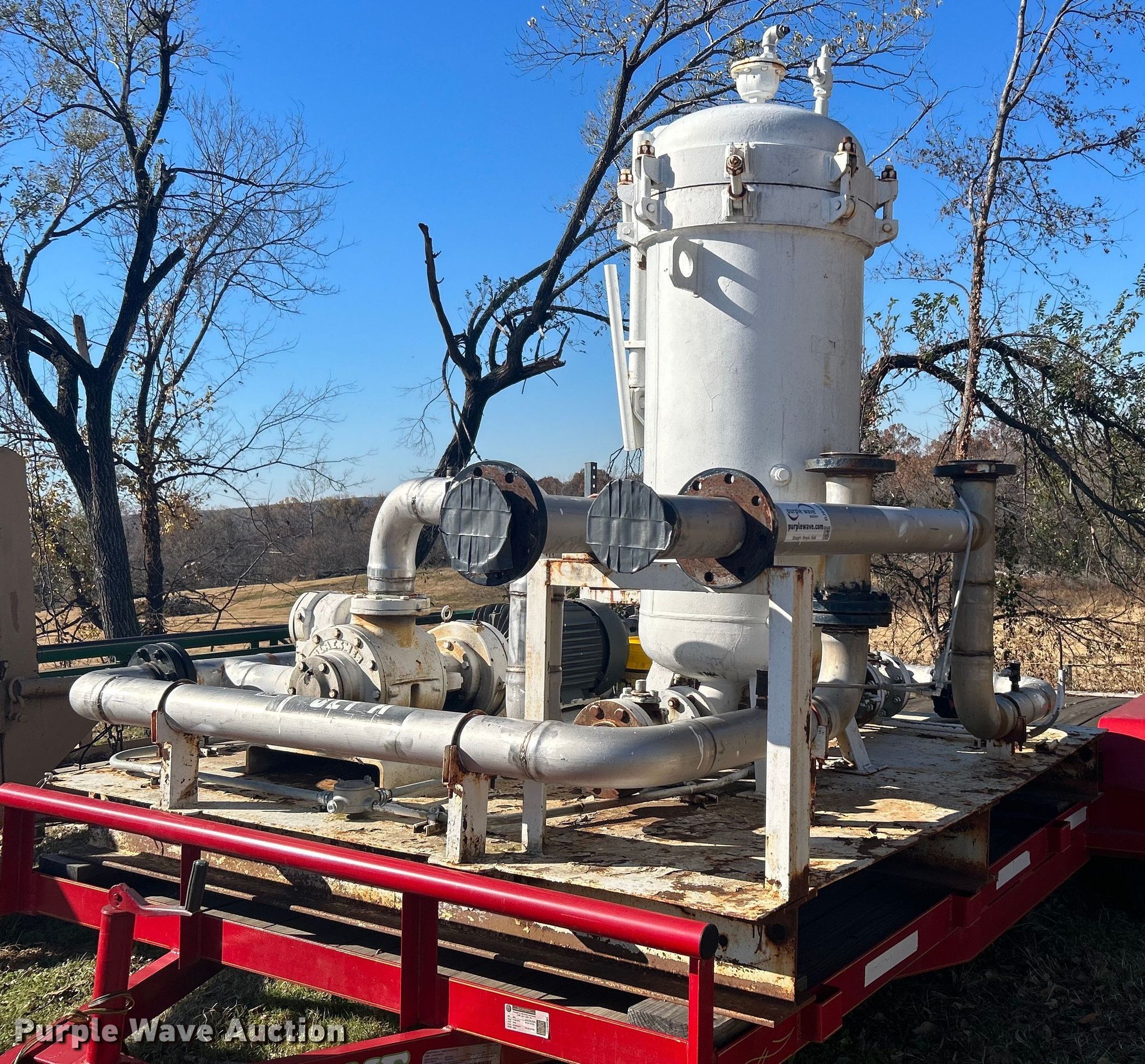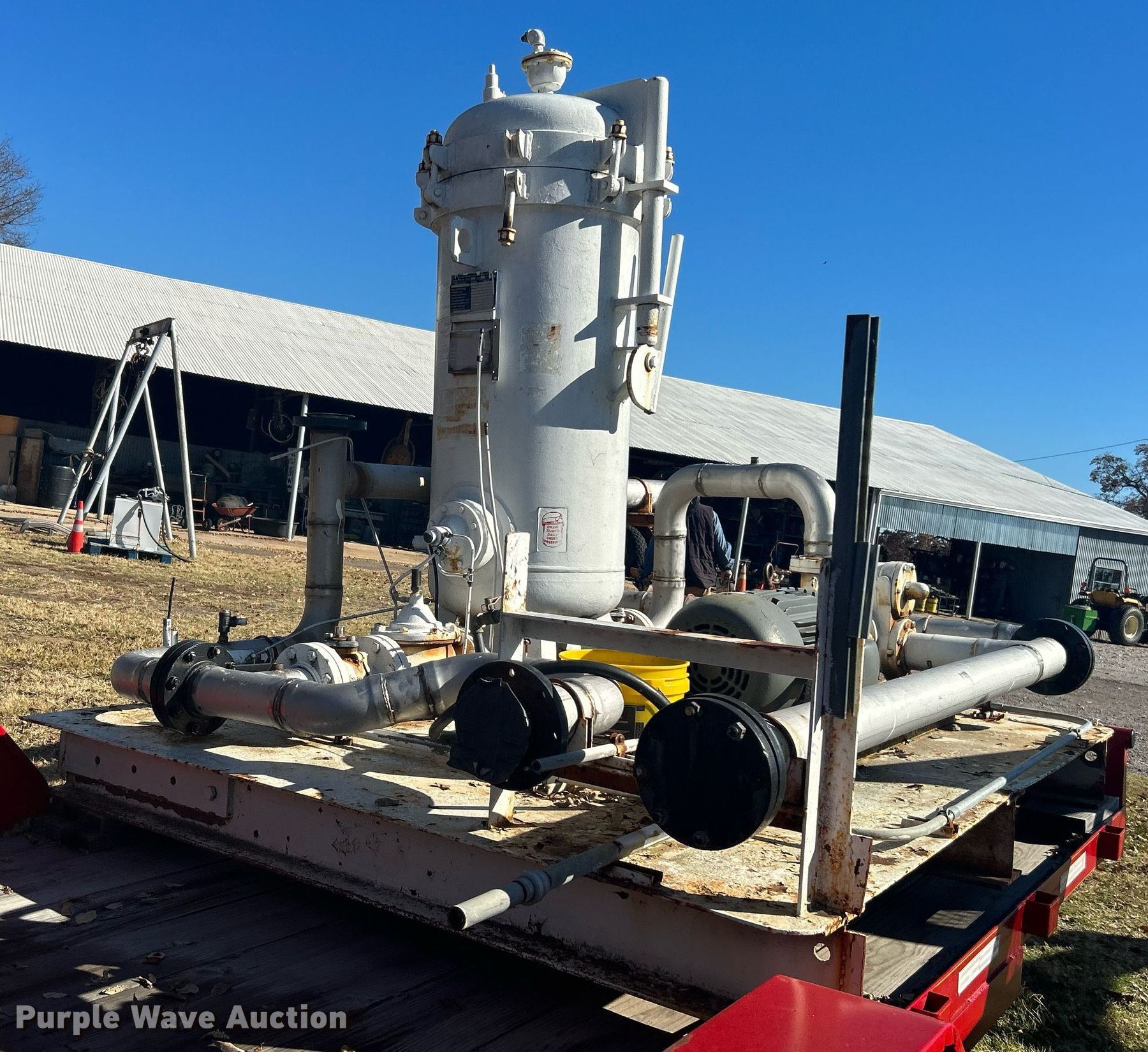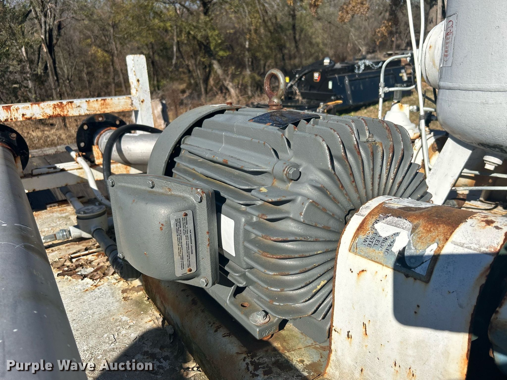 Transfer pump. Electric Motor. HP: 15, Volts: 230/460, Phase: Three. Features 5" diameter pipe, GPM: 325, Skid mounted 7' x 8', Blackmer pump. Notes Trailer not included. Sand Springs, OK 74063