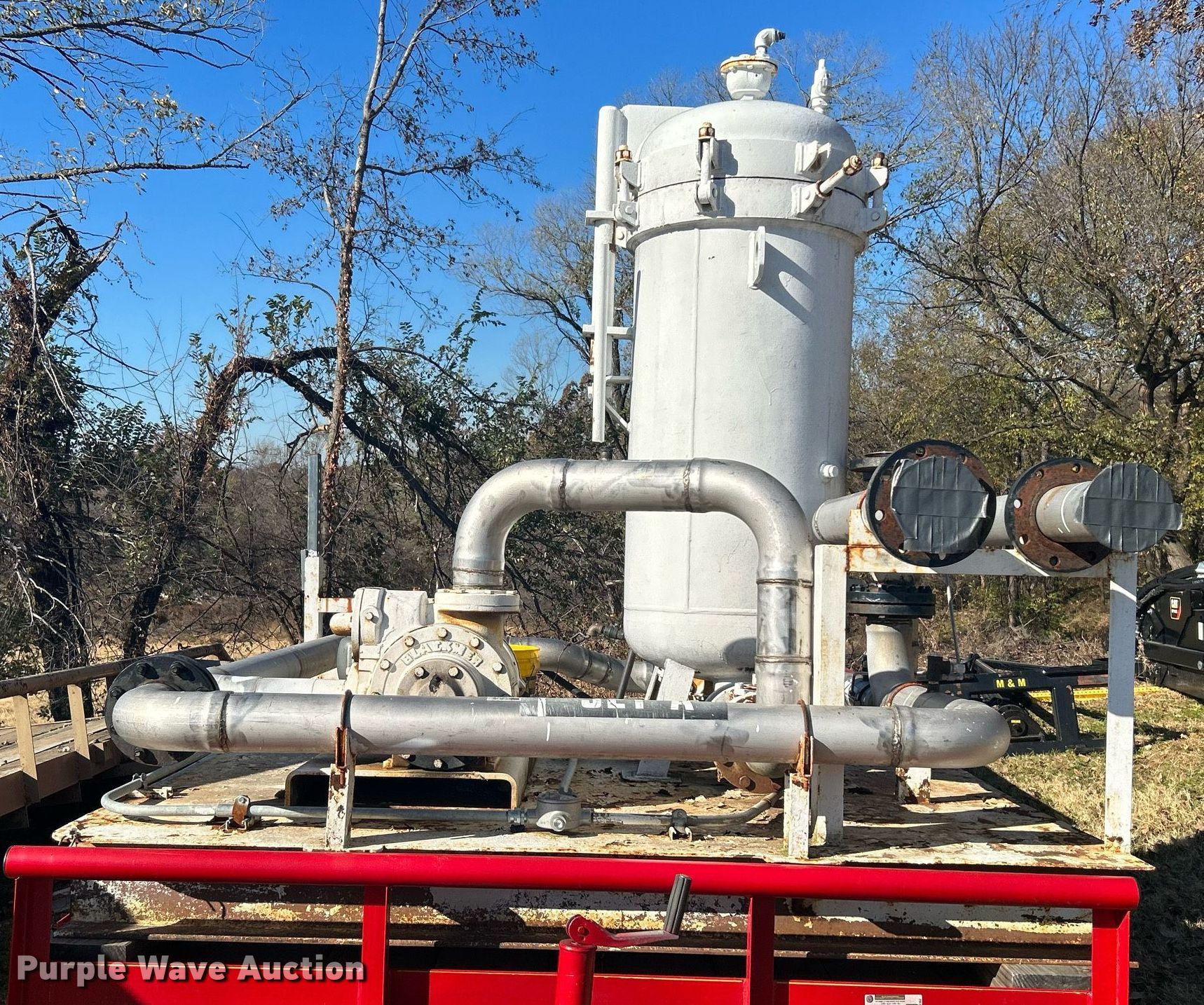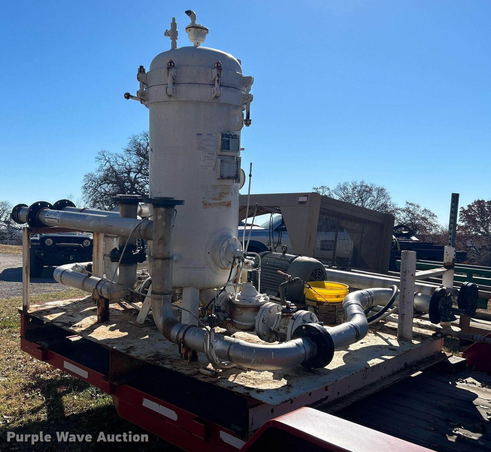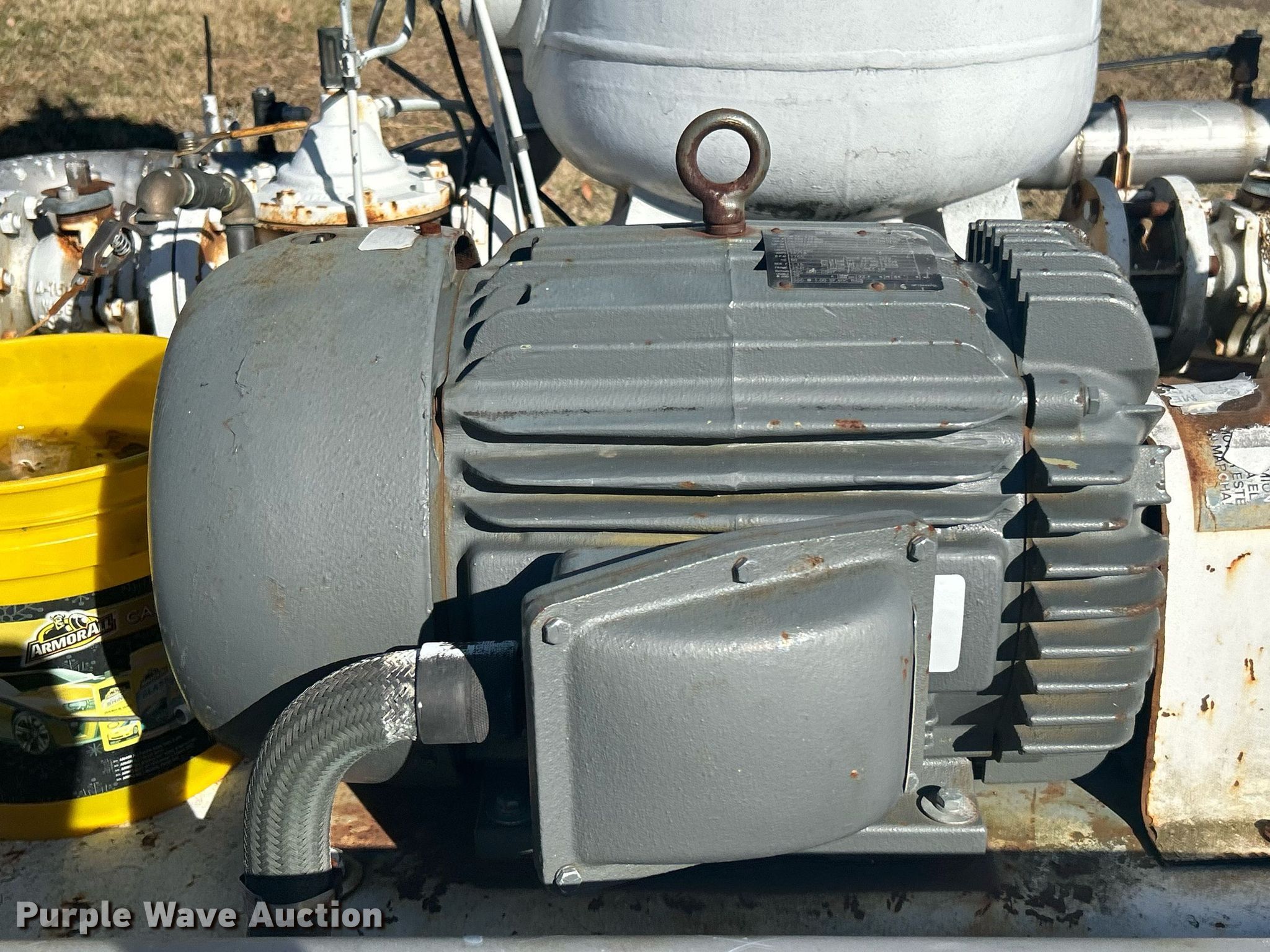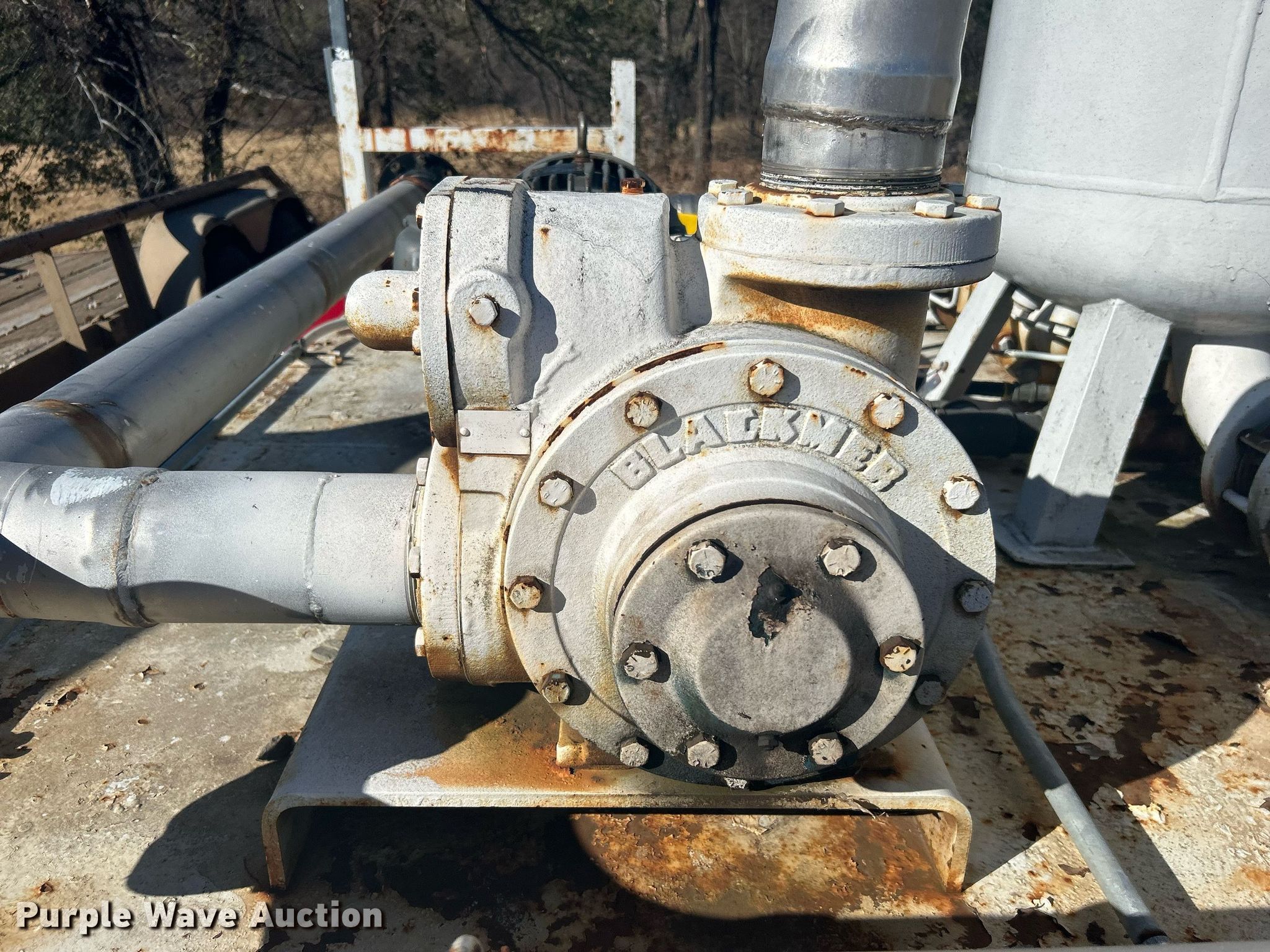 Transfer pump. Electric Motor. HP: 15, Volts: 230/460, Phase: Three. Features 5" diameter pipe, GPM: 325, Skid mounted 7' x 8', Blackmer pump. Notes Trailer not included. Sand Springs, OK 74063