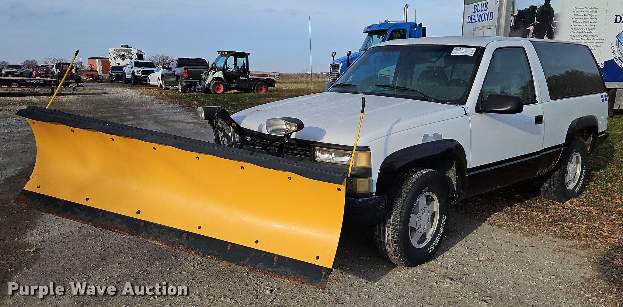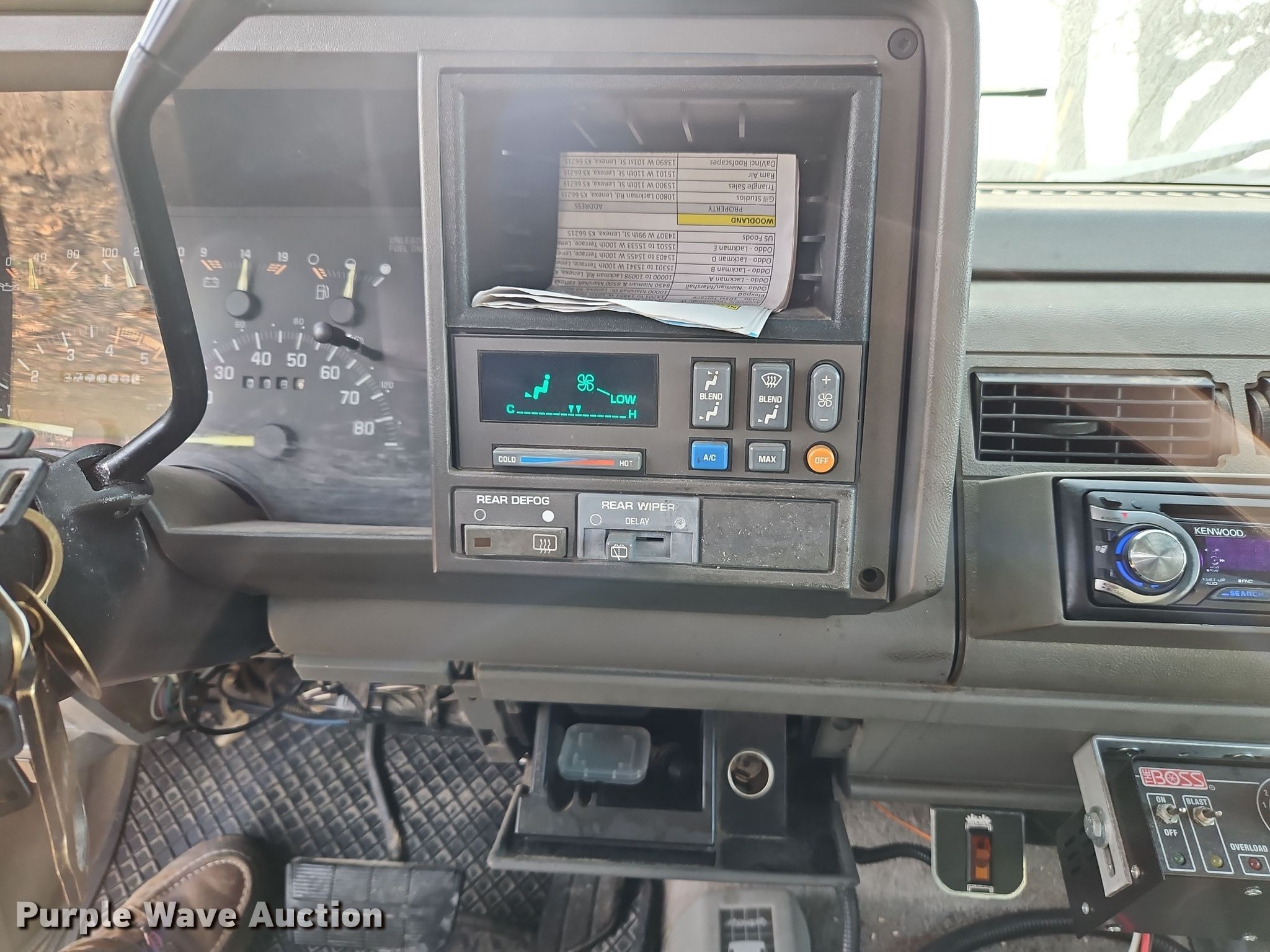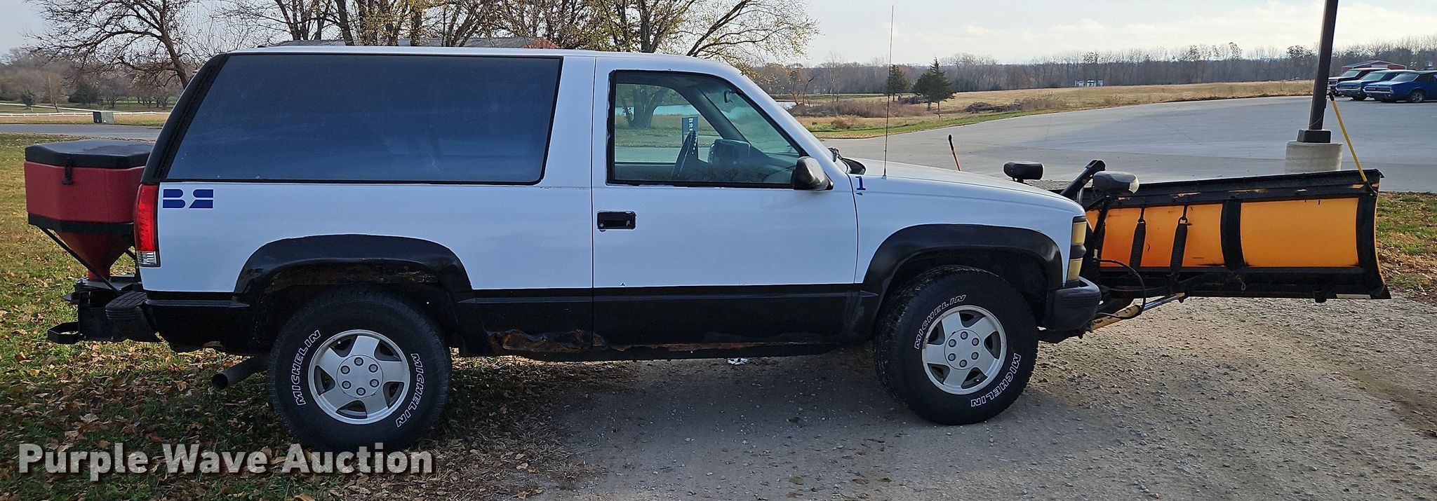 1994 Chevrolet Tahoe SUV. Miles: 277,000 on odometer, VIN: 1GNEK18K5RJ309537. Engine Displacement: 5.7L V8 OHV, Cylinders: 8, Fuel type: Gas. Transmission Automatic, Four wheel drive. Interior AC, Heat, Power windows, Power locks, Cruise control. Features Meyer E-60 snow plow Width: 7' 6", The Boss TGS 600 spreader. Tires Size: LT265/75R16. Notes Dash warning indicator: Service engine, Possible exhaust leak. Kansas title. Title distribution may be delayed up to 14 days from verification of funds. Bedrock Concrete LLC. 28595 West 207th Street. Gardner, KS 66030