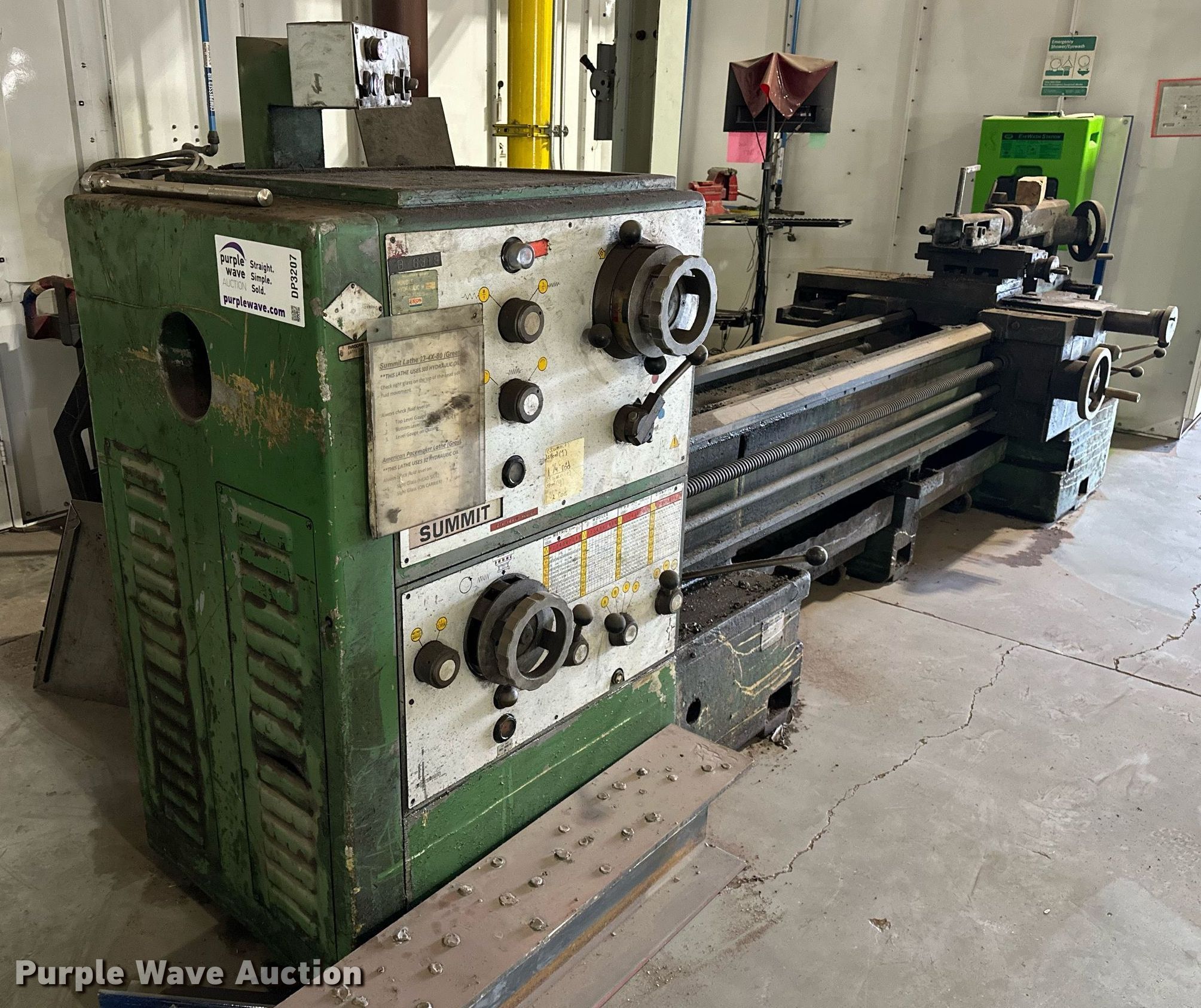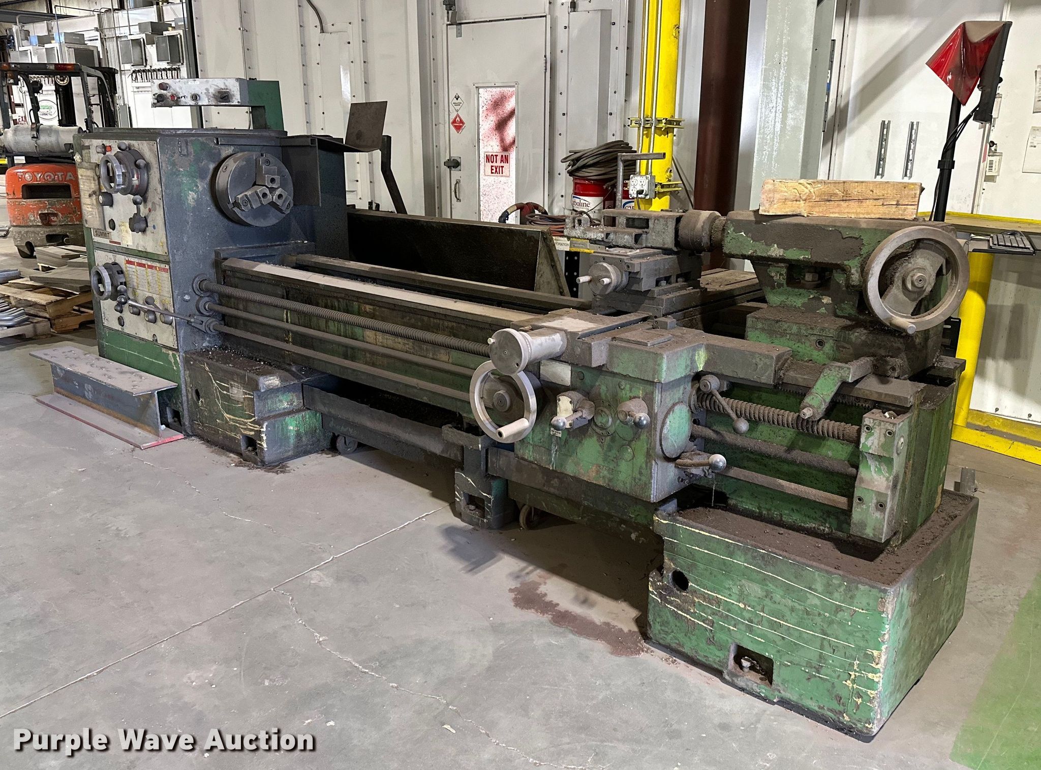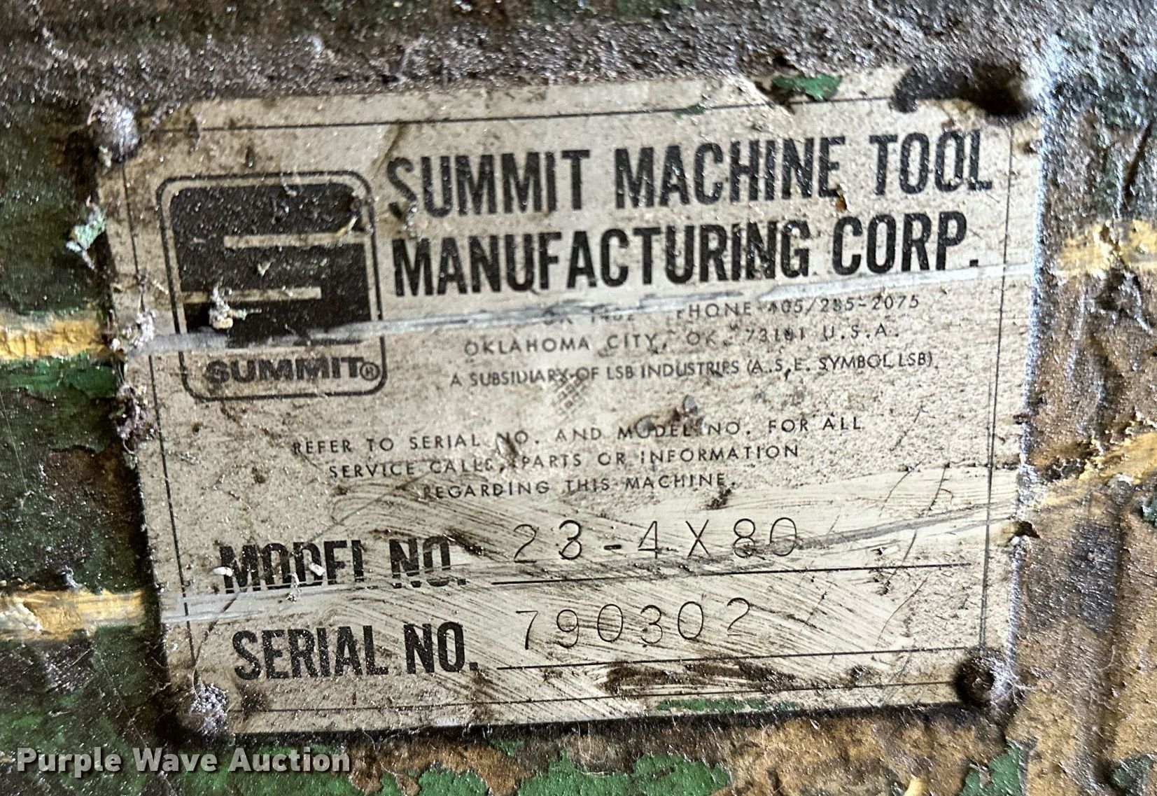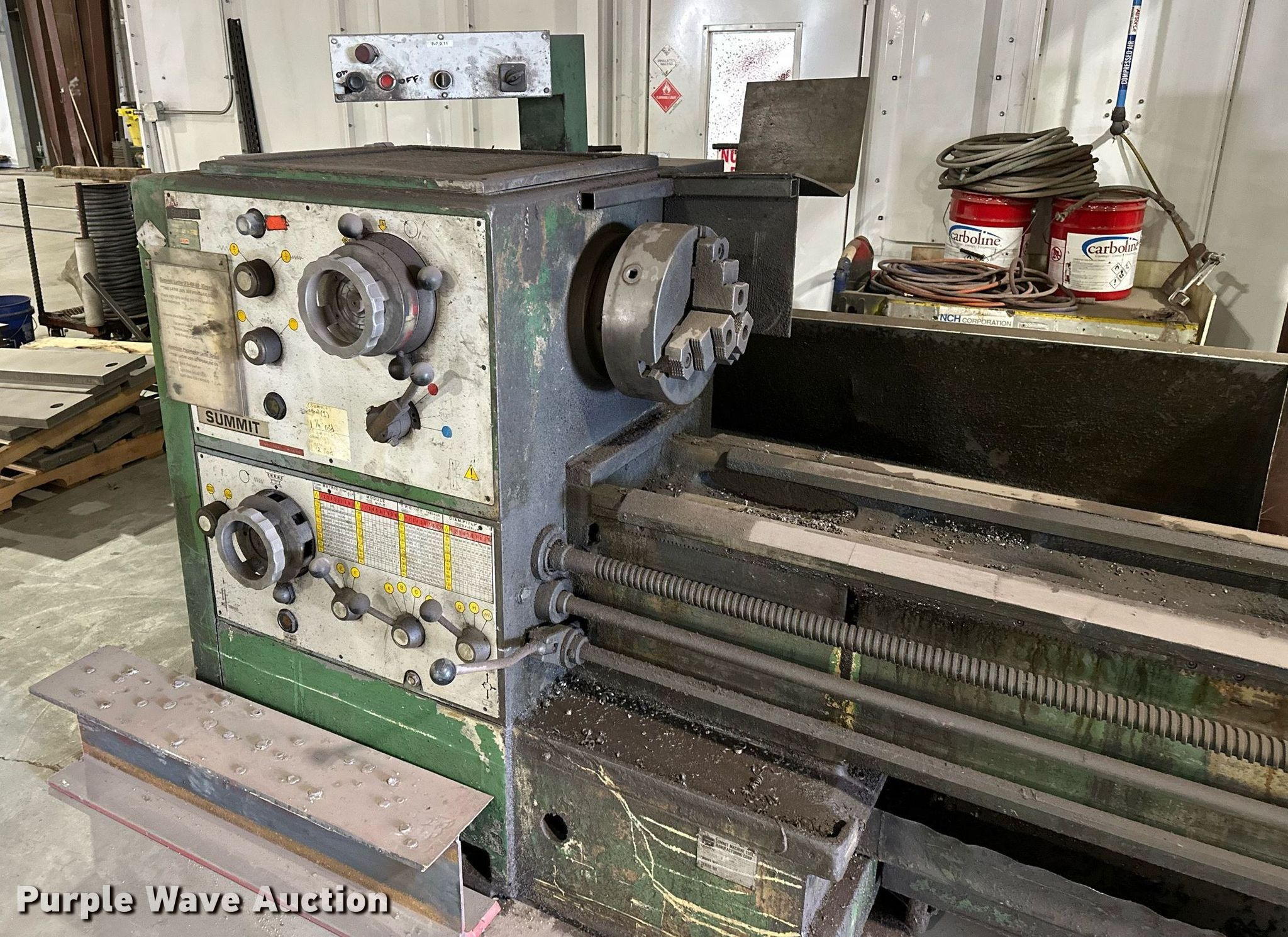 Purple Wave is selling a used Machine Shop Tools and Equip. in Oklahoma. This item is a Summit 23-4X80 lathe with the following: Dimensions: 80" L, Serial: 7903052