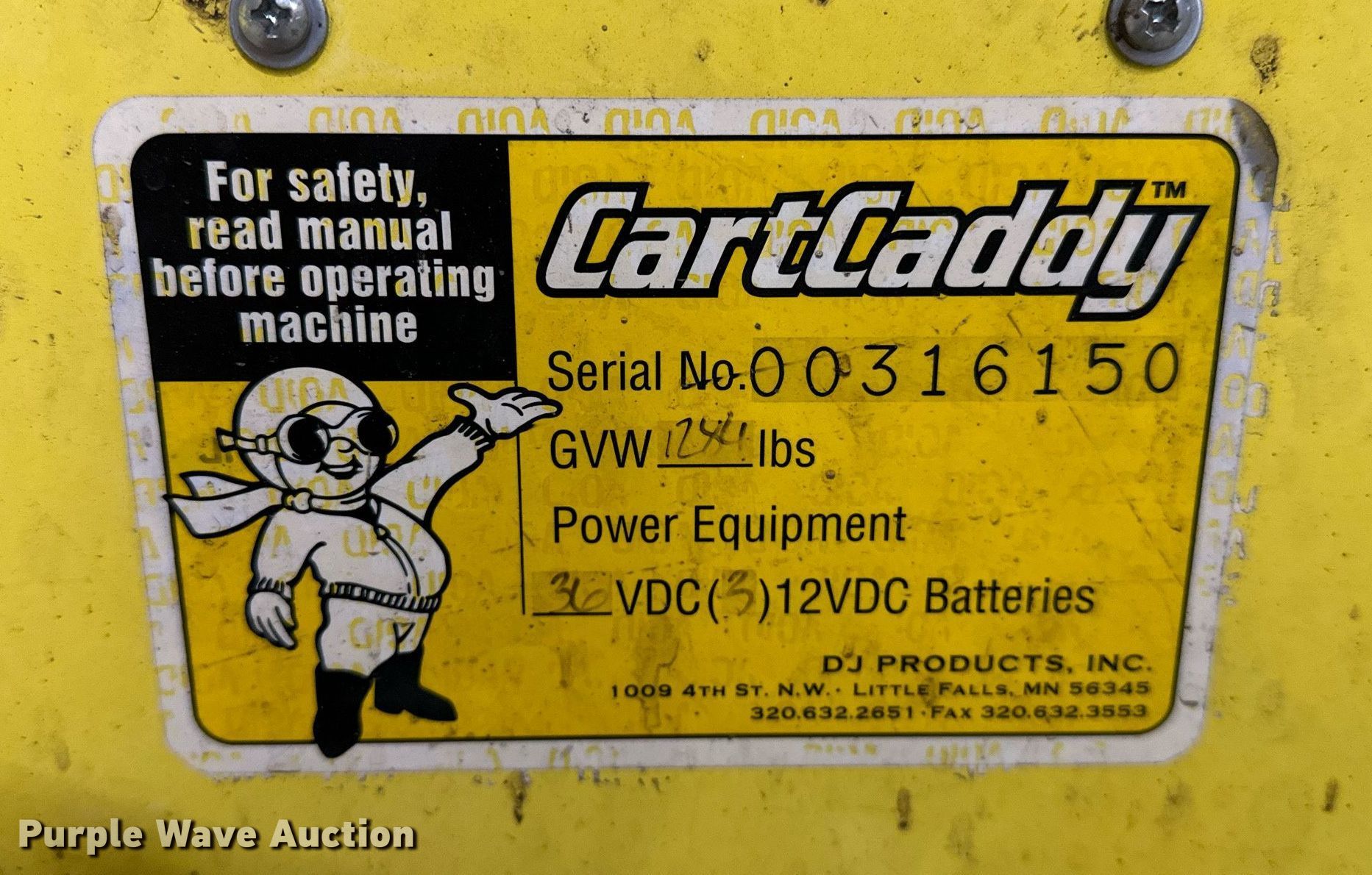 Purple Wave is selling a used Tools in Oklahoma. This item is a DJ Products Cart Caddy 5W cart mover with the following: ProSport 15 charger, GVW: 1,284 lbs, DC power, Tire size: 4.10/3.50-6, Serial: 00316150