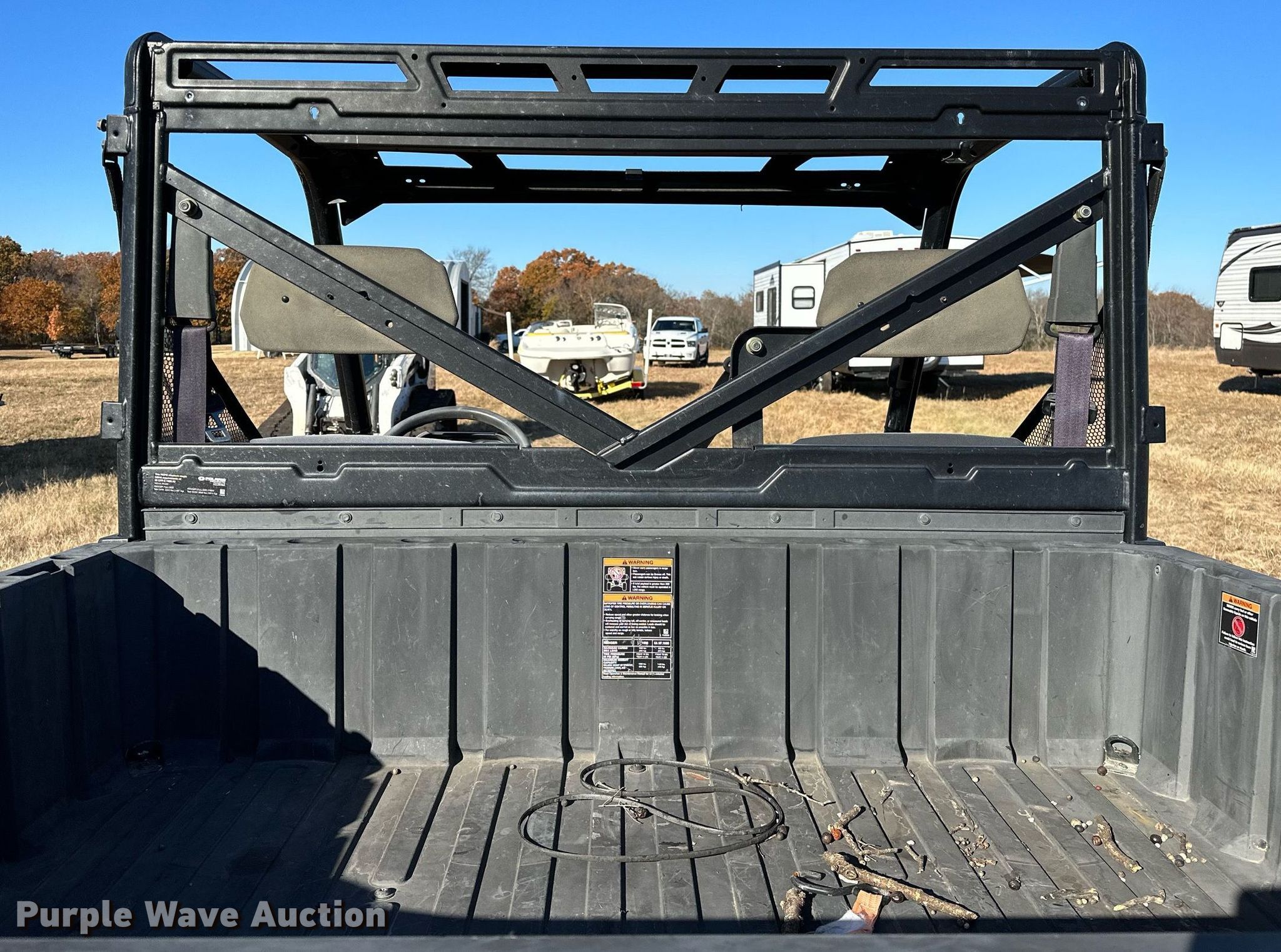 2019 Polaris Ranger 1000XP utility vehicle. Miles: 2,020 on odometer, Hours: 237 on meter, VIN: 4XARRE996J8519527, Claim # 1-805526. Engine Polaris , Cylinders: 2, Fuel type: Gas, Electric start. Transmission Automatic. Chassis Four wheel drive. Operators station OROPS. Features Grill guard, Receiver hitch, Dump bed 36" L x 54" W, Dump bed type: Manual. Tires Front: 27x9.00-12, Rear: 27x11.00-12. Notes Theft recovery, Transmission issues, shifting issues. Insurance salvage unit. Oklahoma title. Title distribution may be delayed up to 14 days from verification of funds. Oklahoma Farm Bureau Insurance. Seminole, OK 74868