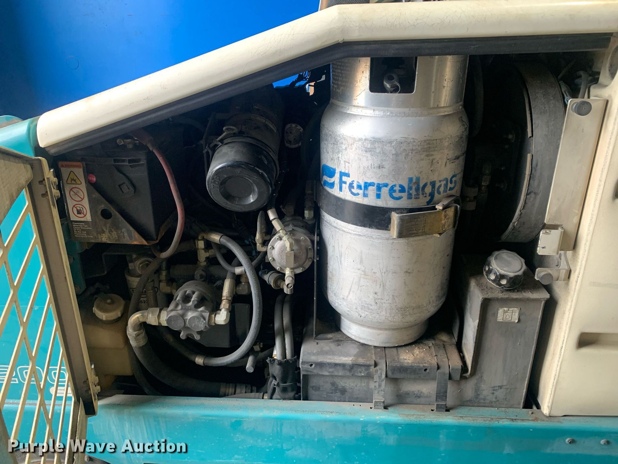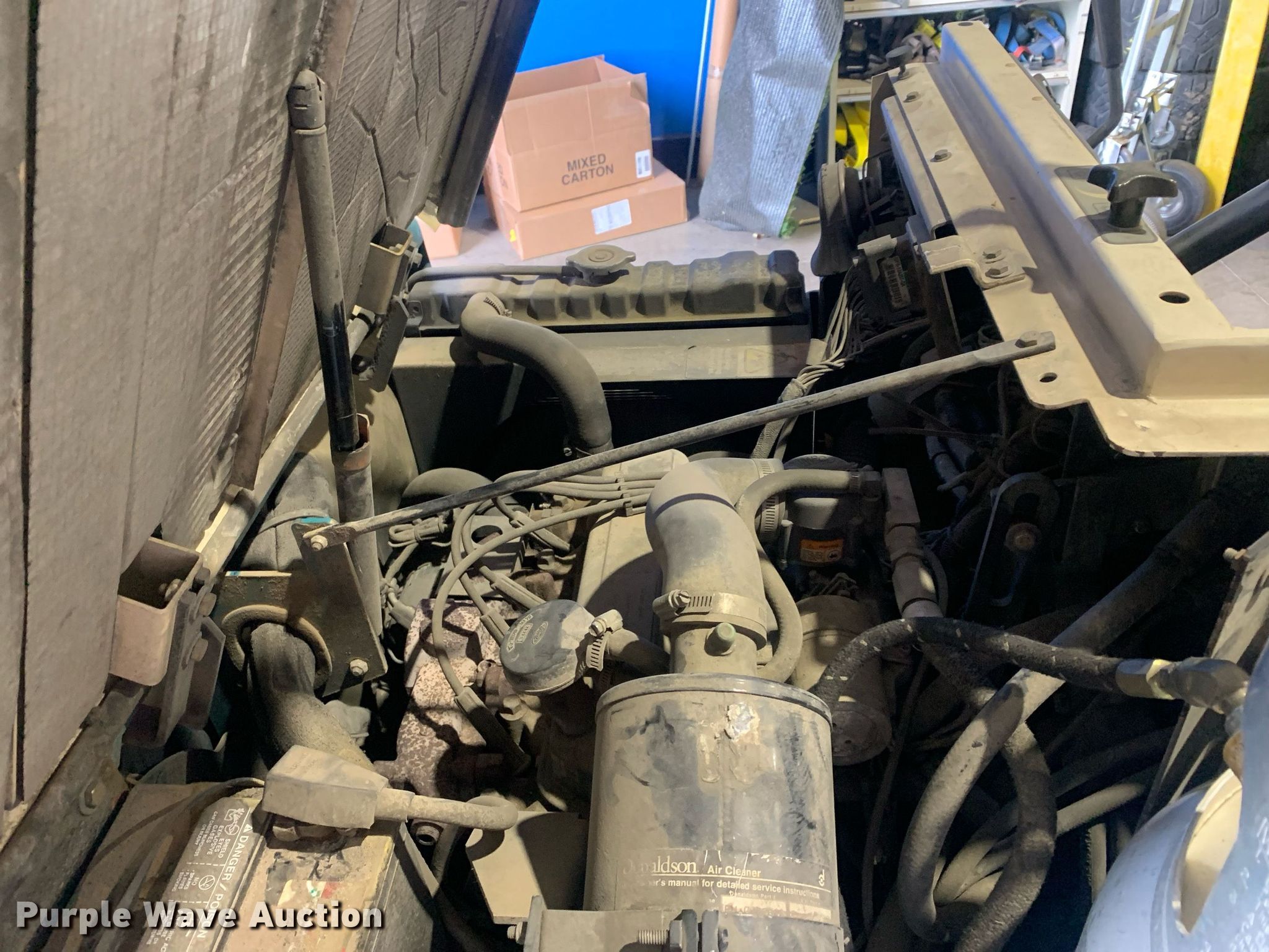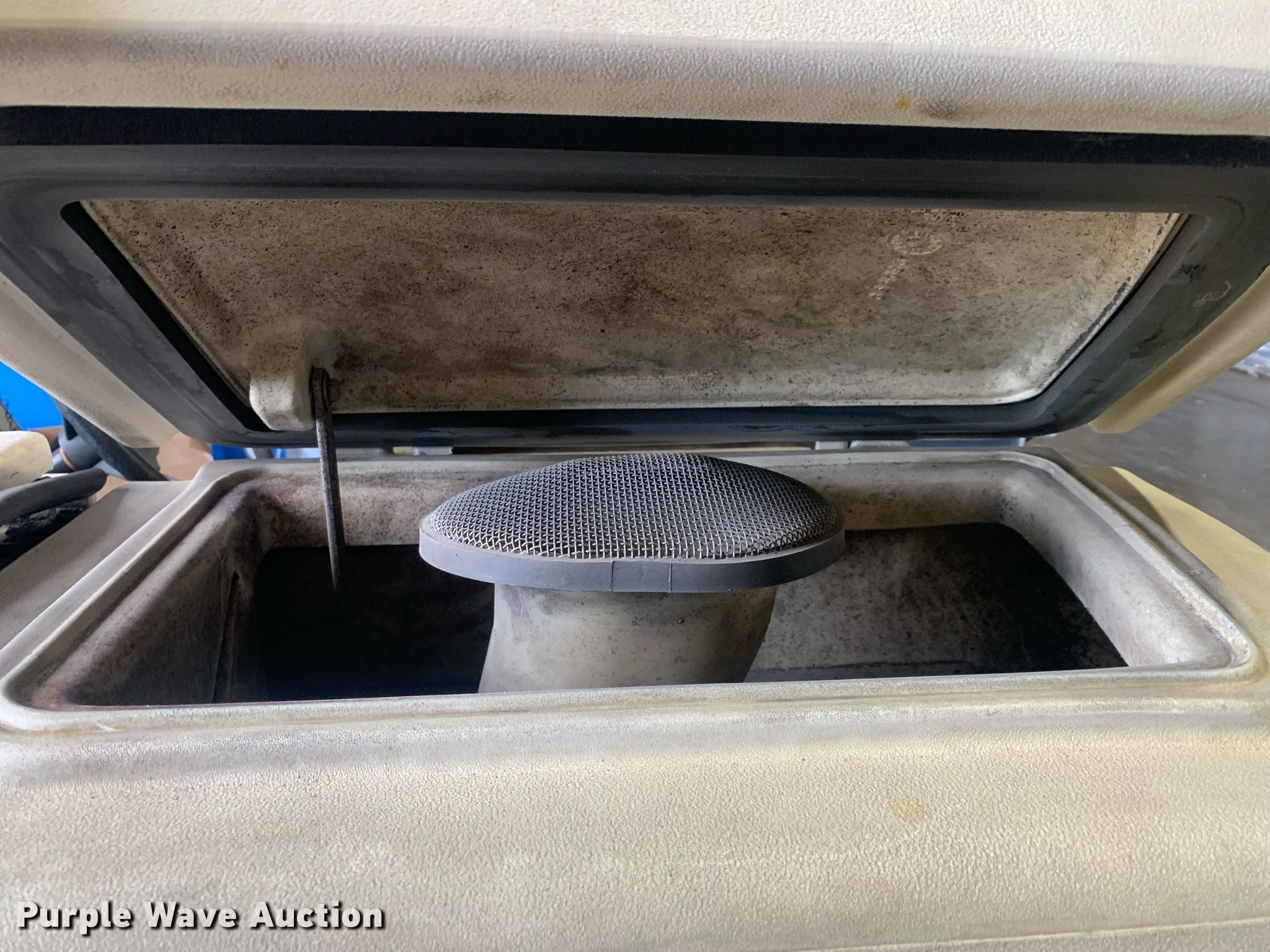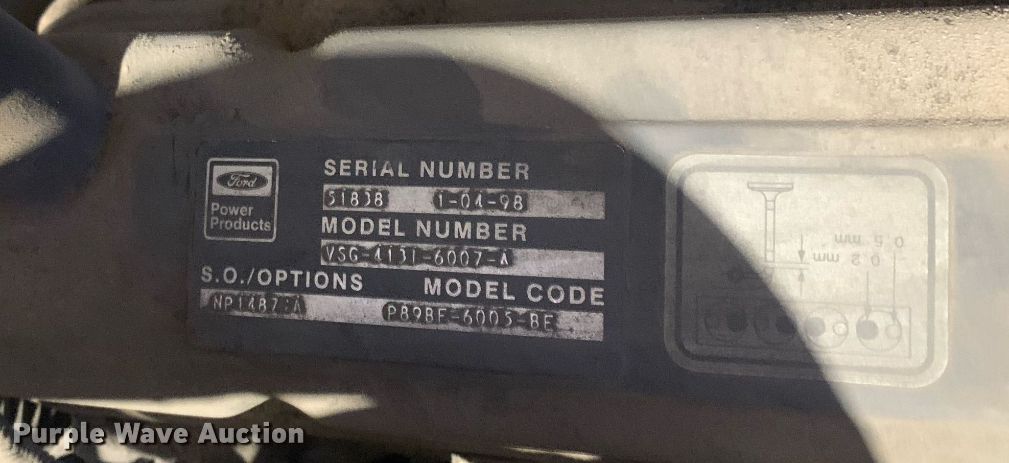 Tennent 8200ES sweeper. Hours: 64 on meter, Serial: 8200-6056. Engine Ford VSG-4131-6007-A, Serial: 51838, Cylinders: 4, Fuel type: LPG LP bottle: Not included. Transmission Hydrostatic. Chassis GVWR: 4,270 lbs. Features Width: 50", Water spray system, Sweeper bed Right gutter broom Diameter: 18", 50" cleaning width, Wet sweep bypass, Power steering. Tires Front: 16 x 3.5 x 12 1/8, Rear: 3". Notes Dead battery, Hopper issues, corrosion , Main roller brush issue, does not turn. Carroll Distributing & Construction Supply. 5550 Rittiman Road. San Antonio, TX 78218