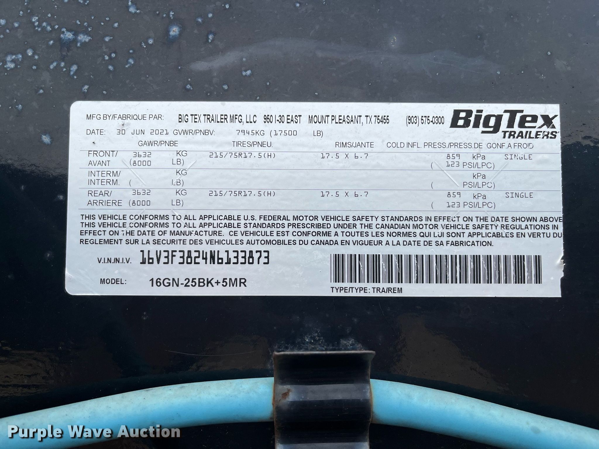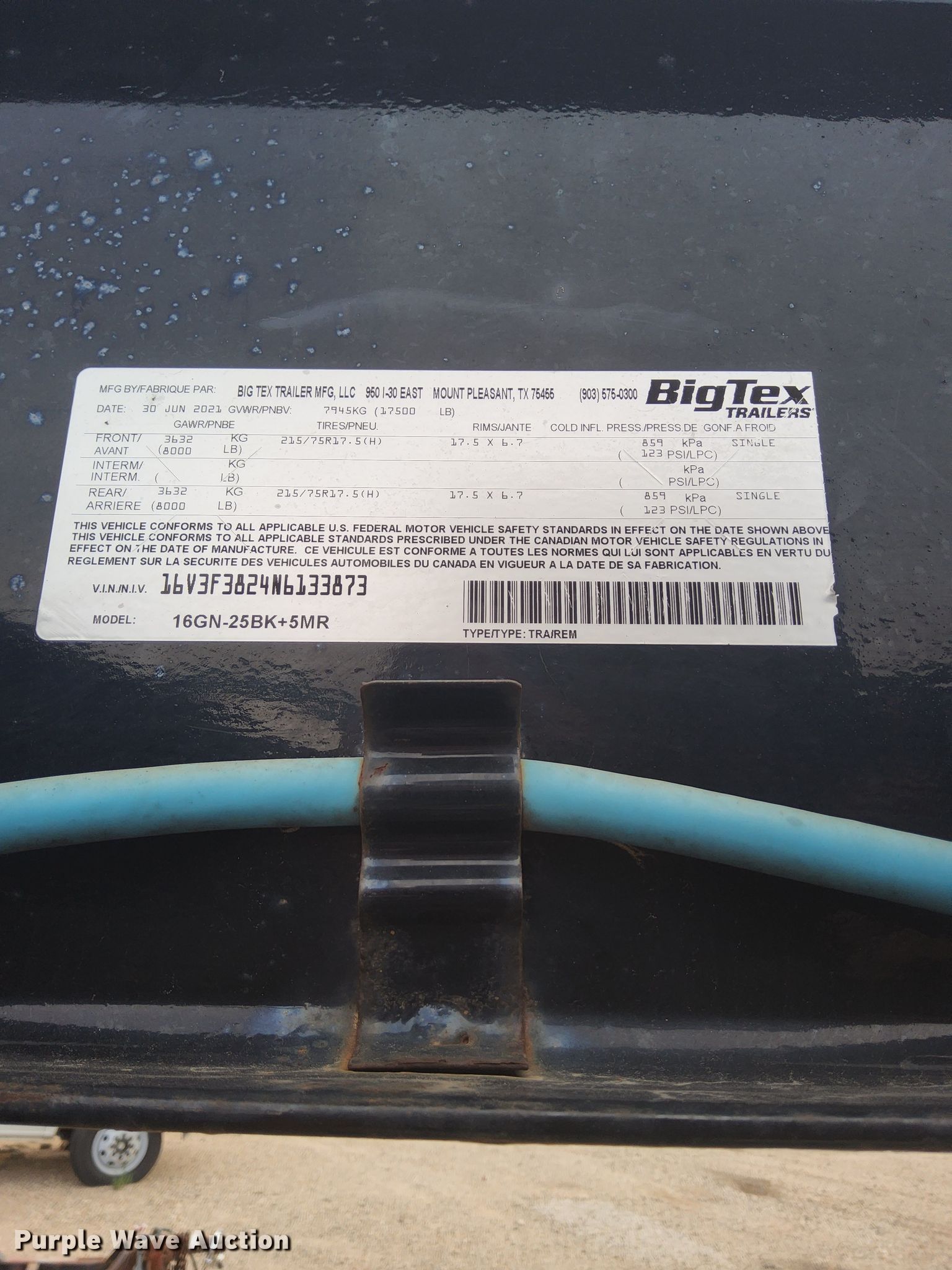 2022 Big Tex equipment trailer. VIN: 16V3F3824N6133873. Dimensions Overall: 30' L x 102" W, Deck: 25' L x 102" W, Tail length: 5', Ramps: Manual Length: 5'. Features Deck type: Steel, Wood. Chassis Hitch: Gooseneck, Landing gear: Dual, Suspension: Spring, Brakes: Electric, Axles: Tandem. Tires Steel wheels, Size: 215/75R17.5. Texas title. Seller is a Texas licensed motor vehicle dealer. The buyer may be required to pay sales tax and/or registration fees to the dealer prior to taking possession. Title will be assigned and distributed by the dealer. Please contact the seller for distribution questions. Lonestar Remarketing. County Rd 2500. Lubbock, TX 79404