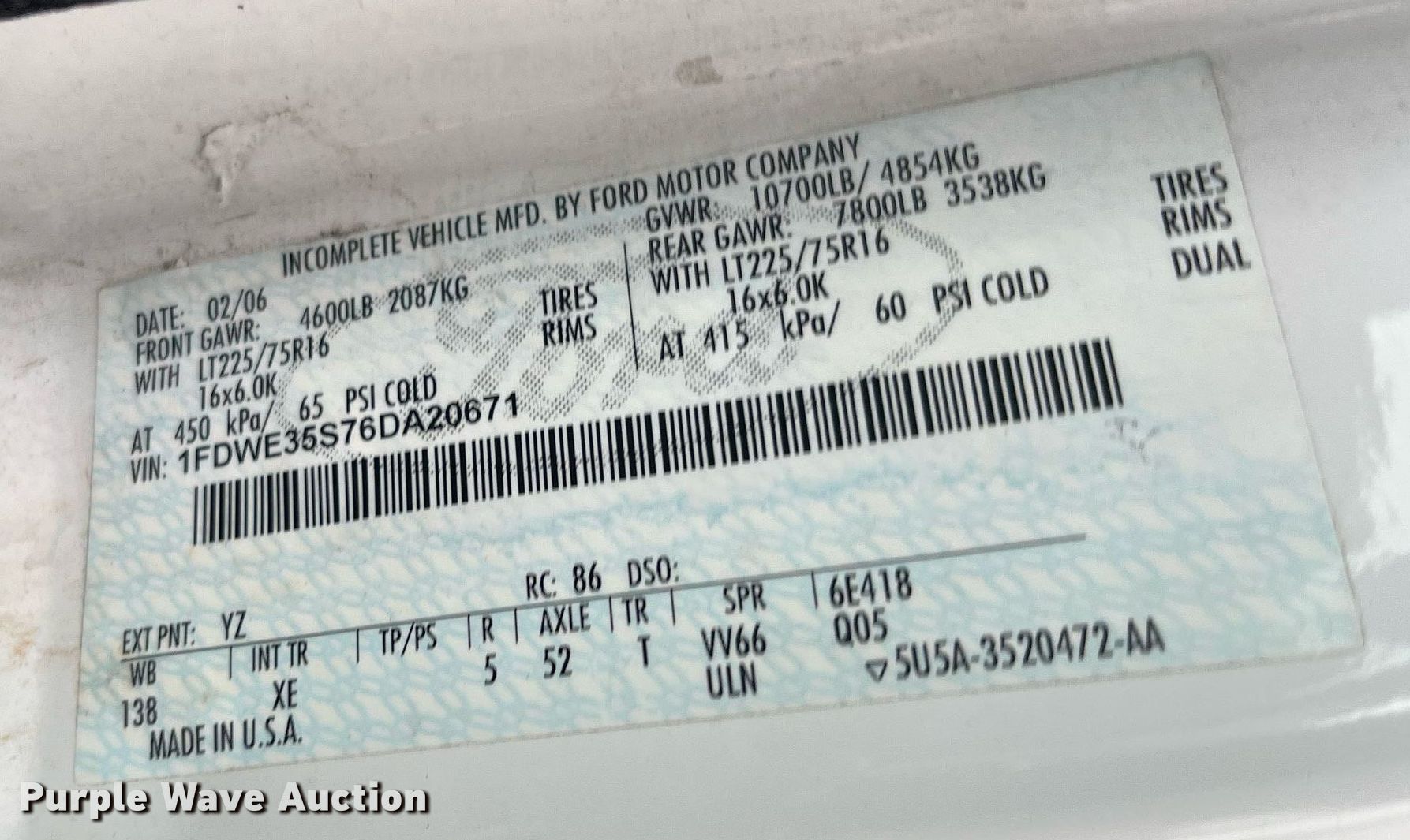 2006 Ford E350 Super Duty shuttle bus. Miles: 262,732 on odometer, VIN: 1FDWE35S76DA20671. Engine 6.8L V10 SOHC, Displacement: 6.8L, Cylinders: 10, Fuel type: Gas. Transmission Automatic. Chassis Axles: Single, Suspension: Spring, Brakes: Hydraulic, GVWR: 10,700 lbs. Interior AC, Heat, Cruise control, Electric passenger sliding door, Adult seats: 14. Tires Size: 225/75R16. Notes Dash warning indicator: Check engine, Dash warning indicator: Battery, Catalytic converter missing, cut off, Non-operational unit. Kansas title. Title distribution may be delayed up to 30 days from verification of funds. 324 Circle Drive. Wichita, KS 67218