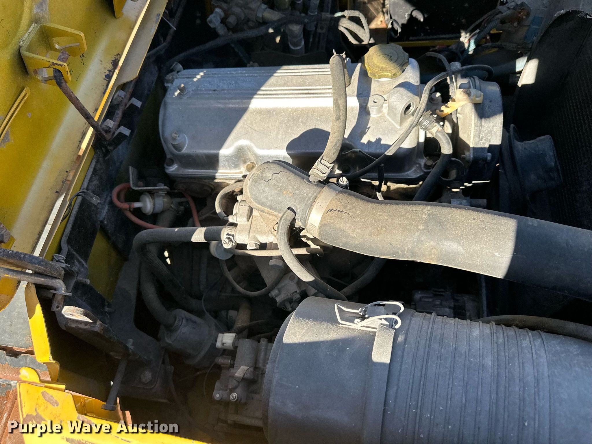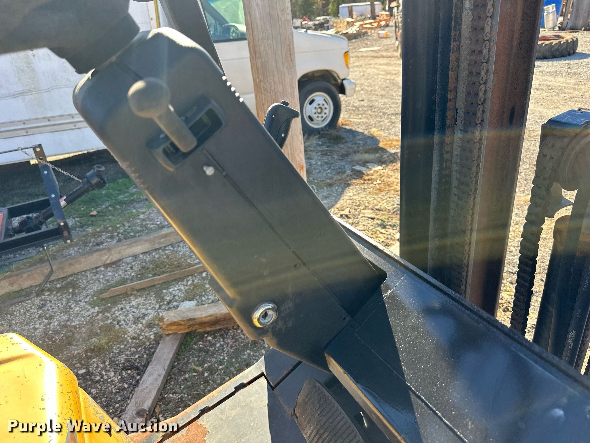Yale forklift. Serial: E187V16221Y. Engine Yale, Cylinders: 2, Fuel type: LPG LP bottle: Not included. Transmission Hydrostatic. Features Maximum lift capacity: 5,000 lbs, Maximum lift height: 171", Mast stages: 3, Side shift, Mast tilt, Fork length: 31". Tires Front: 21x7x15, Rear: 16x5x10.5, Solid. Notes Non-operational distributer, Unknown operating condition. Tonganoxie, KS 66086